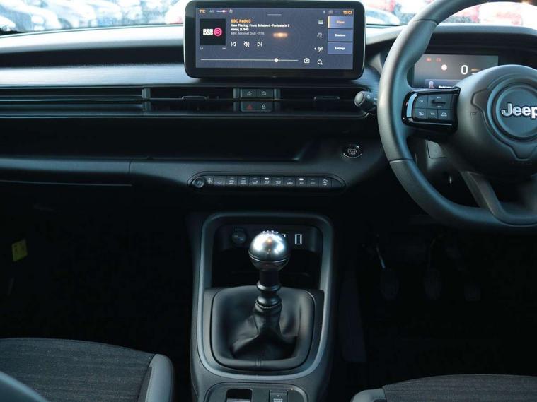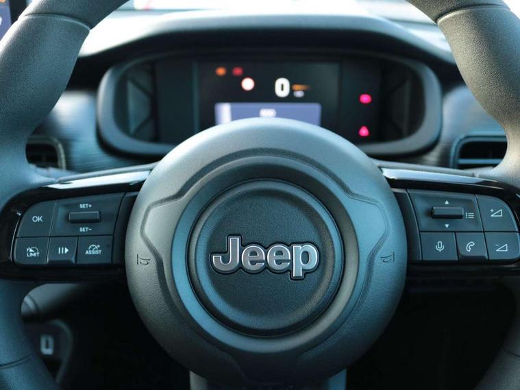 All-Terrain Mode Selector, Apple Carplay/Android Auto with wireless mirroring, BSRF connectivity box, Connectivity services, Driver attention alert system with camera, Drowsy driver detection system, eCall emergency call system, Keyless Start/Engine On Button, Lane keep assist, Odometer, PAS, Quick Guide English, Rear parking sensors, Telematic box and connected services, Traffic sign recognition, Warranty Booklet - UK, Battery default, High efficiency alternator, Audio system with 6 speakers, 3rd brake light, All power windows express Up/Down, Automatic headlights, Black mirror caps, Body colour exterior door handles, Day time running light, Grey skid plates, Halogen rear lights, Heated and electrically folding outside mirrors, LED reflector headlamps, Manual control rear view mirror, Rain sensor, Rear side wing doors, Rear wiper, Wiring preperation for towing group by Mopar, 3 rear headrests, 3 seat bench in 2nd row, 4 way manually adjustable passenger seat, 6 way manually adjustable drivers seat, Central console dividers x2, Cloth upholstery, Driver and front passenger sunvisor with vanity mirror, Foldable second row seats 40/60 - Fix and Fold, Front central armrest with storage, Front head restraints, Front passenger grab handle, Front passenger isofix child seat attachment, Front seat backrest pocket, Full black upper interior and headlining, I am Jeep label, Manual air conditioning, Partial body cover for shipment, Single front passenger seat, Anti-lock braking system (ABS), Child locks on rear doors, Electric parking brake, ESC - Electronic Stability Control + traction control, Hill descent control, Kit fix and go predisposition/housing only, Rear seat ISOFIX, Three 3 point rear seatbelts, Vulnerable road user recognition - Pedestrian/Cyclist incl. AEB, Volumetric anti theft alarm, 16" alloy wheels painted in medium glossy grey with summer chainable, Fix and go tyre repair kit,