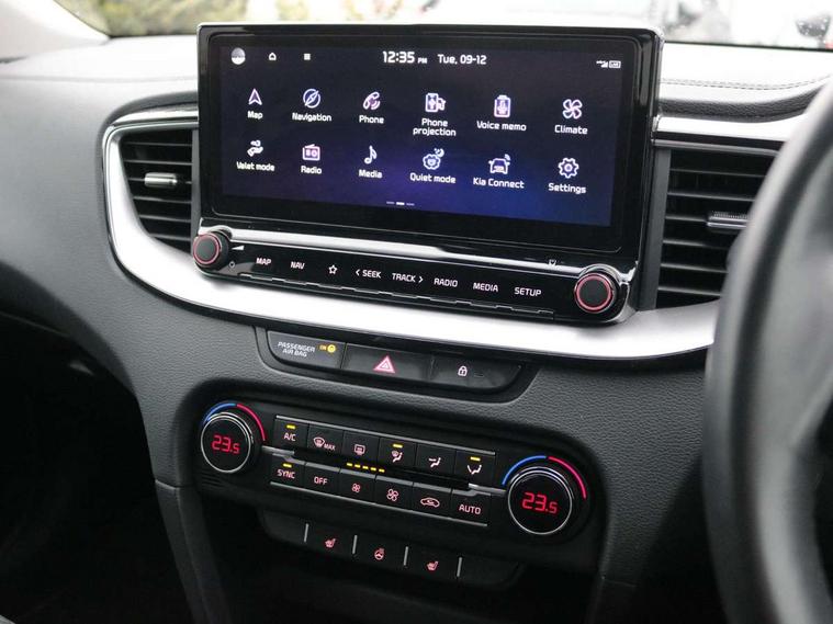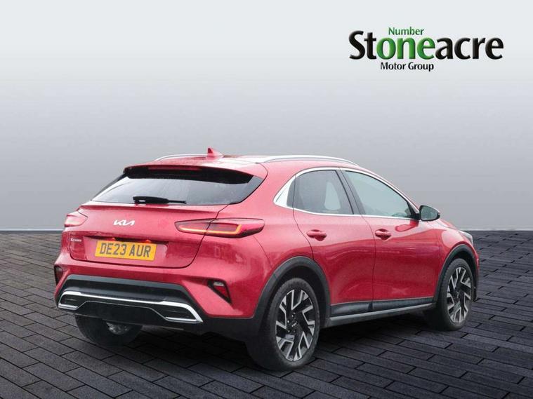 10.25" touchscreen satellite navigation with telematics, 4.2" supervision colour cluster display, Android auto with voice control, Apple car play with voice control, Bluetooth with Voice Recognition & Music Streaming, Cruise control + speed limiter, Driver attention warning, Emergency call service, Forward Collision-Avoidance Assist (FCA) - City/Pedestrian/Cyclist, Lane Following Assist (LFA), Lane keep assist, Motor driven power steering, Rear parking sensor, Reversing camera with dynamic guide lines, Tailgate, Trip computer, Intelligent Stop and Go, 1x Rear USB-C, 2x Front USB (1x USB-C, 1x USB-A), 7 speakers, DAB Radio with MP3, Rear console USB C-type charge port, Steering wheel mounted controls, All-round Electric Windows with Auto Up & Down Function, Auto dimming rear view mirror, Automatic defog system, Automatic headlights, Black side sill mouldings with chrome inserts, Black wheel arch trim, Body colour bumpers, Body colour exterior door handles, Body colour rear spoiler, Body coloured door mirrors with matt black lower housing, Body coloured shark fin antenna, Electrically folding, adjustable and heated door mirrors with integrated LED indicator lights, Heated rear window with timer, High beam assist, High glossy black and satin chrome rear skid plate, LED Bi-Function projection headlights, LED daytime running lights, LED front fog lights, LED High-mounted Brake Light, LED rear fog light, LED rear lights, Matt black and satin chrome radiator grille, Privacy glass - Rear windows and tailgate, Rain sensing front wipers, Rear side wing doors, Rear wiper, Satin chrome window surround, Silver roof rails, Smaller XCeed badge on rear left hand tailgate, Tinted glass, Variable front intermittent wipers, Wide view drivers door mirror, Windscreen Washer Level Warning, 3 seat bench in 2nd row, 60/40 split folding rear seat, All-round height adjustable headrests, Centre Console with Storage Box and Sliding Armrest, Chrome interior door handles, Cloth/faux leather upholstery, Cupholders in centre console, Driver + front passenger electric lumbar support, Driver and passenger front seat pockets, Driver's seat height adjuster, Dual zone automatic air conditioning, Faux leather door trim, Front and luggage area 12V power sockets, Front and rear door storage, Front cabin map light with sunglasses case, Front Passenger Seat Height Adjuster, Heated front seats, Heated steering wheel, Illuminated driver and front passenger sunvisors with vanity mirror, ISOFIX Child seat top tethers and anchor fixings, Leather steering wheel, Luggage area light, Luggage area parcel shelf, Luggage hooks, Rear cabin light, Rear centre armrest with cupholders, Single front passenger seat, Tilt/telescopic adjustable steering wheel, ABS with Electronic Brakeforce Distribution (EBD) and Brake Assist System (BAS), All round 3-point seatbelts, Dual horn, Electronic parking brake, Electronic stability control (ESC) and vehicle stability management (VSM), Front passenger airbag cut off switch, Height adjustable front seatbelts, Hill start assist control (HAC), Impact sensing auto door unlocking, Rear door child safety locks, Seatbelt reminder warning, Traction control, Twin curtain airbags, Twin front airbags, Twin front side airbags, Tyre pressure monitoring system, Alarm system, Engine Immobiliser & Deadlocks, Locking wheel nuts, Smart key with engine start/stop button, 18" Alloy wheels, Tyre mobility kit,