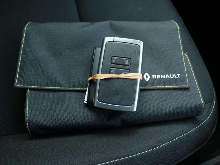 4.2" TFT Driver information display, Cruise control + speed limiter, eCall emergency call system, Eco mode, Gear change indicator, Lane departure warning system, Lane keep assist, Renault automatic emergency assist, Traffic sign recognition, Trip computer, Variable assistance power steering, EasyLink Nav 7" touchscreen, 4x20W amp, FM DAB, sound auditorium, 2xUSB, 1xJack, Bluetooth, smartphone integration plus, Apple carplay/Android auto, Automatic front wipers with rain sensors, Automatic headlights, Body colour door handles, Body coloured bumpers, Body coloured door mirrors, Electric adjustable/heated/folding door mirrors, Electric front windows + one touch + anti-pinch, Electric rear windows, Extra tinted glass in rear windows and tailgate, Full LED front and rear headlamps integrating daytime running lights at the front and rear, Gloss black side door protection with chrome effect, LED front fog lights, Rear fog lights, Rear wiper, Roof bars, Variable speed on front windscreen wipers, 12V Accessory socket, 3 rear headrests, 5.2L front glovebox, 60/40 split folding rear seat bench, Automatic climate control with one touch demist function, Centre console storage tray, Cloth upholstery, Front head restraints, Heating system with pollen filter, Height adjustable driver's seat, Height/reach adjust steering wheel, ISOFIX child seat fixing points on rear outermost seats, Middle console with armrest and storage, Rear air vents, Synthetic leather steering wheel, 3 rear seatbelts, ABS+EBA, AEBS, Distance warning alert, Driver and front passenger, side, head and curtain airbags, Driver height adjustable seat belt, Electric parking brake, Electronic stability control, Front and rear no seatbelt warning sound, Front dash warning indicator in case of heavy braking, Front driver and passenger side airbag deactivation, Hill start assist, Rear door and window child locking function for rear door, Tyre pressure warning light, Anti drill door locks and locking fuel cap, Deadlocking system, Hands free keycard with push button and start/stop function, RAID (Renault Anti-Intruder Device) automatic door locking, Remote central locking with thatcham approved immobiliser, Black soft touch dashboard with black gloss air vent surrounds,