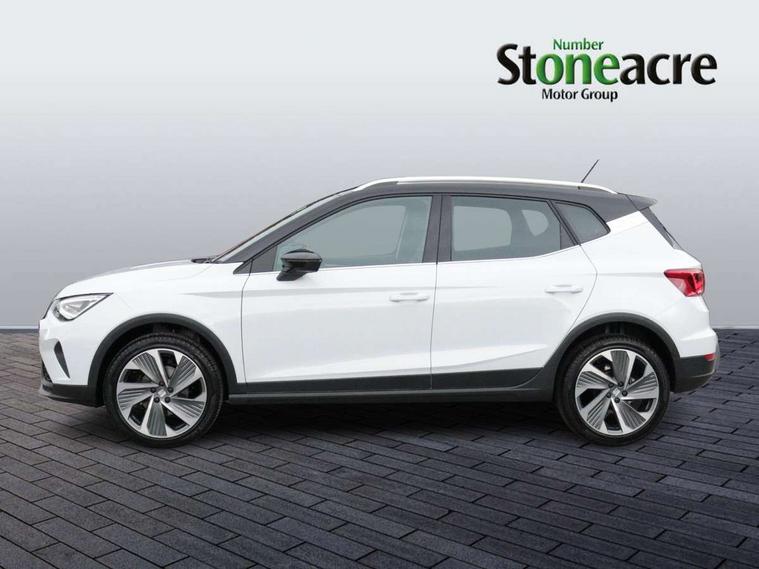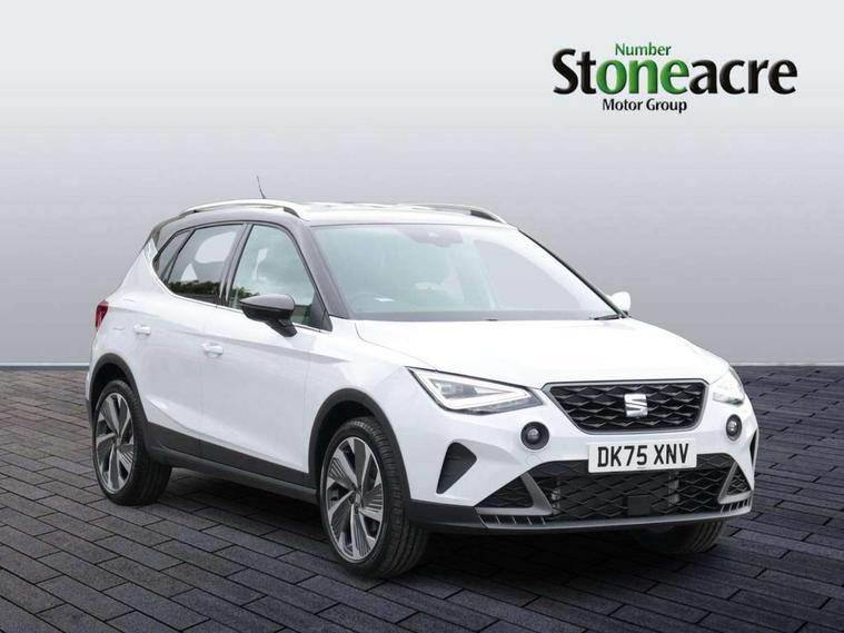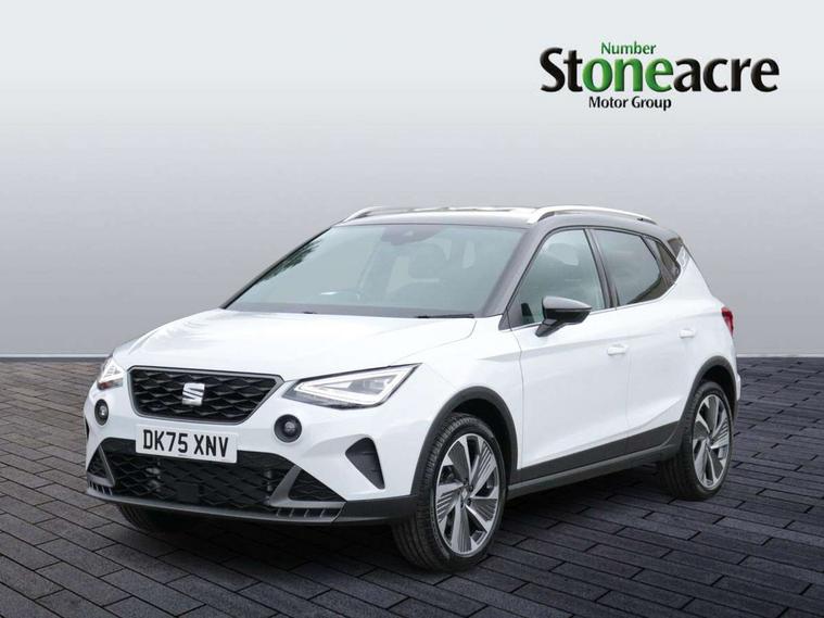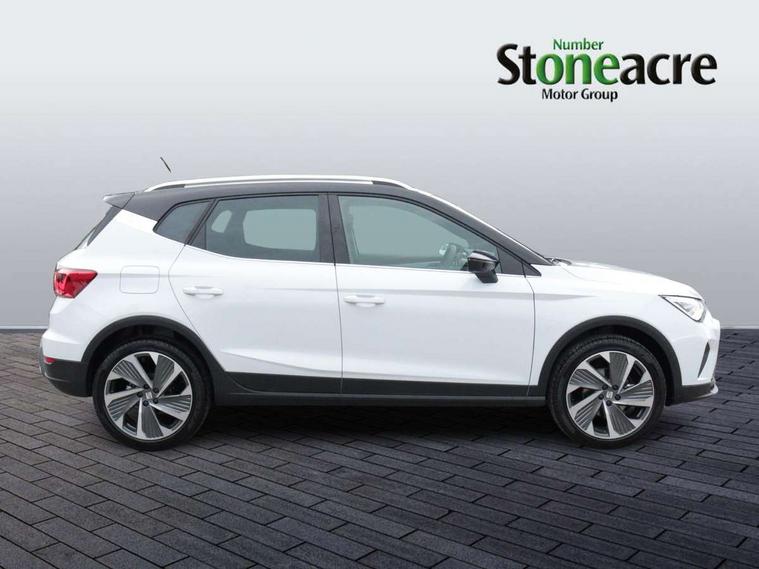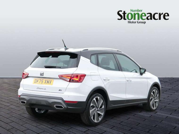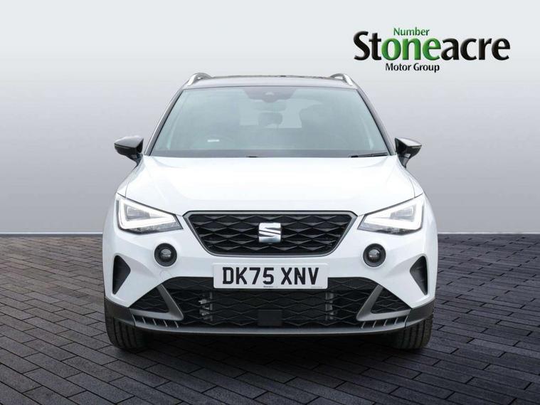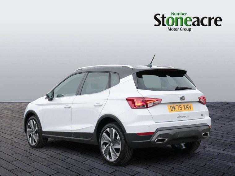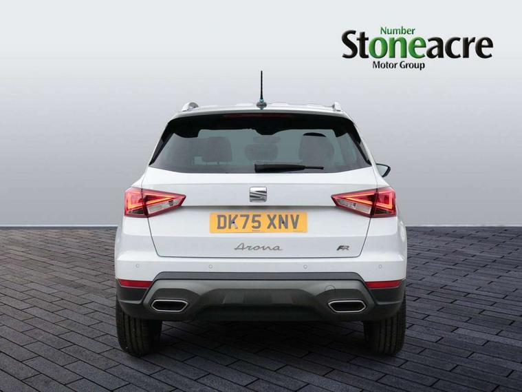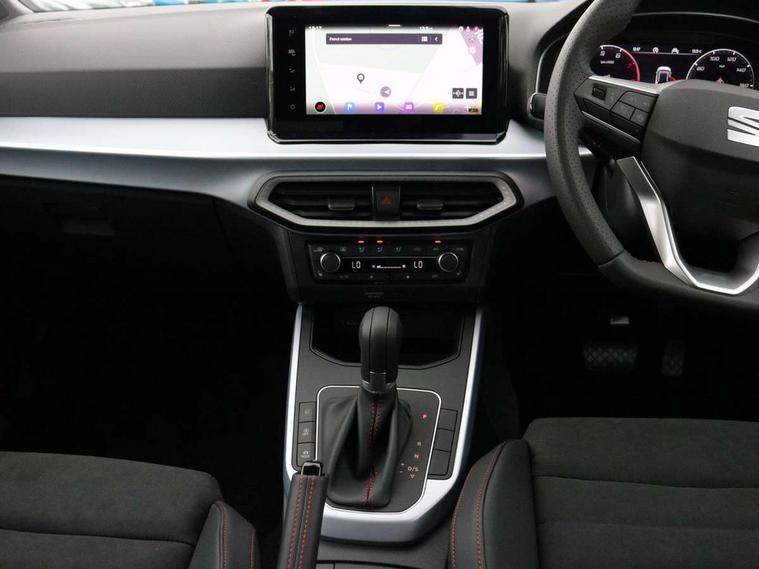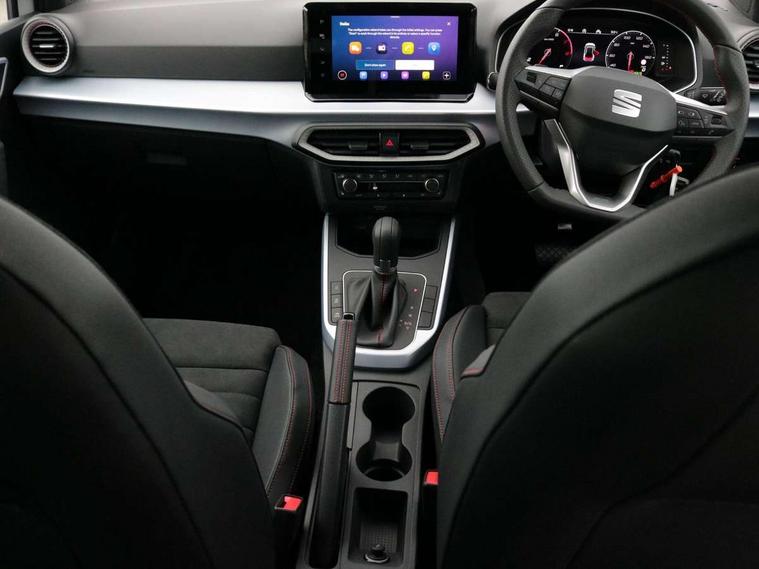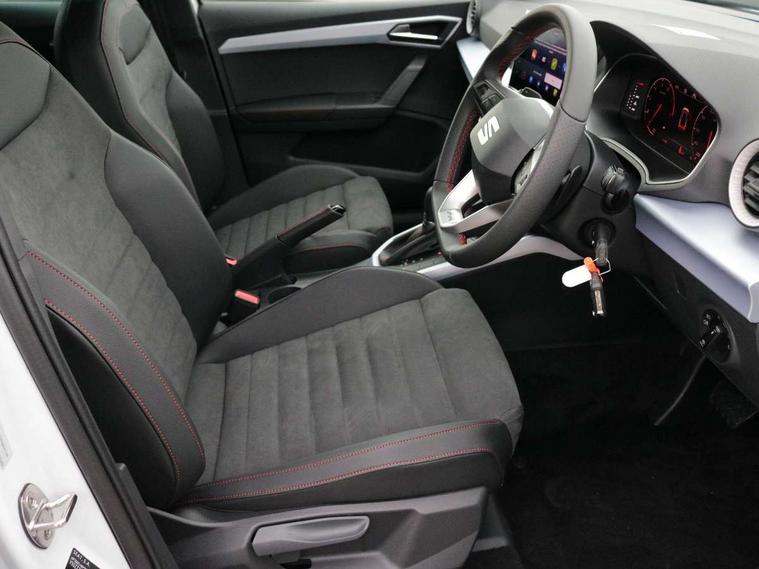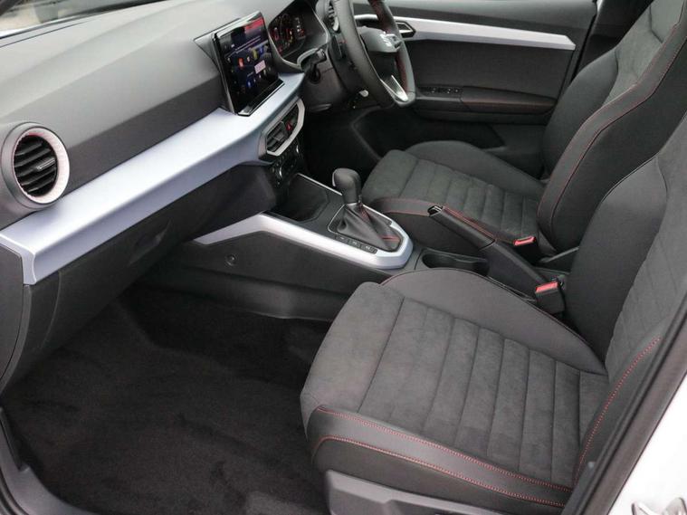 'Lights On' Reminder warning buzzer, 10" Digital cockpit, Digital clock, E-call, Electric speed sensitive power steering, Full link smartphone integration with mirror link, wireless apple carplay, Google android auto + USB Type C cable for apple and android devices, Lane keeping system, Low fuel warning light, Outside temperature display, RPM counter, SEAT Drive profile - Four different models normal-sport-eco-individual, steering response, throttle response and gear shifts mode, Trip computer, Wireless phone charger, 9.2" colour touchscreen with navigation system, voice control and USB port (type c), Bluetooth interface for hands free and audio streaming, DAB digital radio and AM/FM radio, Steering wheel mounted audio controls, Anti theft roof antenna, Auto dimming interior rear view mirror, Automatic activation of hazard warning lights, Body coloured bumpers, Body coloured door handle inserts, Chrome roof rails and window surrounds, Dark tinted rear windows, Electric front/rear windows, Electrically adjustable, heated and folding door mirrors, Front fog lights with cornering function and rear fog light, FULL LED automatic headlights with dynamic headlight range control, coming and leaving home, LED daytime running lights, LED rear tail lights and licence plate lights, Protective side mouldings, Rain sensing wipers, Rear side wing doors, Rear spoiler, Rear window wash/wipe, Roof colour door mirrors, Third brake light, Twin exhaust pipe styling hidden exhaust pipe, Visible VIN plate, 2 cupholders, 3 seat bench in 2nd row, 60/40 split folding rear seat, Aircare filter, Black interior roof, Double boot floor, Driver sunvisor with covered mirror + card holder, Dual zone climate control, Front comfort seats, Front courtesy light with front reading lights, Front seat back storage pockets, Gear shift indicator, Heated front seats, Height adjustable front seats, Height/reach adjustable steering column, Illuminated air vent surrounds, Illuminated boot, Instrument lighting with brightness control, Interior ambient lighting, Interior light in footwell, central console and door panel, ISOFIX points in outer rear seats with top tether anchorage points, Microsuede cloth upholstery, Passenger sunvisor with vanity mirror, Perforated flat bottomed leather steering wheel/gear knob/handbrake with red stitching and FR logo, Potentiometer, Single front passenger seat, Steering wheel mounted gearshift paddles, Two front and three rear height adjustable headrests, Interior chrome pack - Arona, Safe and driving pack (S) - Arona, 3 point seatbelts on all rear seats, ABS, Active front headrests, Child locks on rear doors, Driver and front passenger airbags with front passenger airbag de activation, front side and curtain airbags, Emergency Brake Assist (EBA) and front assist, Front and rear seatbelt reminder, Hill hold control, Multi-Collision braking, Tiredness recognition system, Traction control, Tyre pressure monitoring system, Alarm with back up horn with tow away protection, Deadlock, Electronic engine immobiliser, Locking wheel bolts, Remote central locking, Titan black dashboard, 18" Performance Cosmo grey matt alloy wheels,
