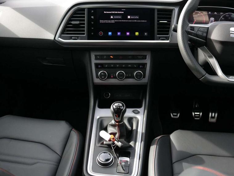 10" Digital cockpit, Bluetooth audio streaming with handsfree system, E-call, Electric tailgate with virtual pedal, Outside temperature gauge, Progressive power assisted steering, SEAT drive profile with driving experience button - Normal, Sport, Eco and Individual mode, steering and throttle response, Self parking functionality (includes front and rear parking sensors), Speed limiter, Start/stop system, Top view camera with rear view camera, Trip computer, wired and wireless full link smartphone integration, Wireless phone charger, Steering wheel mounted audio/phone controls, Black roof rails, Black side window trim, Body colour bumpers, Body coloured wheel arch surrounds, Chrome front grille frame, Dark tinted rear windows, Daytime running lights, Door mirrors with welcome light silhouette, Dynamic headlight range control with self adjusting whilst driving, Electric adjustable/heated/folding door mirrors, Front and rear electric windows, Illuminated aluminium front door sill, LED 3rd brake light, LED headlamps with lens and LED front fog lamps with cornering function, LED rear tail lights with dynamic indicators, Rear exhaust tailpipe, Rear fog lights, Rear side wing doors, Rear spoiler, Rear wash/wipe, Variable front intermittent wipers, 12V socket in front, 3 seat bench in 2nd row, 60/40 split folding rear seat, Aluminium pedals, Black greenhouse interior roof, Dual zone climate control, Electric adjustable driver seat with memory function, Front and rear head restraints, Front centre armrest, Front seat back storage pockets, Heated front seats, Height adjustable passenger seats with lumbar adjustment, ISOFIX points in outer rear seats with top tether anchorage points, Leather sports steering wheel and gear knob, Leather upholstery with front comfort seats, Rear armrest and easy back seat release mechanism from boot, Single front passenger seat, Convenience pack - Ateca, Interior lighting pack - Ateca, Navigation system pack with DAB - Ateca, Safety and driving pack (L) - Ateca, Safety and driving pack with attention and drowsiness assist - Ateca, 3x3 point rear seatbelts, ABS, Traction control system (TCS), Electronic stability control (ESC) and Electronic differential lock system (XDS), Airbags - Driver and front passenger airbag with deactivation, front side, two curtain and driver's knee airbags, Electric parking brake with auto hold function, Front and rear seatbelt reminder, Hill hold control, Manual rear child locks, Single tone horn, Tyre pressure monitoring system, Alarm, Keyless entry, Locking wheel bolts, Remote central locking, Chrome interior detailing, 19" Exclusive alloy whelels 36/10 in glossy black, Tool kit,