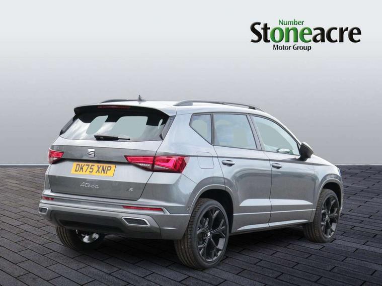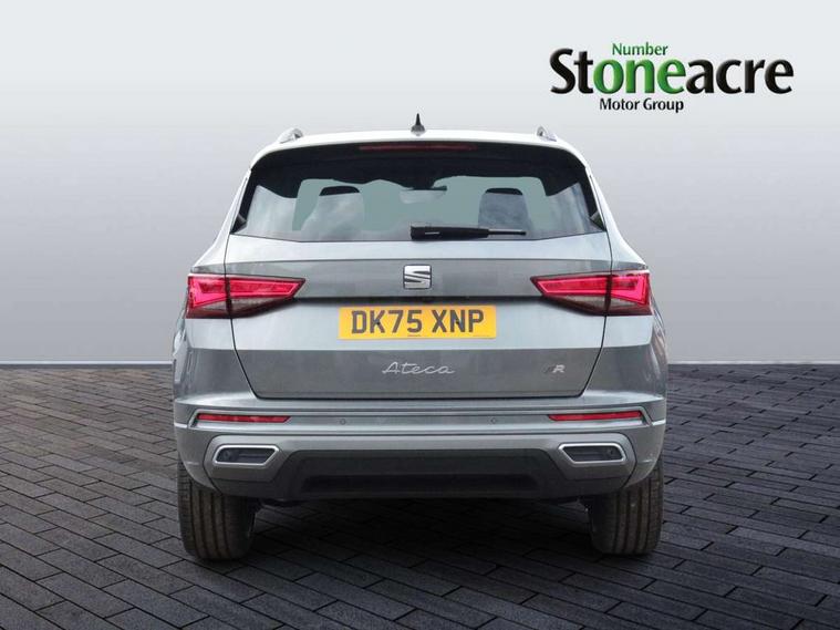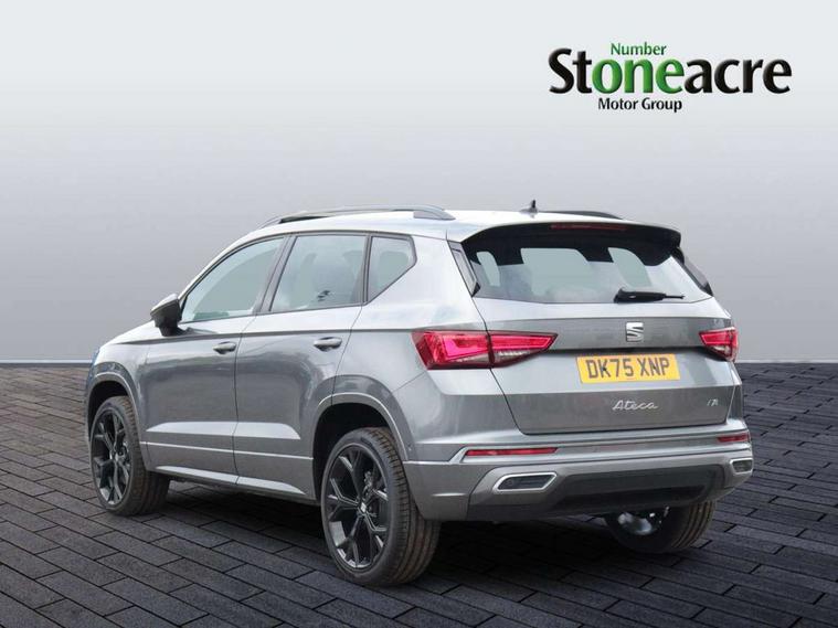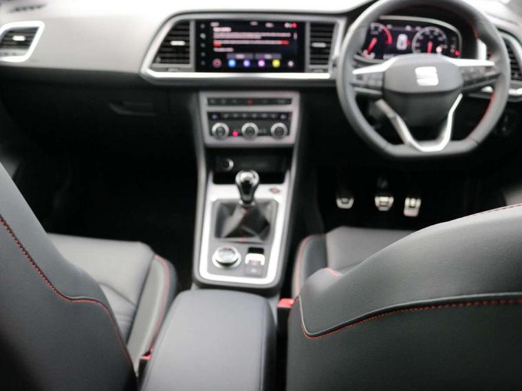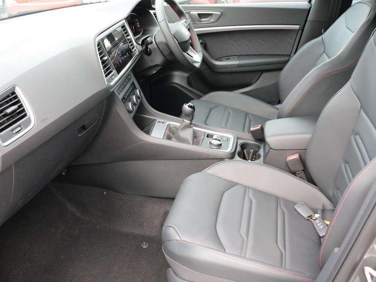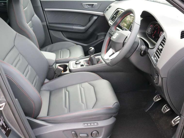 10" Digital cockpit, Bluetooth audio streaming with handsfree system, E-call, Electric tailgate with virtual pedal, Outside temperature gauge, Progressive power assisted steering, SEAT drive profile with driving experience button - Normal, Sport, Eco and Individual mode, steering and throttle response, Self parking functionality (includes front and rear parking sensors), Speed limiter, Start/stop system, Top view camera with rear view camera, Trip computer, wired and wireless full link smartphone integration, Wireless phone charger, Steering wheel mounted audio/phone controls, Black roof rails, Black side window trim, Body colour bumpers, Body coloured wheel arch surrounds, Chrome front grille frame, Dark tinted rear windows, Daytime running lights, Door mirrors with welcome light silhouette, Dynamic headlight range control with self adjusting whilst driving, Electric adjustable/heated/folding door mirrors, Front and rear electric windows, Illuminated aluminium front door sill, LED 3rd brake light, LED headlamps with lens and LED front fog lamps with cornering function, LED rear tail lights with dynamic indicators, Rear exhaust tailpipe, Rear fog lights, Rear side wing doors, Rear spoiler, Rear wash/wipe, Variable front intermittent wipers, 12V socket in front, 3 seat bench in 2nd row, 60/40 split folding rear seat, Aluminium pedals, Black greenhouse interior roof, Dual zone climate control, Electric adjustable driver seat with memory function, Front and rear head restraints, Front centre armrest, Front seat back storage pockets, Heated front seats, Height adjustable passenger seats with lumbar adjustment, ISOFIX points in outer rear seats with top tether anchorage points, Leather sports steering wheel and gear knob, Leather upholstery with front comfort seats, Rear armrest and easy back seat release mechanism from boot, Single front passenger seat, Convenience pack - Ateca, Interior lighting pack - Ateca, Navigation system pack with DAB - Ateca, Safety and driving pack (L) - Ateca, Safety and driving pack with attention and drowsiness assist - Ateca, 3x3 point rear seatbelts, ABS, Traction control system (TCS), Electronic stability control (ESC) and Electronic differential lock system (XDS), Airbags - Driver and front passenger airbag with deactivation, front side, two curtain and driver's knee airbags, Electric parking brake with auto hold function, Front and rear seatbelt reminder, Hill hold control, Manual rear child locks, Single tone horn, Tyre pressure monitoring system, Alarm, Keyless entry, Locking wheel bolts, Remote central locking, Chrome interior detailing, 19" Exclusive alloy whelels 36/10 in glossy black, Tool kit,