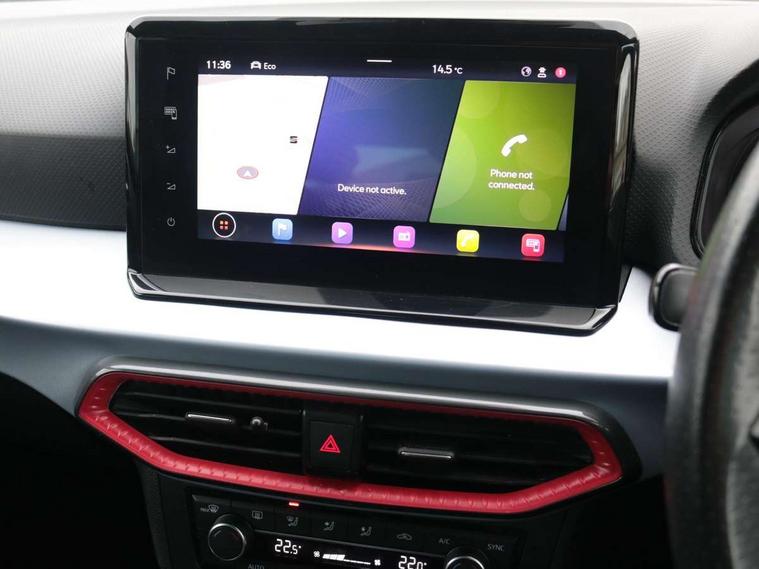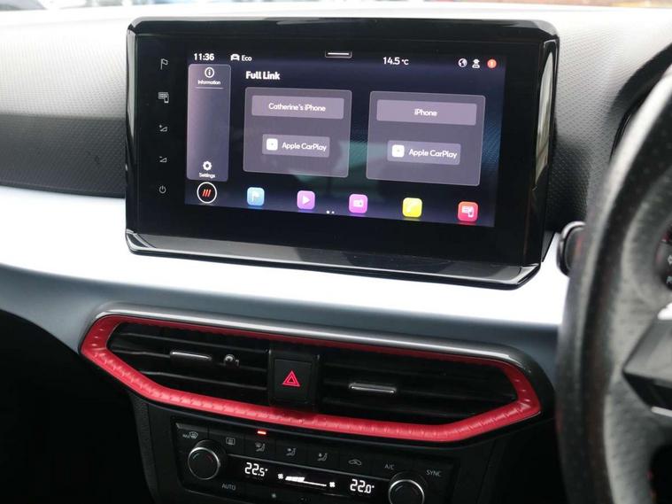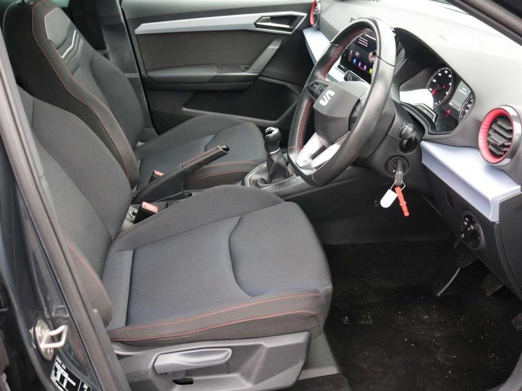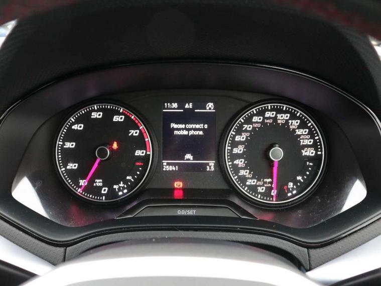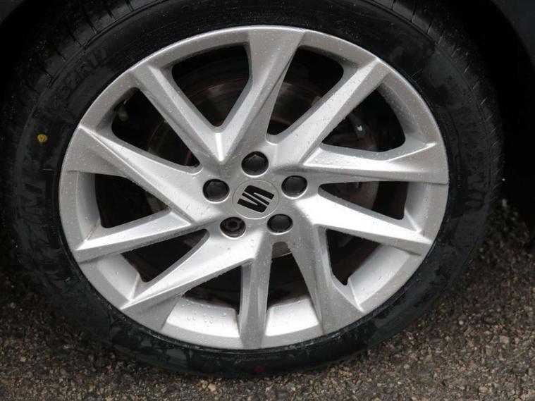 'Lights On' Reminder warning buzzer, 9.2" touchscreen navigation system with type C USB socket, Voice control and DAB/AM/FM radio, Auto start and stop system, Bluetooth audio streaming with handsfree system, Digital clock, E-call, Full link smartphone integration with mirror link, wireless apple carplay, Google android auto + USB Type C cable for apple and android devices, Lane assist, Low fuel warning light, Outside temperature gauge, Power Steering, Seat connect with safety, service, remote and online, SEAT drive profiles and ECO function, SEAT logo boot release, Speed limiter, Trip computer, Sports suspension, Auxiliary input socket, Radio/MP3 player, SD card slot, Steering wheel mounted controls, Anti theft roof antenna, Auto dimming rear view mirror, Automatic rain sensing wipers, Black door mirrors, Body colour bumpers, Body colour door handles, Brilliant black window surrounds, Dark tinted rear windows, Electric adjustable/heated/folding door mirrors, Electric front windows, Electric headlight adjustment, Electric rear windows, Front/rear fog lights, FULL LED automatic headlights with dynamic headlight range control, coming and leaving home, LED daytime running lights, LED tail lights, Rear roof spoiler with FR twin exhausts, Rear side wing doors, Rear wiper, Third brake light, 3 seat bench in 2nd row, 60/40 split folding rear seat, Ambient interior lighting, Chrome detailing and black headlining, Cloth upholstery, Dual zone climate control with combination filter, Front courtesy lights, Front cupholders x 2, Front reading lights, Gear shift indicator, Glovebox, Height adjustable front and rear headrests (five), Height adjustable front seats, Height/reach adjust steering wheel, Illuminated air vent surrounds, Illuminated boot, Instrument lighting with brightness control, Isofix, Leather multifunction flat bottomed sports steering wheel, Passenger sunvisor, Single front passenger seat, Sports seats, Sunvisors with mirror and driver side card holder, 3 point seatbelts on all 3 rear seats, ABS, Active front headrests, Child locks on rear doors, Electronic stability control, Energy recovery system, Front assist forward collision warning and autonomous emergency braking, Front driver and passenger side airbags with curtain airbag and front passenger airbag deactivation, Hill hold control, Multi-Collision braking, Seat belt reminder for front and rear seats, Tiredness recognition system, Tyre pressure monitoring system, Electronic engine immobiliser, Locking wheel bolts, Perimeter alarm and interior monitoring with backup horn and tow away protection, Remote central locking + deadlocks, 17" Alloy wheels in Brilliant silver,