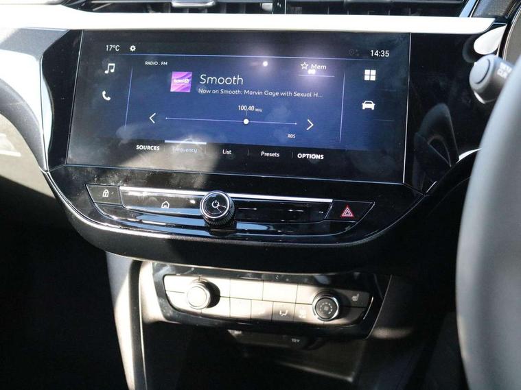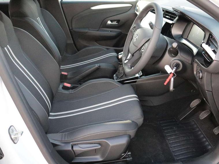 7 inch digital instrument cluster display, Breakdown call (b-call), Central facia display with digital clock, outside air temperature and audio information, Cruise control with intelligent speed limiter, Driver drowsiness alert system, E-call, Engine oil life indicator, Front camera system, Instrumentation - Speedometer, rev counter, low fuel gauge warning light + water temperature gauge warning light, Lane departure warning, Lane keep assist, Lights on audible warning, Multi function trip computer, Pre conditioning of vehicle temperature, RDS with traffic programme, Rear parking distance sensors, Remote check of battery level programming and charge management, Service indicator, Smartphone projection, Speed sensitive power steering, Speed sign recognition, Start/stop system, Vauxhall connect box, Vehicle status and information, Wireless Apple CarPlay/Android Auto, Electronic returnless fuel system, Petrol Particulate Filter, Under body shield for aero, AM/FM stereo radio, Bluetooth A2DP audio streaming, DAB Digital radio, Multimedia with 10-inch touchscreen, Six speakers, Steering wheel audio, phone and cruise controls, USB type C port, 3rd brake light, Automatic headlight control system, Black door mirror housings, Black lower side window mouldings, Black rear griffin badge and model lettering, Body colour door handles, Body colour rear bumper, Bonnet/headlight/wiper structure, Corsa lettering in tailgate, Dark tinted rear side windows + tailgate window, Electrically adjustable and heated door mirrors, Electrically operated front and rear windows with safety auto reverse and one touch up/down facility, Electrochromic automatic anti-dazzle rear view mirror, Flexible roof mounted aerial, Glazed tailgate and heated rear window with wash/wipe facility, Halogen tail lamps, Hazard warning lights, Headlamps for left side traffic, High beam assist, High gloss black finish B pillar, Intelli-LED headlights, LED daytime running lights, Rain sensitive windscreen wipers, Rear fog lamp, Rear reversing lights, Rear side wing doors, Rear wiper, Solar heat absorbing windscreen and windows, Sports front and rear body styling for upper and lower bumper design, Two speed windscreen wipers with variable intermittent wipe, Windscreen and side window demist vents, 12V power sockets, 3 bench rear seats in 2nd row, 4 speed fan with illuminated controls, 6 way manual adjustable co-driver seat height up/down, reach fore/aft, backrest upright/recline, 6 way manual adjustable driver seat height up/down, reach fore/aft, backrest upright/recline, 60/40 split folding rear seat, Air conditioning with air recirculation facility, Banda cloth upholstery, Black headliner, Cabin particulate filter - removes dust, airborne particles and pollen, Comfort front seats, Driver/passenger sunvisors with vanity mirrors + covers, Flat bottomed steering wheel, Four adjustable facia vents, Front cupholder, Front headrests, Height adjustable head restraints, Illuminated glovebox with lid, Interior courtesy light, Internal chrome door handles, LED boot light, Polyurethane gear knob/lever, Reach and rake adjustable steering column, Rear cupholder, Rear headrests, Right hand drive (RHD), Single dome lamp with dual front reading lamps, Single front passenger seat, Two litre open door pockets, Vegan leather steering wheel, YES interior badging, Winter pack - Corsa, 3 rear 3 point seatbelts, Anti-lock braking system (ABS), Automatic emergency braking with pedestrian detection, Cornering brake control, Deactivation switch for front passenger's airbag, Drag torque control, Driver and front passenger airbags, front seat side impact airbags, full size curtain airbags, EBD - Electronic brakeforce distribution, Electrical child lock system in rear door latch, Electronic Stability Programme (ESP), Emergency brake assist, Forward collision alert, Front seatbelt unfastened audible warning and warning light, Front ventilated disc brakes - 381mm, Hill hold and start system, ISOFIX child seat mountings incorporating top tether anchor points located on second row rear seats, Manual handbrake, Rear drum brakes - 203mm, Seatbelt pretensioners, Single tone horn, Straight line stability control, Traction control, Tyre deflation detection system, 2 keys one folding with integral remote, Electronically protected audio equipment, Engine deadlock and immobiliser, Freewheeling door locks, Locking wheel nuts, Remote control central locking, Remote locking fuel filler flap, Steering column lock, Visible vehicle identification number, 16" Diamond-cut hi-gloss black alloy wheels - Yes Petrol, Tyre repair kit,