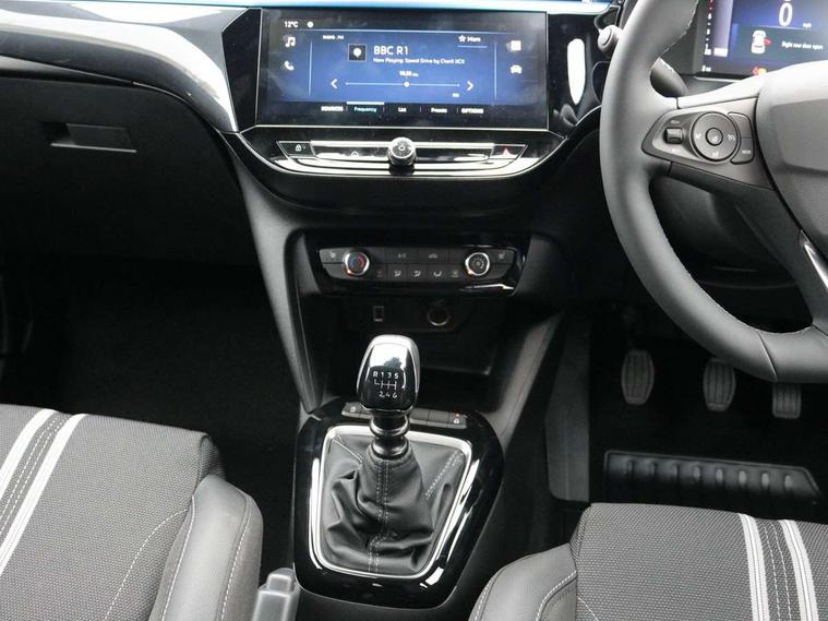 7 inch digital instrument cluster display, Breakdown call (b-call), Central facia display with digital clock, outside air temperature and audio information, Cruise control with intelligent speed limiter, Driver drowsiness alert system, E-call, Engine oil life indicator, Front camera system, Instrumentation - Speedometer, rev counter, low fuel gauge warning light + water temperature gauge warning light, Lane departure warning, Lane keep assist, Lights on audible warning, Multi function trip computer, Pre conditioning of vehicle temperature, RDS with traffic programme, Rear parking distance sensors, Remote check of battery level programming and charge management, Service indicator, Smartphone projection, Speed sensitive power steering, Speed sign recognition, Start/stop system, Vauxhall connect box, Vehicle status and information, Wireless Apple CarPlay/Android Auto, Electronic returnless fuel system, Petrol Particulate Filter, Under body shield for aero, AM/FM stereo radio, Bluetooth A2DP audio streaming, DAB Digital radio, Multimedia with 10-inch touchscreen, Six speakers, Steering wheel audio, phone and cruise controls, USB type C port, 3rd brake light, Automatic headlight control system, Black door mirror housings, Black lower side window mouldings, Black rear griffin badge and model lettering, Body colour door handles, Body colour rear bumper, Bonnet/headlight/wiper structure, Corsa lettering in tailgate, Dark tinted rear side windows + tailgate window, Electrically adjustable and heated door mirrors, Electrically operated front and rear windows with safety auto reverse and one touch up/down facility, Electrochromic automatic anti-dazzle rear view mirror, Flexible roof mounted aerial, Glazed tailgate and heated rear window with wash/wipe facility, Halogen tail lamps, Hazard warning lights, Headlamps for left side traffic, High beam assist, High gloss black finish B pillar, Intelli-LED headlights, LED daytime running lights, Rain sensitive windscreen wipers, Rear fog lamp, Rear reversing lights, Rear side wing doors, Rear wiper, Solar heat absorbing windscreen and windows, Sports front and rear body styling for upper and lower bumper design, Two speed windscreen wipers with variable intermittent wipe, Windscreen and side window demist vents, 12V power sockets, 3 bench rear seats in 2nd row, 4 speed fan with illuminated controls, 6 way manual adjustable co-driver seat height up/down, reach fore/aft, backrest upright/recline, 6 way manual adjustable driver seat height up/down, reach fore/aft, backrest upright/recline, 60/40 split folding rear seat, Air conditioning with air recirculation facility, Banda cloth upholstery, Black headliner, Cabin particulate filter - removes dust, airborne particles and pollen, Comfort front seats, Driver/passenger sunvisors with vanity mirrors + covers, Flat bottomed steering wheel, Four adjustable facia vents, Front cupholder, Front headrests, Height adjustable head restraints, Illuminated glovebox with lid, Interior courtesy light, Internal chrome door handles, LED boot light, Polyurethane gear knob/lever, Reach and rake adjustable steering column, Rear cupholder, Rear headrests, Right hand drive (RHD), Single dome lamp with dual front reading lamps, Single front passenger seat, Two litre open door pockets, Vegan leather steering wheel, YES interior badging, Winter pack - Corsa, 3 rear 3 point seatbelts, Anti-lock braking system (ABS), Automatic emergency braking with pedestrian detection, Cornering brake control, Deactivation switch for front passenger's airbag, Drag torque control, Driver and front passenger airbags, front seat side impact airbags, full size curtain airbags, EBD - Electronic brakeforce distribution, Electrical child lock system in rear door latch, Electronic Stability Programme (ESP), Emergency brake assist, Forward collision alert, Front seatbelt unfastened audible warning and warning light, Front ventilated disc brakes - 381mm, Hill hold and start system, ISOFIX child seat mountings incorporating top tether anchor points located on second row rear seats, Manual handbrake, Rear drum brakes - 203mm, Seatbelt pretensioners, Single tone horn, Straight line stability control, Traction control, Tyre deflation detection system, 2 keys one folding with integral remote, Electronically protected audio equipment, Engine deadlock and immobiliser, Freewheeling door locks, Locking wheel nuts, Remote control central locking, Remote locking fuel filler flap, Steering column lock, Visible vehicle identification number, 16" Diamond-cut hi-gloss black alloy wheels - Yes Petrol, Tyre repair kit,