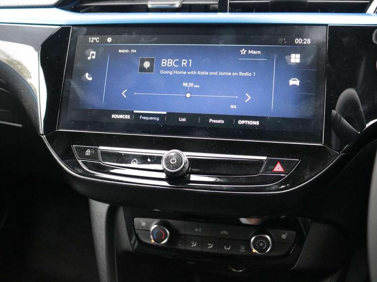 7 inch digital instrument cluster display, Breakdown call (b-call), Central facia display with digital clock, outside air temperature and audio information, Cruise control with intelligent speed limiter, Driver drowsiness alert system, E-call, Engine oil life indicator, Front camera system, Instrumentation - Speedometer, rev counter, low fuel gauge warning light + water temperature gauge warning light, Lane departure warning, Lane keep assist, Lights on audible warning, Multi function trip computer, Pre conditioning of vehicle temperature, RDS with traffic programme, Rear parking distance sensors, Remote check of battery level programming and charge management, Service indicator, Smartphone projection, Speed sensitive power steering, Speed sign recognition, Start/stop system, Vauxhall connect box, Vehicle status and information, Wireless Apple CarPlay/Android Auto, Electronic returnless fuel system, Petrol Particulate Filter, Under body shield for aero, AM/FM stereo radio, Bluetooth A2DP audio streaming function (Advanced audio distribuition profile), DAB Digital radio, Multimedia with 10-inch touchscreen, Six speakers, Steering wheel audio, phone and cruise controls, USB type C port, 3rd brake light, Automatic headlight control system, Black door mirror housings, Black lower side window mouldings, Black rear griffin badge and model lettering, Body colour door handles, Body colour rear bumper, Bonnet/headlight/wiper structure, Corsa lettering in tailgate, Dark tinted rear side windows + tailgate window, Electrically adjustable and heated door mirrors, Electrically operated front and rear windows with safety auto reverse and one touch up/down facility, Electrochromic automatic anti-dazzle rear view mirror, Flexible roof mounted aerial, Glazed tailgate and heated rear window with wash/wipe facility, Halogen tail lamps, Hazard warning lights, Headlamps for left side traffic, High beam assist, High gloss black finish B pillar, Intelli-LED headlights, LED daytime running lights, Rain sensitive windscreen wipers, Rear fog lamp, Rear reversing lights, Rear side wing doors, Rear wiper, Solar heat absorbing windscreen and windows, Sports front and rear body styling for upper and lower bumper design, Two speed windscreen wipers with variable intermittent wipe, Windscreen and side window demist vents, 12V power sockets, 3 bench rear seats in 2nd row, 4 speed fan with illuminated controls, 6 way manual adjustable co-driver seat height up/down, reach fore/aft, backrest upright/recline, 6 way manual adjustable driver seat height up/down, reach fore/aft, backrest upright/recline, 60/40 split folding rear seat, Air conditioning with air recirculation facility, Banda cloth upholstery, Black headliner, Cabin particulate filter - removes dust, airborne particles and pollen, Comfort front seats, Driver/passenger sunvisors with vanity mirrors + covers, Flat bottomed steering wheel, Four adjustable facia vents, Front cupholder, Front headrests, Height adjustable head restraints, Illuminated glovebox with lid, Interior courtesy light, Internal chrome door handles, LED boot light, Polyurethane gear knob/lever, Reach and rake adjustable steering column, Rear cupholder, Rear headrests, Right hand drive (RHD), Single dome lamp with dual front reading lamps, Single front passenger seat, Two litre open door pockets, Vegan leather steering wheel, YES interior badging, Winter pack - Corsa, 3 rear 3 point seatbelts, Anti-lock braking system (ABS), Automatic emergency braking with pedestrian detection, Cornering brake control, Deactivation switch for front passenger's airbag, Drag torque control, Driver and front passenger airbags, front seat side impact airbags, full size curtain airbags, EBD - Electronic brakeforce distribution, Electrical child lock system in rear door latch, Electronic Stability Programme (ESP), Emergency brake assist, Forward collision alert, Front seatbelt unfastened audible warning and warning light, Front ventilated disc brakes - 381mm, Hill hold and start system, ISOFIX child seat mountings incorporating top tether anchor points located on second row rear seats, Manual handbrake, Rear drum brakes - 203mm, Seatbelt pretensioners, Single tone horn, Straight line stability control, Traction control, Tyre deflation detection system, 2 keys one folding with integral remote, Electronically protected audio equipment, Engine deadlock and immobiliser, Freewheeling door locks, Locking wheel nuts, Remote control central locking, Remote locking fuel filler flap, Steering column lock, Visible vehicle identification number, 16" Diamond-cut hi-gloss black alloy wheels - Yes Petrol, Tyre repair kit,