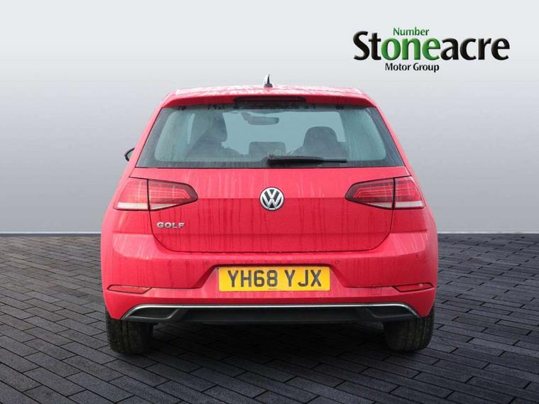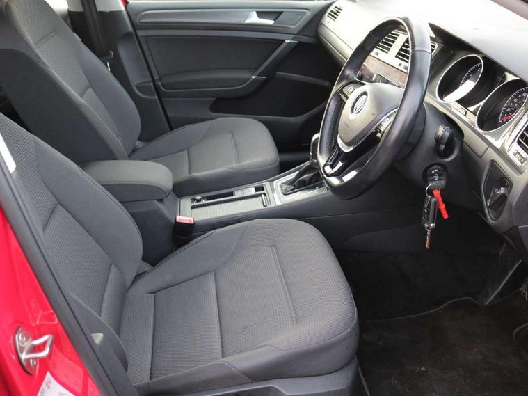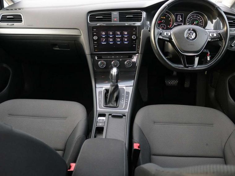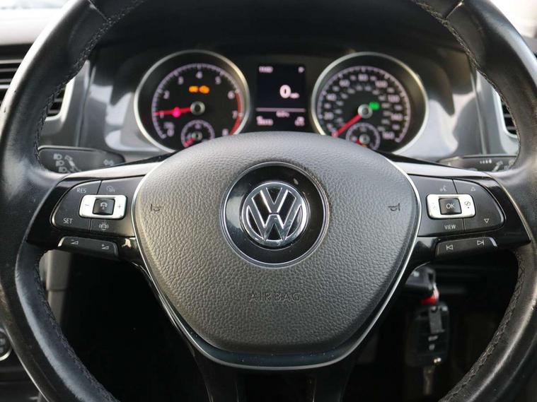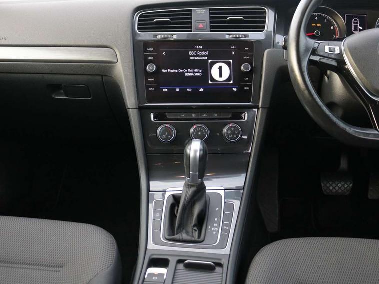 App-Connect, 'Lights On' Reminder warning buzzer, 8" colour touch screen, ACC - Adaptive cruise control with front assist, forward collision warning, distance monitoring, city emergency brake and speed limiter, Bluetooth telephone and audio connection for compatible devices, Brake pad wear indicator warning light, Drive mode selector, Driver alert system, Driver profile selection, Front assist, radar sensor controlled distance monitor, city emergency braking + predictive pedestrian protection, Front assistant collision mitigation, Instrument cluster in white, Misfuelling protection device, Multifunction computer with visual gear change recommendation for fuel consumption, Power assisted speed sensitive electro-mechanical steering, Speedo, rev counter, electronic odometer, trip, service interval display, exterior temperature and fuel gauge, Stop/start system, Ultrasonic front and rear optical and audible parking sensors, Warning buzzer and light for front seatbelts unfastened, Battery regeneration during braking, Diesel particulate filter, XDS electronic differential lock, 8 speakers, CD player, Composition media system, DAB Digital radio receiver, MP3/WMA compatability, SMS Functionality, USB and SD card connectivity, Automatic coming/leaving home lighting function, Automatic dimming rear view mirror/rain sensor, Black front air intake and radiator grille with chrome insert, Black rear diffuser, Body colour bumpers, Body colour door handles, Body colour door mirrors with integrated indicators, Electric front windows, Electric rear windows, Electrically adjustable and heated door mirrors, Glavanised body, Heated rear windscreen, High level 3rd brake light incorporating LED Technology, Range adjustable headlights via infotainment system with LED daytime running lights, Rear number plate lights incorporating LED technology, Rear window aerial, Rear window wash/wipe with intermittent wipe, Reflectors in all doors, Remote electrically foldable door mirrors, door mirror puddle lights and reverse activated kerb-view adjustment on passengers door mirror, Tailgate with integrated rear roof spoiler, Windscreen wipers/ intermittent wipe + 4 position delay, 12V socket in luggage compartment, 3 rear headrests, 4 load lashing points in luggage compartment, 60/40 split folding rear seat backrest, Bag hook in luggage compartment x 2, Cooled glovebox, Dust/pollen filter, Front and rear reading lights incorporating LED technology, Front centre armrest with storage compartment and two rear air vents, Front seat back storage pockets, Grab handles front x 2, rear x 2 with integrated coat hooks, Height and reach adjustable steering wheel, Illuminated vanity mirrors, Instrument lighting white adjustable panel illumination, Interior light delay, Isofix preparation for 2 rear child seats, Load through provision with rear centre armrest and cupholders x2, Luggage compartment light, Multifunction leather steering wheel with leather trimmed gear knob, Overhead storage box, Pearl grey headlining, Storage box in luggage compartment, Storage compartment in roof console with cover, Storage compartments in front doors, Storage compartments in rear doors, Stowable luggage compartment cover, Sun visors, Three spoke multi-function leather trimmed steering wheel and gearknob, Variable boot floor, height adjustable and removable, Mirror pack - Golf, 3 rear three point seatbelts, Airbags - Driver's and front passenger's, curtain airbag, Driver's knee, front side impact and passenger's airbag deactivation switch, Anti-lock Braking System (ABS) with Hydraulic Brake Assist (HBA), Automatic post collision braking system, Child locks on rear doors, Driver/Passenger optimised head restraints, Electronic parking brake with auto hold, Electronic stability control (ESC) including Electronic differential lock (EDL) and ASR (Traction control) with deactivation via infotainment system, Pre crash preventive occupant protection, Three point height adjustable front seatbelts with tensioners, Tyre pressure loss indicator, Alarm with interior protection, Electronic engine immobiliser, Remote central locking with 2 remote folding keys, Brushed dark silver decorative inserts in dash and door panels, Chrome plated air vent surround, Chrome-plated light switch surround, Polar night black centre console, Steel space saver spare wheel,