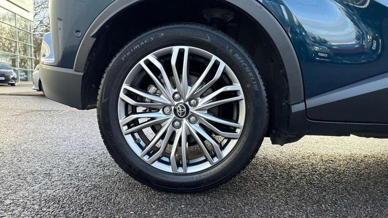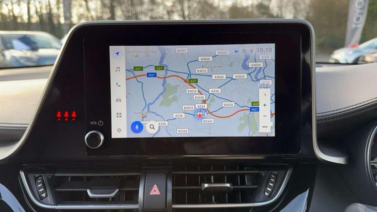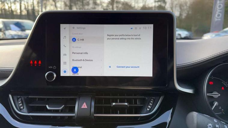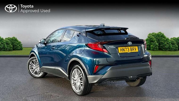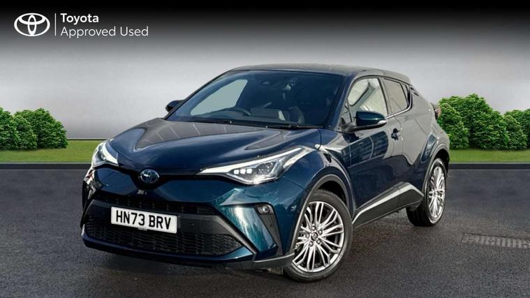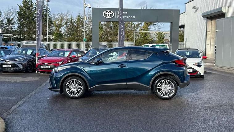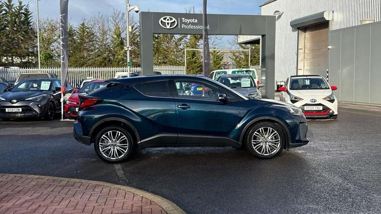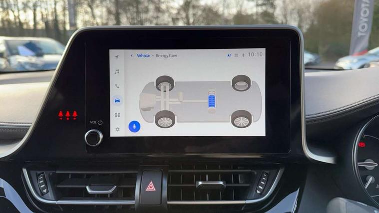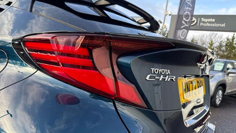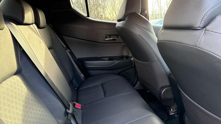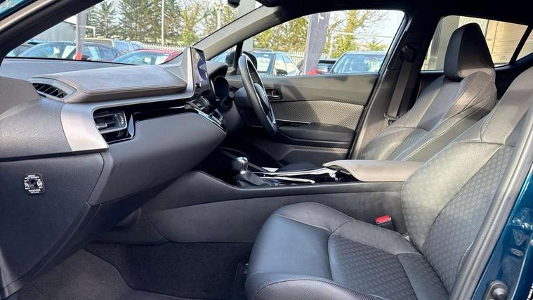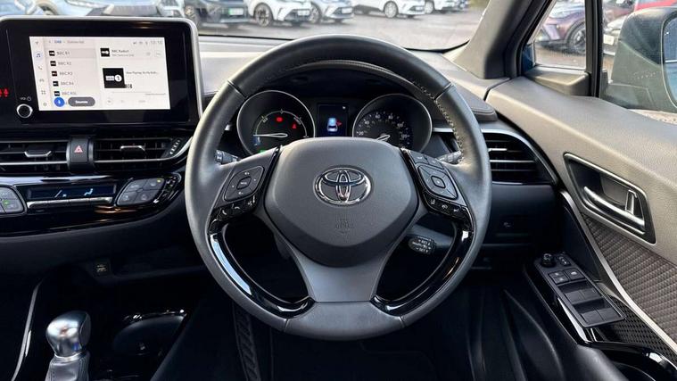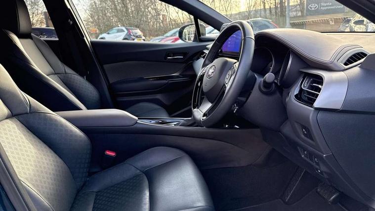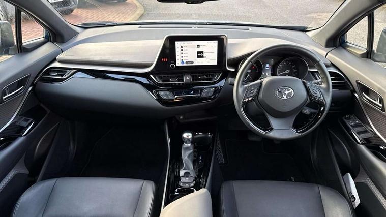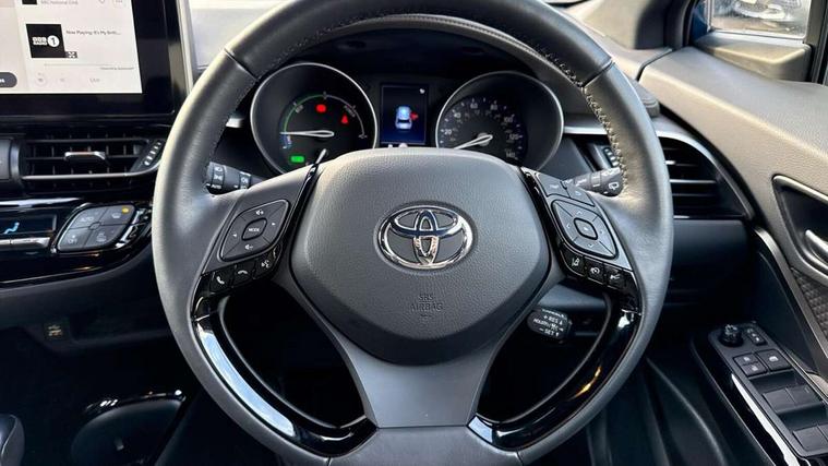 4.2" coloured TFT screen for multi-information display, Adaptive cruise control, Apple car play and Android auto, Bluetooth connectivity, E-call, Electric power steering, Hybrid system indicator, Lane departure alert with steering control, Lane trace assist, Push button tailgate release, Remote boot door release in cabin, Remote boot door release in key, Reversing camera, Road sign assist - RSA, Simple Intelligent parking assist, Smart voice assist, Touch 2 Go navigation system, Trip computer, Voice recognition, Wireless smartphone integration, Vehicle Stability Control (VSC), 6 speakers, AM/FM radio, DAB Radio (Digital Audio Broadcasting), Toyota touch 2 multimedia system with 8" display, USB connector, Wi-fi connectivity, Adaptive front light system, Adaptive LED Headlights, Anti-jam protection on power windows, Auto high beam, Auto up and down function on all power windows, Automatic headlight levelling, Automatic headlights, Automatic headlights cut-off, Black and body coloured rear bumper, Black lower front grille, Black upper front grille, Body colour door handles, Body colour door mirrors, Body colour front spoiler lip, Body coloured front bumper, Boot door release with push button, Electric heated door mirrors, Follow me home headlights, Front and rear power windows, Headlight cut off reminder, Honeycomb lower front grille, LED daytime running lights, LED fog lights, LED front light guide, LED High mounted stop light, LED rear brake lights, LED rear combination lights, Noise reduction layer on front windows and windscreen, Power adjustable door mirrors, Privacy glass, Rain sensor, Rear sequential indicators, Rear side wing doors, Rear spoiler, Rear tailgate, Rear window defogger, Rear window wiper, Shark fin antenna, UV-filter on driver and passenger windows, UV-filter on rear windows, Variable front intermittent wipers, 12v power outlet - front, 3 rear headrests, 3 seat bench in 2nd row, 3 spoke leather steering wheel, 60/40 split folding 2nd row rear seats, Adjustable rear headrests, Adjustable speed limiter switch on steering wheel, Assist grips front and centre pillar, Audio and telephone switches on steering wheel, Black front door assist grips, Blue ambient lighting on front cup holders, Blue ambient lighting on front doors, Boot light, Chrome interior door handles, Driver and front passenger personal light, Driver and front passenger Whiplash Injury Lessening seats, Driver and passenger seatback pockets, Dual zone automatic air conditioning, Floor mats, Front cupholders, Front head restraints, Front sports seats, Glovebox with internal light, Hard tonneau cover, Heated driver and front passenger seats, Heated steering wheel, Hooks for luggage holding net, Humidifying Nanoe air purifier, Illuminated entry system, Isofix attachments on outer rear seats, Leather gearshift, Light on driver sun visor, Light on passenger sun visor, Manual telescopic steering wheel, Manual tilt steering wheel, Microphone on front personal light, Mirror on driver sun visor, Mirror on passenger sun visor, Multimedia switches on steering wheel, Pollen filter, Power adjustable lumbar support on driver seat, Power tilting cushion on driver seat, Shopping bag hooks, Single front passenger seat, Slow opening on lower glovebox, Voice recognition switch on steering wheel, Leather pack - C-HR, Tech with parking sensor pack - C-HR, 16 Disk front wheel brake, 3x3 point rear seatbelts, ABS+EBD+Brake assist, Electronic parking brake, Front and rear seatbelt reminder, Front passenger airbag on/off switch, Hill start assist control (HAC), Pre collision system with pedestrian detection, Pre-tensioners and force limiters, Rear door child safety locks, SRS Airbags - Driver + Front passenger, front side, front and rear curtain and driver's knee airbags, Toyota safety sense, Tyre pressure monitoring system, Tyre pressure warning system, Acoustic vehicle alert system (AVAS), Glass-breaking alarm sensors, Immobiliser, Intrusion alarm, Intrusion sensor, Motion sensor alarm, Power door locks, Power passenger window lock, Remote central locking, Black lower dashboard, Dark brown upper dashboard, Piano black console, Silver deco line on upper dashboard, Tyre repair kit,