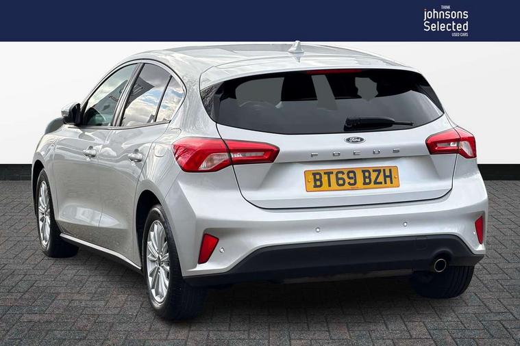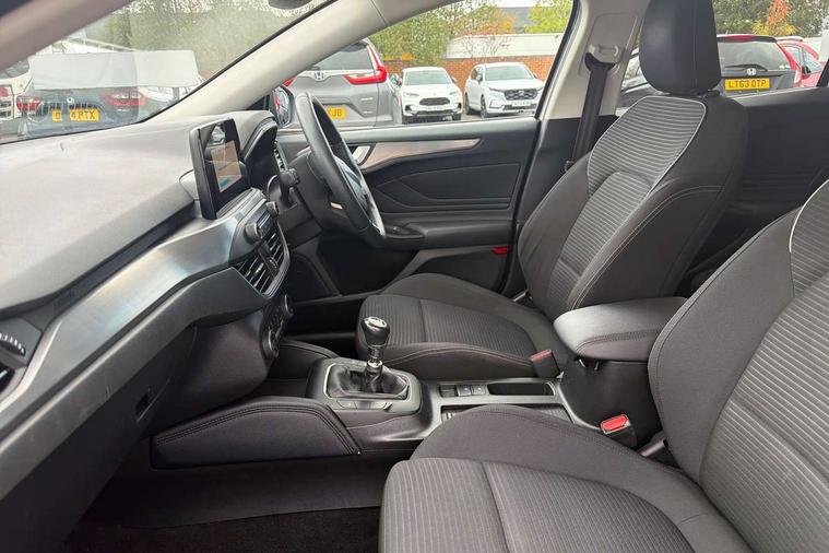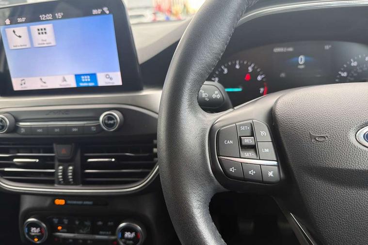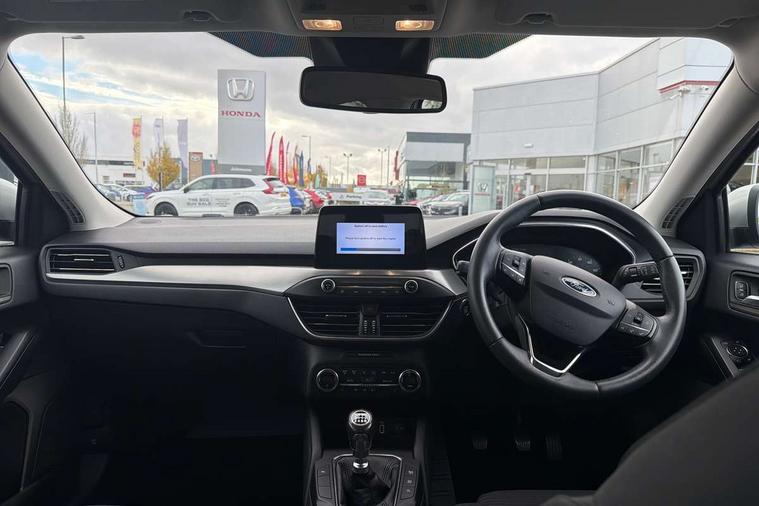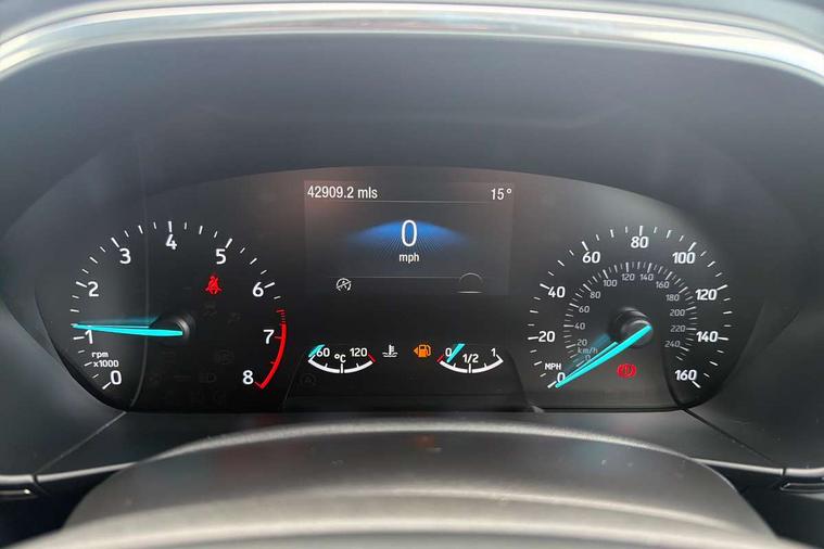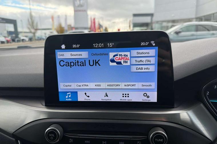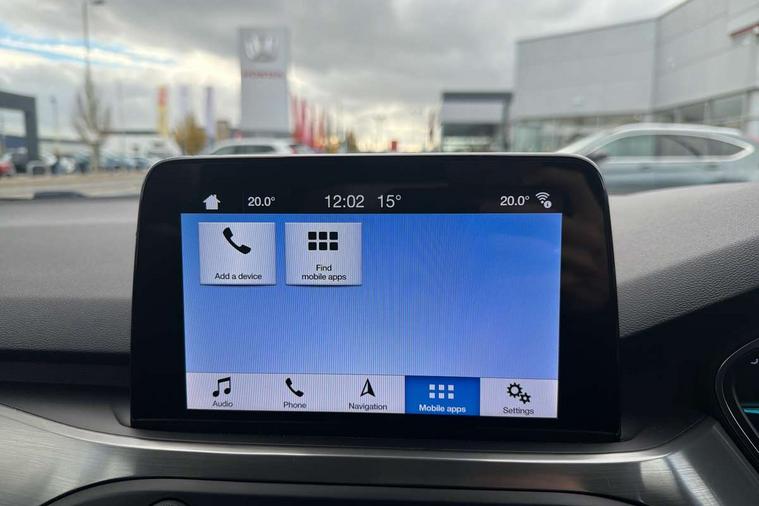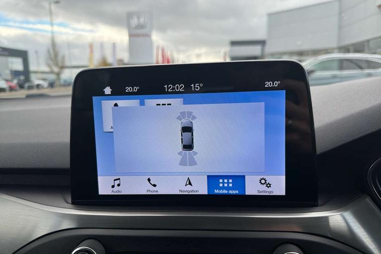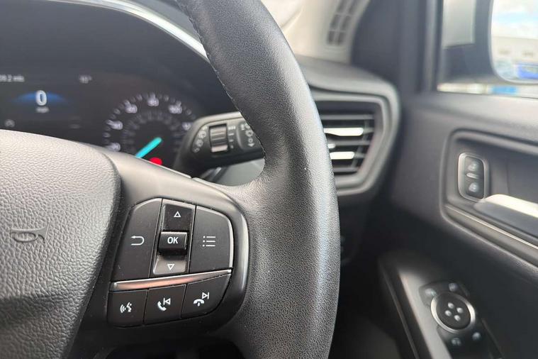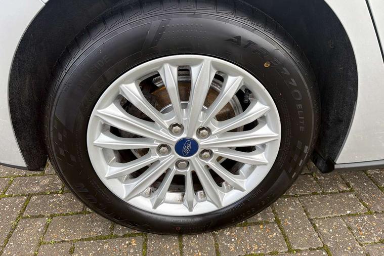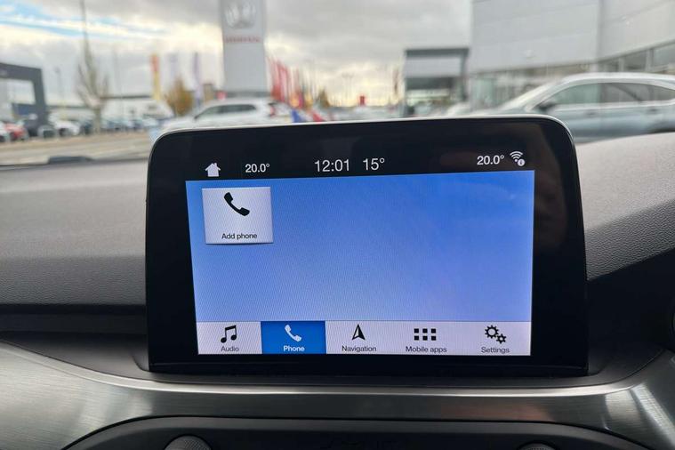 Bluetooth system, Digital clock, Easy fuel capless refuelling system, Eco mode, Ford pass connect, Ford SYNC 3 nav system with DAB radio, 8" colour touch screen, voice control, app link, Apple car play/Android auto and 4.2" TFT coloured cluster, Front and rear parking sensors, Intelligent speed assist, Lane keeping aid with lane departure warning, PAS, Selectable drive mode, Trip computer, 2 USB ports, Aux input, 'Quickclear' heated windscreen/heated washer jets, Auto dimming rear view mirror, Auto headlamps (on/off), Automatic rain sensing wipers, Body coloured bumpers, Body coloured door handles, Body coloured electrically operated and heated door mirrors with side indicators, Electrically operated front and rear windows with one touch opening and closing, Front fog lamps with cornering function, Front variable intermittent wipers with electric wash, Halogen reflector headlamps, Heated rear window, LED daytime running lamp, LED rear lamps, Power folding door mirrors with puddle lights, Tailgate wash/wipe, Upper grille with chrome surround and horizontal bars, 3 spoke leather trimmed steering wheel with integrated audio controls, 60/40 split back and cushion rear seats with 2 height adjustable headrests, Ambient lighting, Centre console with sliding front armrest, Cloth upholstery, Dual zone electronic air temperature control, Front/rear floor mats, Heated front seats, Height adjustable front headrests, Isofix child seat preparation, Leather gear knob, Reach + rake adjustable steering column, Rear centre headrest, ABS+Electronic Brake force Distribution, Auto hold function, Driver airbag, Electronic parking brake, Electronic stability control, Front and rear seatbelt reminder, Front inertia reel height adjustable seatbelts with pre-tensioners, Front passenger airbag, Front side airbags, Hill start assist, Passenger airbag deactivate switch, Post collision braking, Pre collision assist with autonomous emergency braking and pedestrian/cyclist detection, Side curtain airbags, Three rear inertia reel lap/diagonal seatbelts, Tyre pressure monitoring system, Ford keyfree system with Keyless entry and keyless start, MyKey system, Remote central locking & engine immobiliser, Thatcham category 1 alarm, 16" 15 spoke sparkle silver alloy wheels, Mini steel spare wheel,