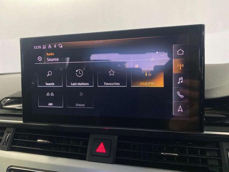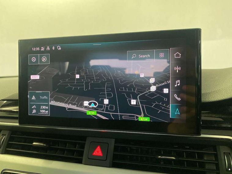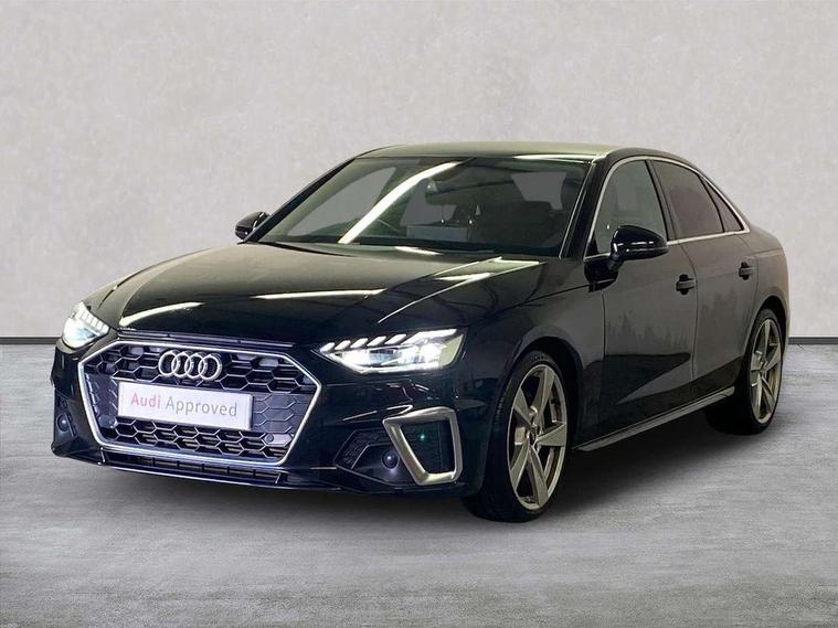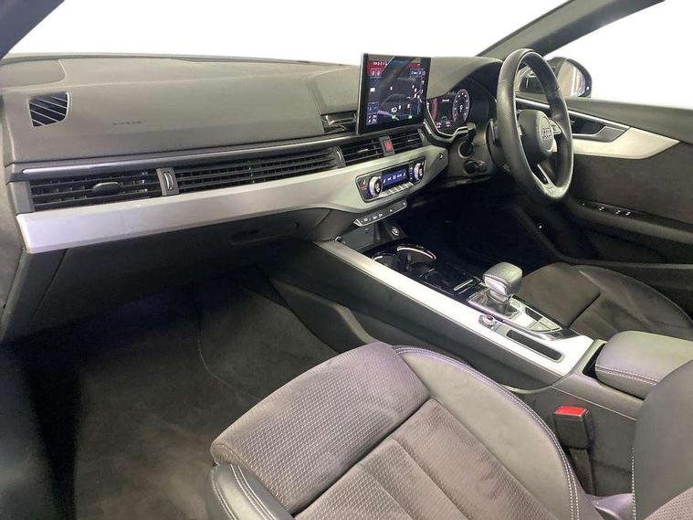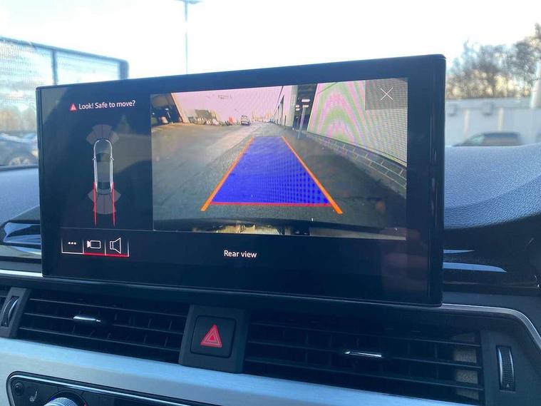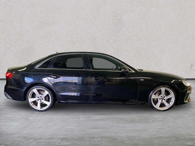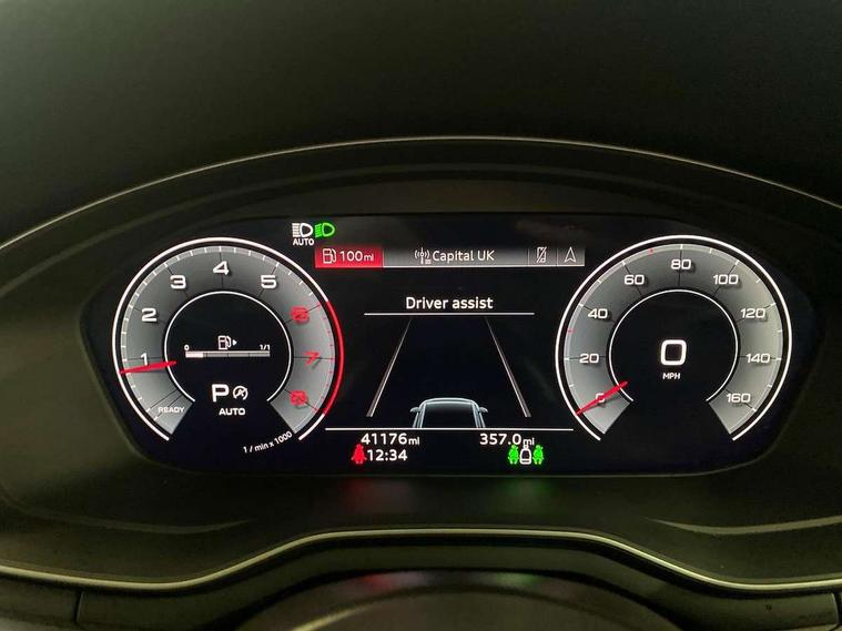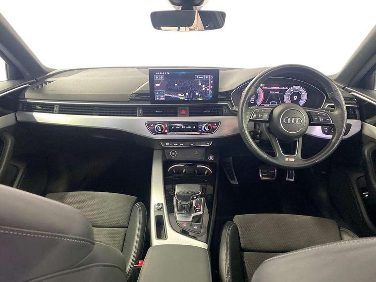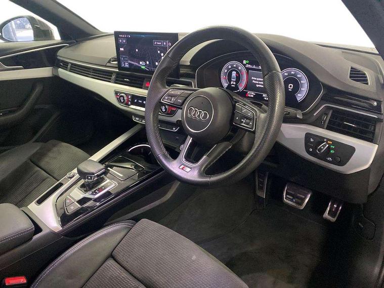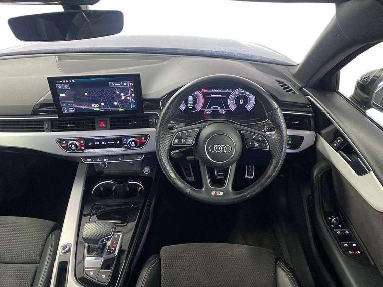 Matt brushed aluminium inlays, High gloss package - A4, LED Interior light pack - A4/S4, Tyre repair kit, Anti theft alarm, Anti theft wheel bolts, Keyless Go, 2 USB charging ports, 8 passive loudspeakers, DAB digital radio reception, 3 rear seatbelts, 6 airbags - Driver, front passenger, curtain and side windows, Electronic Stabilisation Control (ESC) including ABS, ASR and EDL, Hill hold assist, Multi collision brake assist, Pop-up bonnet for pedestrian protection, Pre sense city, Seatbelt monitoring, Warning triangle and first aid kit, Auto dimming rear view mirror, Body colour door handles, Body colour front spoiler lip, Body colour side sill trim, Body coloured door mirrors, Electrically folding auto dimming/adjustable/heated door mirrors with LED side indicators and kerb view function for passenger side, Grained matt black side air inlets with matt aluminium silver inlay, High beam assistant, Honeycomb structure radiator grille in grained matt black, LED headlights with LED rear lights + dynamic rear indicators + headlight adjustment and high beam, turning light + LED daytime running lights, Matt aluminium silver tailpipe trim, Rain and light sensors, S Line badges on the front wings, S line front and rear bumpers with side skirts, S Line rear diffuser in matt titanium black with trim strip in matt aluminium silver, Windscreen with acoustic glazing, 4 way electric lumbar support for driver and front passenger, 40/20/40 split folding 3 rear seat bench in 3 parts with rear centre armrest, Black cloth headlining, Black perforated leather gearknob, Contrast stitching on seats, steering wheel and gear lever gaiter, Deluxe 3 zone electronic climate control, Door sill trims with aluminium inlay, Front and rear head restraints, Front centre armrest, Heated front seats, Illuminated door sill trims with S logo, ISOFIX child seat mounting and top tether, Manual seat adjustment, Stainless steel pedals and foot rest, Tool kit, Audi connect safety and service (e-call), Audi drive select, Audi parking system plus with front and rear sensors, Audi smartphone interface, Audi virtual cockpit, Automatic start-stop system with coasting functionality and efficiency programme, Bluetooth interface, Electric boot lid release, Electromechanical power steering, MMI Navigation plus with MMI touch includes 10.1" high resolution colour MMI display, 3D map, Rear view camera, Voice control system, 54 litre fuel tank, Sports suspension lowered by 23mm,