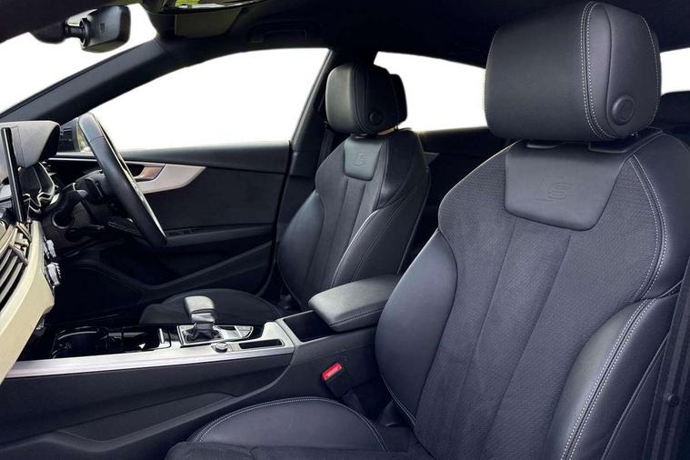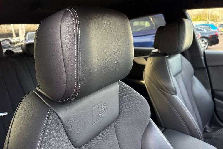 Audi connect safety and service (e-call), Audi connect with Amazon Alexa Integration, Audi drive select (Auto, Comfort, Dynamic, Efficiency and Individual), Audi parking system plus with front and rear sensors, Audi smartphone interface, Audi virtual cockpit - 12.3" full colour digital instrument cluster, vehicle/engine speed, Radio/media information+Driver assistance systems, Automatic start-stop system with coasting functionality and efficiency programme, Bluetooth interface, Electro-mechanical power steering, Email, calendar and text messages displayed via MMI, MMI nav+ with MMI touch - 10.1" high resolution MMI display, touch sensitive, 3D map, route/country info, dynamic route guide, personal route assist, Power operated tailgate, Rear view camera, Service interval indicator, Voice control system, Diesel particulate filter, Sports suspension lowered by 23mm, 8 passive loudspeakers, CD player, DAB digital radio reception, Two additional USB ports for rear passenger in rear centre console, Two SDXC card slots, Audi matrix LED headlights with LED rear lights + dynamic front and rear indicators, Auto dimming door mirrors, Auto dimming rear view mirror, Body colour bumpers, Body colour door handles, Body colour front spoiler lip, Body colour side sill trim, Body coloured door mirrors, Electric adjustable heated door mirrors, Electric folding door mirrors, Electric front windows, Front fog lights, Honeycomb structure radiator grille in grained matt black, Kerb-view function for passenger side, LED daytime running lights, LED side indicator lights integrated into door mirrors, LED third brake light, Matt aluminium silver tailpipe trim, Privacy glass, Rain and light sensors, Rear side wing doors, S line badges on front wings, S line front and rear bumpers with side skirts, S Line rear diffuser in matt titanium black with trim strip in matt aluminium silver, Side air inlets in grained matt black with matt aluminium silver inlay, Variable front intermittent wipers, Windscreen with acoustic glazing, 3 seat bench in 2nd row, 4 way electric lumbar support for driver and front passenger, 40/20/40 split folding 3 seater rear bench seat, Adjustable steering column, Black cloth headlining, Black perforated leather gearknob, Contrast stitching on seats, steering wheel and gear lever gaiter, Deluxe 3 zone electronic climate control, Front centre armrest, Front head restraints, Front/rear floor mats, Heated front seats, Illuminated door sill trim with S logo, ISOFIX child seat mounting and top tether, Luggage compartment mat, Manual seat adjustment, Rear centre armrest, Rear headrests, Single front passenger seat, Stainless steel pedals, Sunvisors with vanity mirrors, LED interior light pack - A5/RS5, 3x3 point rear seatbelts, 6 airbags - Driver, front passenger, curtain and side airbags, Electromechanical parking brake, Electronic Stabilisation Control (ESC) including ABS, ASR and EDL, Front passenger airbag deactivation, Height adjustable front seatbelts, Hill hold assist, Manual child lock in rear doors, Multi collision brake assist, Pop-up bonnet for pedestrian protection, Pre sense city, Seatbelt monitoring, Tyre pressure warning, Variable restraint system, Warning triangle and first aid kit, Anti theft alarm system, Anti theft wheel bolts, Immobiliser, Keyless Go, Remote central locking, Matt brushed aluminium inlays, Tool kit, Tyre repair kit,