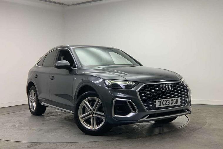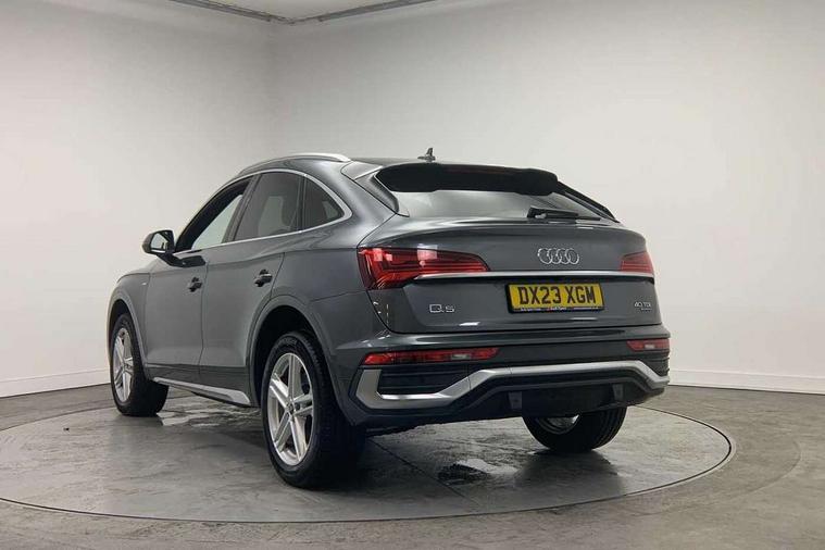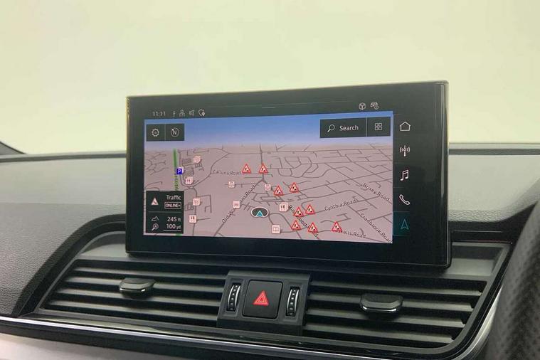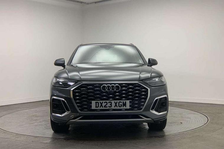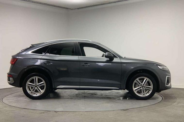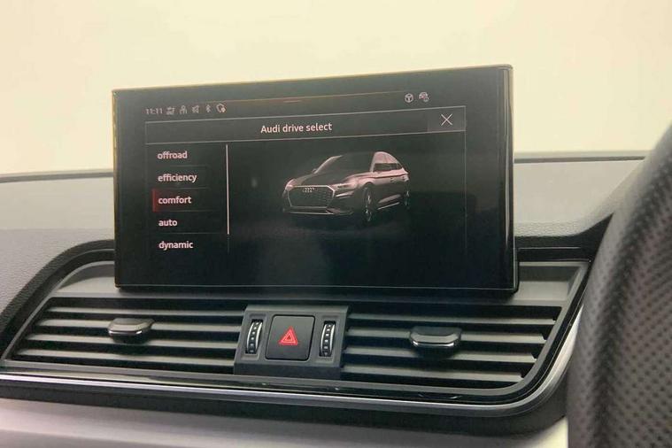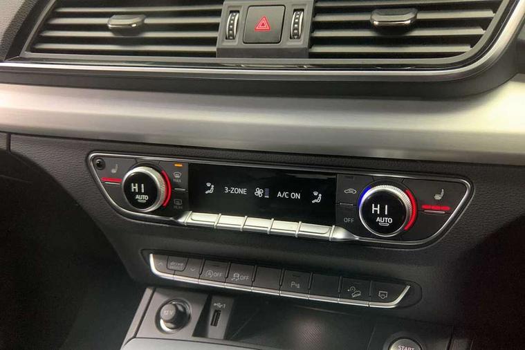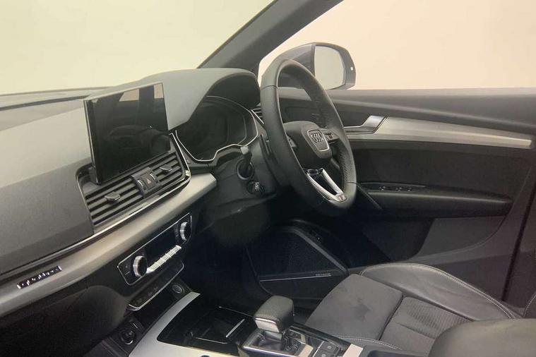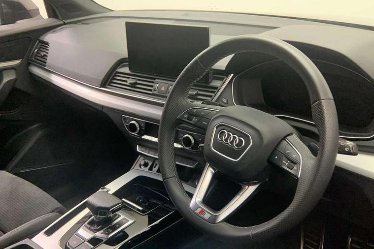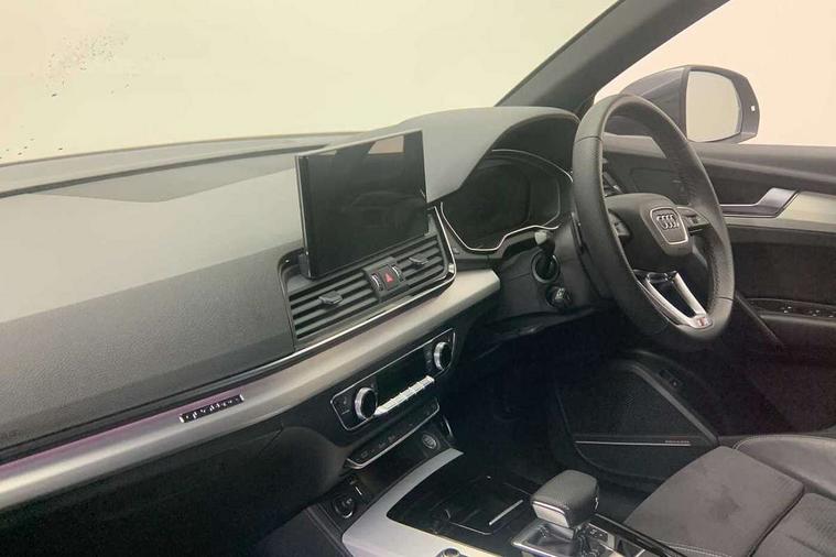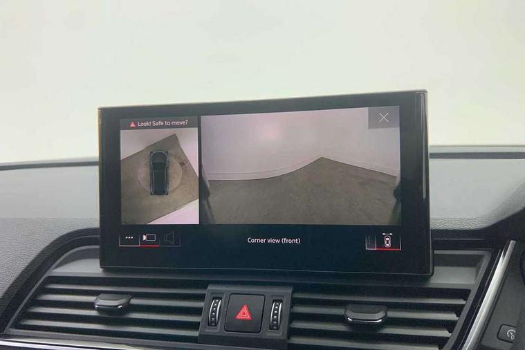 Acoustic front and rear parking sensor, Audi connect safety and service (e-call), Audi connect with Amazon Alexa Integration, Audi drive select, Audi virtual cockpit plus with 12.3" screen and three different layout designs, Audi wireless smartphone interface, Automatic start-stop system with coasting functionality and efficiency programme, Bluetooth interface, Electro - mechanical power assisted steering, MMI navigation plus with 10.1" touch screen, Power tailgate, Reversing camera, Service interval indicator, Voice control system with Audi hotword activation "Hey Audi", Diesel particulate filter, Quattro on demand, S line sports suspension, 2 x USB charging port with aux input socket, 8 loudspeakers, DAB Digital radio, Acoustic windscreen, Aluminium roof rails, Audi matrix LED headlights with dynamic front and rear indicators, Auto dimming door mirrors, Auto dimming frameless rear view mirror, Automatic headlight adjustment, Automatic headlights and windscreen wipers, Body colour door mirrors, Body colour rear diffuser with matt aluminium silver surrounds, Body colour underbody protection, Chrome plated exhaust trims, Daytime running lights, Door sills in Selenite silver, Electric adjustable/heated/folding door mirrors, Front air inlet surrounds in aluminium, Front and rear electric windows, Front radiator grille in honeycomb design, Headlight washers, High level LED brake light, Lower bumpers painted in contrast Manhattan grey, Rear chrome trim strip below lights, Rear privacy glass and rear side windows, Rear side wing doors, Rear wiper, Roof bars, S Line badges on the front wings, S Line front and rear bumpers, S Line rear spoiler, S Line side skirts, 3 rear headrests, 3 spoke leather multifunction steering wheel with S badging perforated leather grips, 40:20:40 split folding 3 rear bench seat in 2nd row with rear centre armrest, Black cloth headlining, Comfort front centre armrest, Contrast stitching on seats, steering wheel and gear lever gaiter, Deluxe 3 zone electronic climate control, Front head restraints, Front/rear floor mats, Gear lever in black leather, Heated front seats, Height/reach adjustable steering column, Illuminated door sill trims with S logo, Manual seat adjustment with 4-way electric lumbar support, Removable luggage compartment floor, Single front passenger seat, Stainless steel pedals, Sunvisors with vanity mirrors, Trunk roller cover, High gloss pack - Q5, LED interior light pack - Q5, 3 point seatbelts on all seats, 6 airbags - Driver, front passenger, curtain and side airbags, Electrically operated child locks on rear doors, Electromechanical parking brake, Electronic stabilisation control including ABS, ASR and EDL, First aid kit with warning triangle and vests, Front passenger airbag deactivation, Hill descent control, Hill hold assist, ISOFIX child seat mounting for front passenger seat and ISOFIX child seat mounting with Top Tether for outer rear seats, Multi collision brake assist, Pop-up bonnet for pedestrian protection, Pre sense city, Seat belt force limiter, Seatbelt monitoring, Tyre pressure warning, Anti theft alarm, Anti-theft wheel bolts, Keyless Go access/ignition system, Remote central locking, Air vents inserts and centre console in gloss black, Matt brushed aluminium inlays,