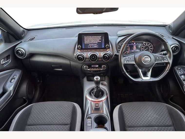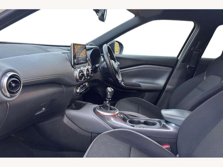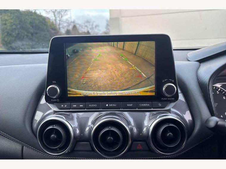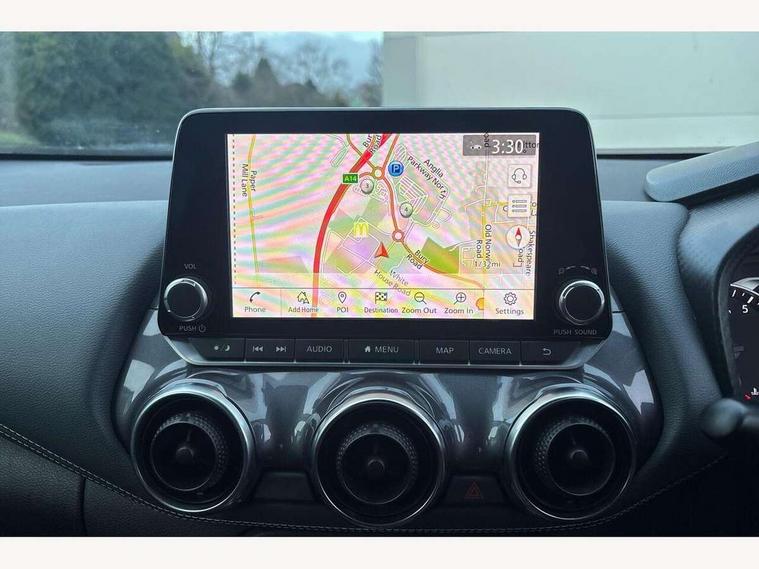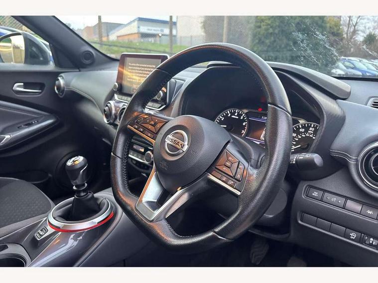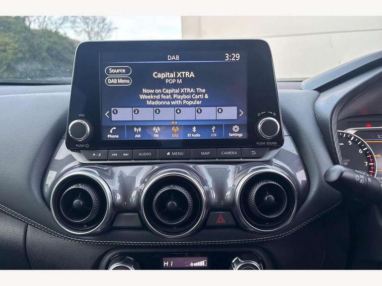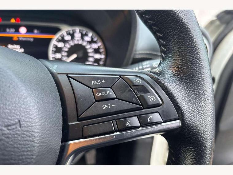 7" full colour TFT screen combimeter, 8" infotainment colour display with touch screen, Apple CarPlay and Google Android auto, Drive modes select (Eco, normal and sport), Emergency and breakdown call, Front parking sensor, Idle start/stop system, Intelligent lane intervention, Lane departure warning system, Nissan connect nav with TomTom traffic, Nissan connect services and Wifi connection, Outside temperature sensor, Power Steering, Rear parking sensor, Traffic sign recognition, Trip computer, Gasoline particulate filter, 6 speakers, Bluetooth system, USB, Aux-in and 12V socket, DAB Digital radio, Rear console USB port, Auto dimming interior rear view mirror, Automatic hazard signal with emergency stop signal, Body colour bumpers, Body colour door handles, Electrically adjustable door mirrors with integrated indicators, Follow me home headlights, Front and rear electric window with one touch driver and passenger window, Heated and auto folding door mirrors, High beam assist, LED daytime running lights, LED front fog lights, LED headlamps, LED rear fog lamp, LED rear lamps, Rain sensor windscreen wipers, Rear privacy glass, Rear spoiler, Rear wiper, Three blink turn signal, 3 height adjustable rear headrests, 60/40 split folding rear seat, Automatic climate control, Card holder on driver sunvisor, Cloth upholstery, Door ambient lighting, Driver and passenger sliding and reclining seats, Driver seat back pocket, Driver side rear coat hanger, Driver/passenger sunvisors and illuminated vanity mirrors, Front and rear cabin lights, Front armrest, Front door pockets with bottle holders, Front head restraints, Front/rear passenger grab handles, Gear console ambient circle lighting, Grey synthetic leather kneepad, Height adjustable driver's seat, Internal chrome door handles, Leather gearshift knob, Leather steering wheel, Luggage board, Luggage space lighting, Monoform sporty seats, Multifunction steering wheel, Passenger seat back pocket, Rear door bottle holders, Telescopic steering wheel adjustment, Two cupholders in front centre console, Two rear isofix child seat anchorage points with top tether, Voice recognition switch on steering wheel, Welcome light and console tray ambient lighting, ABS with EBD and brake assist, Active ride control, Active Trace Control, Driver and passenger airbags, Driver and passenger side airbags, Electric handbrake with auto hold function, Electronic Stability Programme (ESP), Front and rear curtain airbags, Height adjustable seatbelts, Hill start assist, Intelligent emergency braking with pedestrian and cyclist recognition, Seatbelt reminder for driver/front passenger and rear seats, Single tone horn, Three 3 point rear seatbelts, Traction control, Tyre pressure monitoring system, VDC Dynamic Vehicle Control, Ventilated rear brake discs, Alarm, Immobiliser, Intelligent Key with push button starter, Remote central locking,