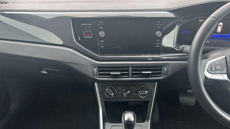Advanced driver attention and drowsiness monitor, Bluetooth mobile phone interface, Dynamic road sign display, Emergency call service, Multifunction front facing camera for distance control, Park distance control, Power assisted speed sensitive steering, Predictive adaptive cruise control without follow-to-stop and speed limiter, Preparation for navigation system with media and internet package, Preparation for We connect and We connect plus, Rear view camera, Speedo and rev counter, electronic odometer, trip, service interval display and exterior temperature gauge, Standard rear axle, Travel Assist - Lane keeping system and traffic jam assist, Travel assist including emergency assist, Trip computer, Warning signal and warning light for front and rear seatbelts not fastened, Washer fluid level indicator, Wireless app connect, Front wheel drive, Rear shock absorpion, Start-stop system with battery regeneration (recuperation - energy recovery during braking), DAB Digital radio, Diversity antenna for FM reception, Front and rear 6 speakers, Automatic dimming interior rear view mirror, Automatic headlight control with LED separate daytime running lights with coming/leaving home function, Body colour bumpers with chrome inserts, Body colour door handles, Body colour door mirrors, Electric front windows, Engine badge deletion, Headlight range adjustment, Heat insulating and laminated safety glass windshield, LED Headlights, LED rear combination lamps, Power folding adjustable/heated exterior mirrors and front passenger exterior mirror lowering function, Rain sensor, Rear electric windows, Rear fog light, Rear side wing doors, Rear tinted glass from B-pillar backwards approx 65% tinted, Rear windscreen washer and wiper with interval delay, Third brake light, 12V power socket in centre console, 2 front and 2 rear reading lights with switch off delay and dimmer, 2 USB-C ports in the front, 2 USB-C charging sockets on the center console in the rear, 3 rear head restraints, 60/40 split folding rear seat and rear seat bench not split, Ceramique roof lining, Chrome plated radiator grille inserts, air vent surrounds and light switch surrounds, Door and side trim panel, Driver and front passenger seat height adjustment, Driver/passenger sunvisors with illuminated vanity mirrors, Front centre armrest, Front seat backrest storage pockets, Front standard seats, Handbrake lever handle in leather, Hartley/Thomas cloth upholstery, Headliner in recycled material, Isofix child seat preparation easy-fit (for two outer rear seats, and front passenger seat) compatible with I-size, Leather trimmed gear knob, Luggage compartment cover, Luggage compartment lighting, Removable luggage compartment floor, Single front passenger seat, Standard climatic zones, Standard pedal cluster, Three spoke leather wrapped multifunction steering wheel with shifting paddles, Light and vision pack - Polo, 3 point height adj front seatbelts + pretensioners, 3 point seat belt for centre rear seat, 3 point seatbelts, outer rear with ECE lable, ABS, Driver and front passenger airbag with front passenger airbag deactivation, Drivers and front passengers safety optimised head restraints, ESC (Electronic stability control) + EDL (Electronic Differntial lock) and ASR (Traction control), Extended and predictive pedestrian/ cyclist protection, Front assist with autonomous emergency braking (for Adaptive Cruise Control ACC up to 130 mph), Front curtain and side airbags with center airbag, Front disc brakes, Hill hold control, Manual child lock in rear doors, Rear drum brakes, Single tone horn, Tyre pressure loss indicator, Alarm with interior protection, Anti-theft alarm system with interior monitoring, backup horn, and towing protection, Anti-theft wheel bolts, Electronic engine immobiliser, Lava stone black gloss/matt decorative inserts in dash and front door panels, 16" Torsby alloy wheels, Low rolling resistance tyres,