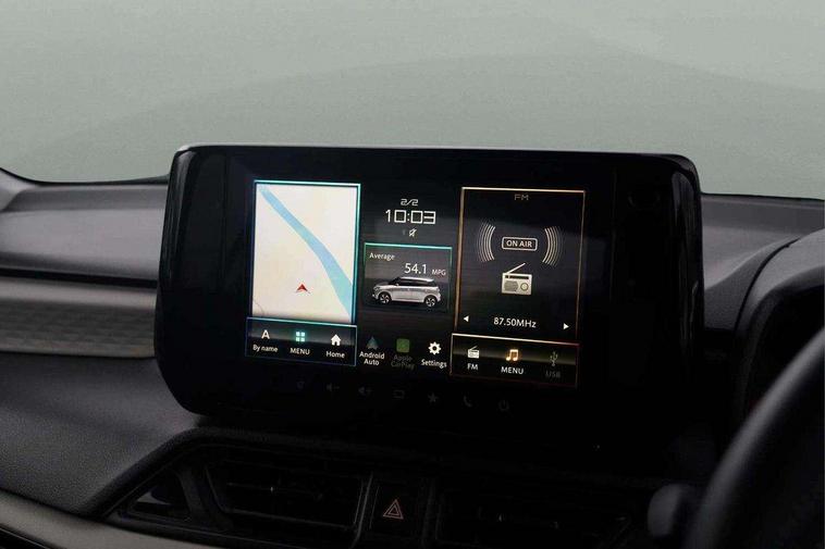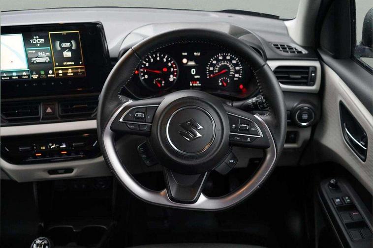 Adaptive cruise control, Automatic start/stop system, Blind spot monitoring, Colour LCD information display, Digital clock, Driver monitoring system, eCall, Fuel consumption display (average/instantaneous) and range display, Intelligent speed control support, Lane departure prevention, Lane departure warning system, Lane keeping assist (LKA), Low fuel level warning light, Navigation system, Outside temperature display, PAS, Rear cross traffic alert, Rear parking camera, Rear parking sensors, Remote fuel cap release, Smartphone integration with Apple CarPlay and Android auto, Suzuki connect, Tailgate, Traffic sign recognition, Weaving alert, 4 speakers + 2 tweeters, 9-inch infotainment display, Auxiliary input socket, Bluetooth audio streaming, DAB Digital radio, Steering wheel audio controls, USB Type A and C, 'Guide me home' headlamps, 1 speed with intermittent rear wiper + washer, 2 speeds front wiper with intermittent + washer, Automatic headlights, Black coloured A & B pillars, Black Upper and lower front grille, Body colour door mirrors and handles, C pillar trim moulding, Electric door mirrors, Electric front windows, Electric rear windows, Green tinted glass, Heated door mirrors, High beam assist, LED daytime running lights, LED High mounted stop light, LED position lamps, LED projector headlamps, LED rear combination lamp, Manual headlamp level control, Rain sensor, Rear fog lights, Rear privacy glass, Rear side wing doors, Rear spoiler, Side spoiler, 1 cup holder in rear, 12V Accessory socket in front console, 2 cup holders in front, 2 Isofix seat anchors, 3 bench rear seats in 2nd row, 3 rear head restraints, 3 spoke leather covered steering wheel, 60/40 split rear seats, Accessory socket, Centre console storage, Centre lower box, Child seat tether anchorages x 2, Chrome handbrake release button, Chrome interior door handles, Cloth upholstery, Door pockets with bottle holder, Driver/passenger sunvisors with ticket holders + vanity mirrors, Front cabin lights, Front headrests, Front map light, Front passenger side assist grip, Glovebox, Heated front seats, Heater, Height adjustable driver's seat, Luggage area lamp, Manual air conditioning with digital control panel, Material door trim ornament, Parcel shelf, Passenger seat back pocket, Pollen filter, Single front passenger seat, Tilt adjustable steering wheel, Tilt/telescopic adjustable steering wheel, 3 point ELR seatbelts for centre seat, 3 point ELR seatbelts front and rear, ABS+EBD+Brake assist, Curtain airbags, Driver airbag, Dual sensor brake support, ESP + traction control, Front and rear seatbelt reminder, Front passenger airbag, Front passenger airbag deactivation, Front seatbelt pretensioners with force limiters, Hill hold control, Rear child proof door locks, Rear seatbelts with pre-tensioners and load limiters, Side airbags with incorporated into front seats, Tyre pressure indicator, Deadlocks, Freewheeling key cylinders, Immobiliser, Keyless entry and start, Light - on and Key in reminder, Locking wheel nuts, Remote central locking, Painted instrument panel ornament, 16" Painted alloy wheels, Emergency flat tyre repair kit,
