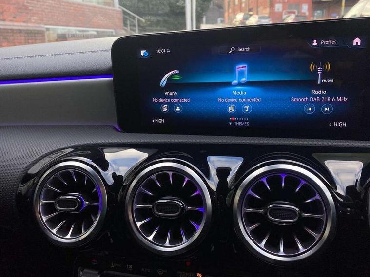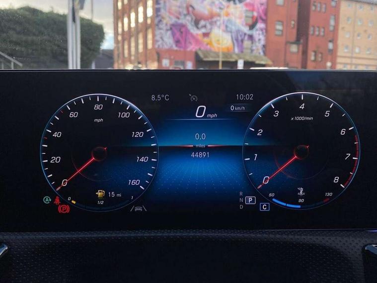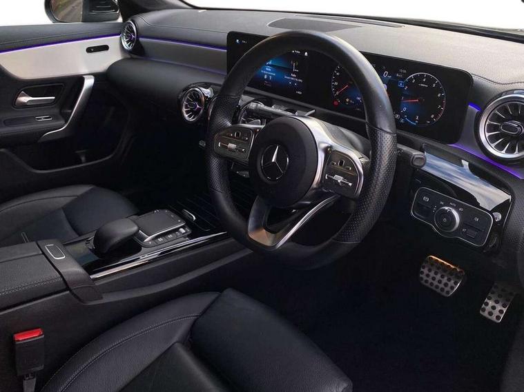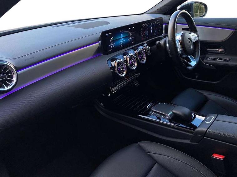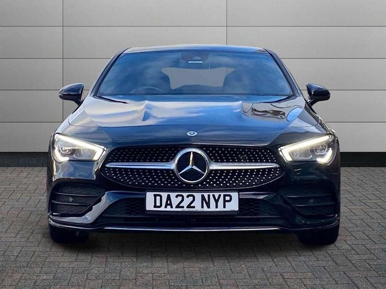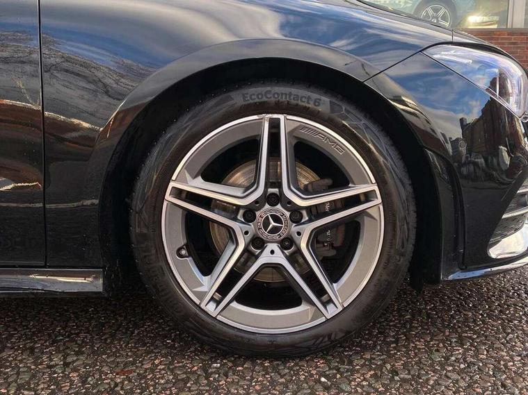 10.25 inch Instrument display with digital cockpit, 10.25 inch touchscreen central media display, Active lane keeping assist, Attention assist - Monitors steering behaviour and long journey fatigue, Bluetooth connection, Car wash mode, Cruise control with limiter, Direct steer system with speed sensitive power steering, DYNAMIC SELECT with a choice of driving modes (ECO, Comfort, Sport and Individual), ECO start/stop function, Fluid level warning indicator for fuel, oil, coolant and washer fluid, Hard-disk navigation, Hey Mercedes Voice activation, Lamp failure indicator, Mercedes me connect including emergency call system, accident recovery, breakdown and maintenance management, Mercedes me remote services, Outside temperature gauge, Owners manual and service booklet in English, Pre-installation of private car share, Preinstallation for Mercedes Benz link, Radio aerial integrated into front and rear windshields, Service indicator (ASSYST), Smartphone integration with Apple CarPlay and Android auto, Speed limit assist, Trip computer in multifunction display with current consumption indicator, Lowered comfort suspension, Rear axle multi-link, DAB digital radio tuner, MBUX multimedia system with DAB digital radio and touchpad including satellite navigation, Mid-range sound system, USB (type C) ports (2) in stowage compartment and 1 in front of centre console, Adaptive brake lights, AMG body styling with AMG front apron and visible exhaust tailpipe in chrome trim elements, AMG bodystyling side skirts, Body colour bumpers, Body colour door handles, Chrome beltline strips, Diamond radiator grille pins in chrome, Electric windows, Electrically adjustable and heated door mirrors with integrated LED indicators, Exhaust system with 2 Visible tailpipe trim elements and rear apron with trim in chrome, Headlamp assist automatic headlamp activation, Heated glass rear windscreen + timer control, High level LED third brake light, Interior mirror with black reading lamps and frameless, LED high performance headlamps with integrated LED daytime running lights, LED tail lamp, Privacy glass with dark tinting on rear side windows and rear window, Rain sensing windscreen wipers with two sensitivity settings, Rear boot, Rear fog lamp, Rear side wing doors, Window line trim strip in chrome, 3 seat bench in 2nd row, 3 spoke flattened bottom nappa leather multifunction steering wheel with perforated leather in grip area, 40:20:40 split folding rear seat backrests, Air conditioning - Two zone thermotronic luxury automatic climate control with display, Air vents with surround in silver chrome, Automatic child seat recognition sensor, Black roof lining, Brushed stainless steel sports pedals with rubber studs, Floor mats with stitched AMG lettering, Front centre armrest with stowage, Galvanished gear shift paddles on steering wheel, Heated front seats, Illuminated front door sills with changeable cover, Illuminated glove compartment stowage, Interior lighting - 64 colour Ambient lighting, Luggage net on driver/front passenger seat backrest, Manually adjustable front seats, Manually height and reach adjustable steering column, Rear armrest with two integral cup holders for drinks, Rear head restraints, Single front passenger seat, Sport seats with fixed head restraints, Stowage compartment in centre console with retractable cover, Sunvisors with illuminated vanity mirrors, Touchpad on center console, Twin front cupholders, Two outer rear seat isofix and top tether child seat fixing points, Keyless go pack - CLA, Light and sight pack - CLA, Mirror pack - CLA, Night package - CLA, Parking package - CLA, Seat comfort pack - CLA, Active bonnet pedestrain safety measure which detects an impact and raises bonnet by 65mm, Active brake assist includes forward collision warning system with autonomous braking, Adaptive brake assist with hold function and hill start assist, Anti-lock braking system (ABS), Black seat belts, Bonnet with power domes, Brake pad wear warning indicator, Childproof locks manually operated for rear doors and electrically operated for rear power windows, Crash responsive emergency lighting, Driver and front passenger head and sidebags, Driver and front passenger windowbags, Drivers knee airbag, Dual stage driver and front passenger airbags, Electric parking brake, Electronic stability programme with acceleration skid control, ESP curve dynamic assist, Front and rear seatbelt reminder, Front passenger seat occupancy sensor, Three point rear seat belts, Tyre pressure monitoring system, Warning triangle and first aid kit, Remote central locking and crash sensor with emergency opening function, Urban guard vehicle protection system with immobiliser and interior protection, Light aluminium with longitudinal grain interior trim, 18" AMG 5 twin spoke light alloy wheels painted in black with high sheen finish, Summer tyres, Tirefit tyre sealant kit,