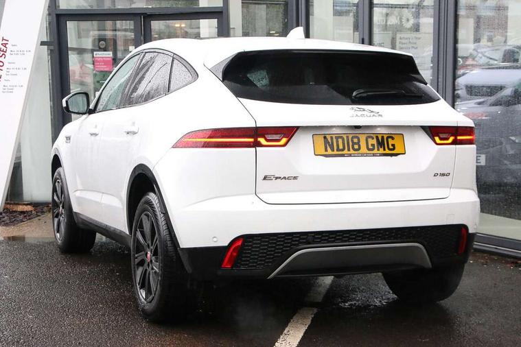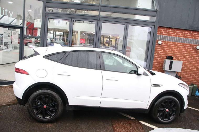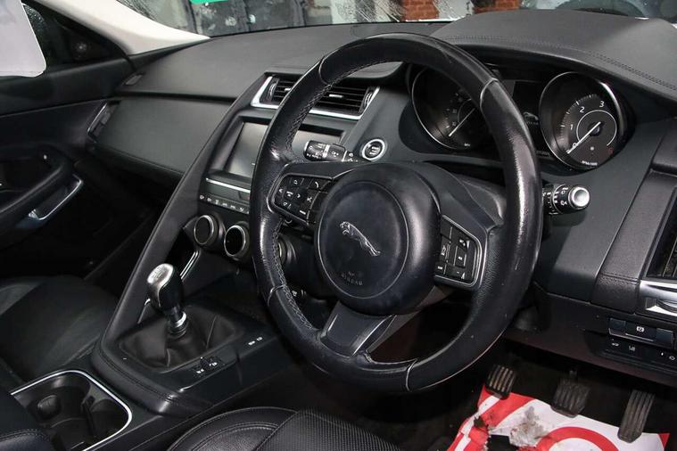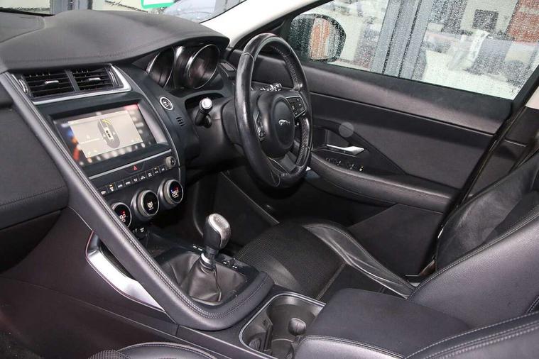 Cruise control, Driver condition monitor, EPAS, InControl Touch navigation pro, Lane keep assist, Outside temperature gauge, Push button starter, Traffic sign recognition with adaptive speed limiter, Trip computer, Voice control system, Diesel particulate filter, AM/FM DVD MP3 radio, Bluetooth connectivity including audio streaming, DAB Digital radio, Dynamic volume control, Approach Illumination, Auto dimming rear view mirror, Automatic headlights, Body colour bumpers, Electric front/rear windows with one touch/auto up/down, Grained black door claddings, Heated front windscreen, Heated rear window with timer, Heated washer jets, Rain sensor windscreen wipers, Tailgate spoiler, 12V power socket in rear, 2nd row 60/40 split/fold, 2nd row air vents, 3 seat bench in 2nd row, Centre armrest console, Centre headrest in row 2, Dual zone automatic climate control, Front head restraints, ISOFIX on outer rear seats, JaguarDrive selector, LED lighting in overhead console, Loadspace cover, Loadspace lamp, Storage net in luggage compartment, Sunvisors with illuminated vanity mirrors, Tie down hooks in luggage area, Twin front covered cupholders, Connect pro pack - E-Pace, Parking pack - E-Pace, Smartphone pack - E-Pace, 3x3 point rear seatbelts, ABS, Driver/Front Passenger airbags, DSC - Dynamic Stability Control, Electronic brake force distribution, Electronic parking brake, Emergency brake assist, Front and rear curtain airbags, Front and rear seatbelt reminder, Front passenger seat occupancy sensor, Front side airbags, Hill start assist, Power child locks, Tyre pressure monitoring system, Intrusion sensor and alarm, Locking wheel nuts,