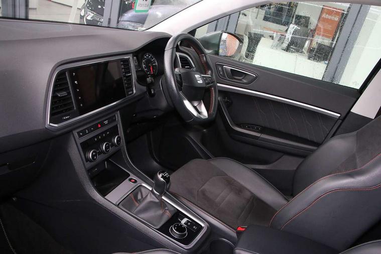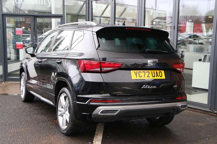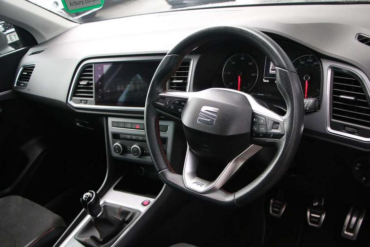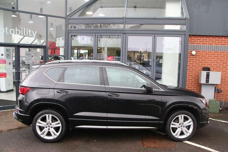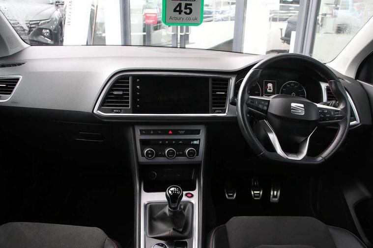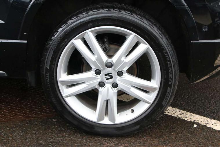 8" Digital cockpit, Colour multi-function on board computer display, Cruise control system with speed limiter, E-call, Outside temperature gauge, Progressive power assisted steering, SEAT drive profile with driving experience button - Normal, Sport, Eco and Individual mode, steering and throttle response, Self parking functionality (includes front and rear parking sensors), Start/stop system, Tailgate, Trip computer, Wireless full link smartphone integration, Wireless phone charger, Steering wheel mounted audio/phone controls, Body colour bumpers, Body coloured wheel arch surrounds, Chrome front grille frame, Chrome roof rails, Chrome side window trim, Dark tinted rear windows, Daytime running lights, Door mirrors with welcome light silhouette, Dynamic headlight range control with self adjusting whilst driving, Electric adjustable/heated/folding door mirrors, Front and rear electric windows, Full LED headlamps with lens and LED front fog lamps with cornering function, Illuminated aluminium front door sill, LED rear tail lights with dynamic indicators, Rear fog lights, Rear side wing doors, Rear wash/wipe, Simulated exhaust pipes in chrome frame, Third brake light, Variable front intermittent wipers, 12V socket in front, 3 seat bench in 2nd row, 60/40 split folding rear seat, Aluminium pedals, Drawer under right front seat, Dual zone climate control, Front and rear head restraints, Front centre armrest, Front seat back storage pockets, Height adjustable driver and passenger seat with lumbar adjustment, ISOFIX points in outer rear seats with top tether anchorage points, Leather steering wheel and gear knob, Microsuede upholstery with front comfort seats, Rear armrest and easy back seat release mechanism from boot, Single front passenger seat, Convenience pack - Ateca, Interior lighting pack - Ateca, Navigation system pack with DAB - Ateca, 3x3 point rear seatbelts, ABS, Traction control system (TCS), Electronic stability control (ESC) and Electronic differential lock system (XDS), Airbags - Driver and front passenger airbag with deactivation, front side, two curtain and driver's knee airbags, Electric parking brake with auto hold function, Front and rear seatbelt reminder, Front assist with autonomous emergency braking, Hill hold control, Manual rear child locks, Single tone horn, Tiredness recognition system, Traction control, Tyre pressure monitoring system, Alarm, Keyless entry, Locking wheel bolts, Remote central locking, Chrome interior detailing, 18" Brillaint silver alloy wheels,
