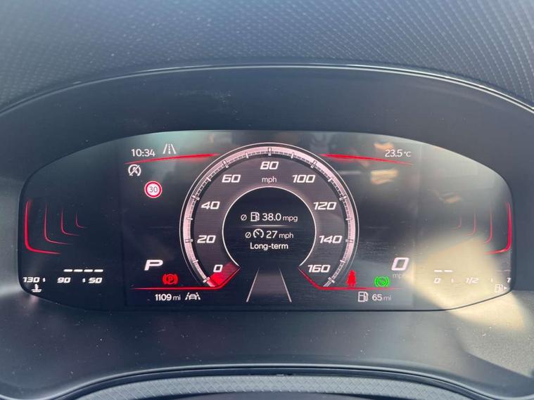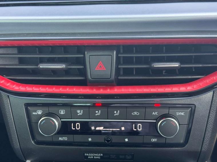 'Lights On' Reminder warning buzzer, 8" Digital cockpit, Digital clock, E-call, Electric speed sensitive power steering, Full link smartphone integration with mirror link, wireless apple carplay, Google android auto + USB Type C cable for apple and android devices, Lane keeping system, Low fuel warning light, Outside temperature display, RPM counter, SEAT Drive profile - Four different models normal-sport-eco-individual, steering response, throttle response and gear shifts mode, Trip computer, Wireless phone charger, 6 speakers, 9.2" colour touchscreen with navigation system, voice control and USB port (type c), Bluetooth interface for hands free and audio streaming, DAB digital radio and AM/FM radio, Steering wheel mounted audio controls, Anti theft roof antenna, Auto dimming interior rear view mirror, Automatic activation of hazard warning lights, Body coloured bumpers, Body coloured door handle inserts, Chrome roof rails and window surrounds, Dark tinted rear windows, Electric front/rear windows, Electrically adjustable, heated and folding door mirrors, Front fog lights with cornering function and rear fog light, FULL LED automatic headlights with dynamic headlight range control, coming and leaving home, LED daytime running lights, LED rear tail lights and licence plate lights, Protective side mouldings, Rain sensing wipers, Rear side wing doors, Rear spoiler, Rear window wash/wipe, Roof colour door mirrors, Third brake light, Twin exhaust pipe styling hidden exhaust pipe, Visible VIN plate, 2 cupholders, 3 seat bench in 2nd row, 60/40 split folding rear seat, Aircare filter, Black interior roof, Cloth upholstery, Double boot floor, Driver sunvisor with covered mirror + card holder, Dual zone climate control, Front courtesy light with front reading lights, Gear shift indicator, Height adjustable front seats, Height/reach adjustable steering column, Illuminated air vent surrounds, Illuminated boot, Instrument lighting with brightness control, Interior ambient lighting, Interior light in footwell, central console and door panel, ISOFIX points in outer rear seats with top tether anchorage points, Passenger sunvisor with vanity mirror, Perforated flat bottomed leather steering wheel/gear knob/handbrake with red stitching and FR logo, Potentiometer, Single front passenger seat, Steering wheel mounted gearshift paddles, Two front and three rear height adjustable headrests, Interior chrome pack - Arona, Safe and driving pack (S) - Arona, 3 point seatbelts on all rear seats, ABS, Active front headrests, Child locks on rear doors, Driver and front passenger airbags with front passenger airbag de activation, front side and curtain airbags, Emergency Brake Assist (EBA) and front assist, Front and rear seatbelt reminder, Hill hold control, Multi-Collision braking, Tiredness recognition system, Traction control, Tyre pressure monitoring system, Alarm with back up horn with tow away protection, Deadlock, Electronic engine immobiliser, Locking wheel bolts, Remote central locking, Titan black dashboard, 17" Dynamic alloy wheels,