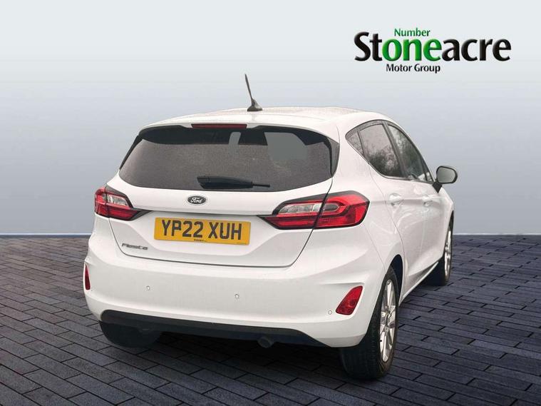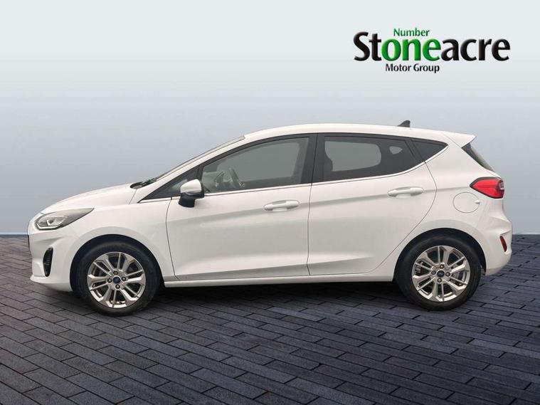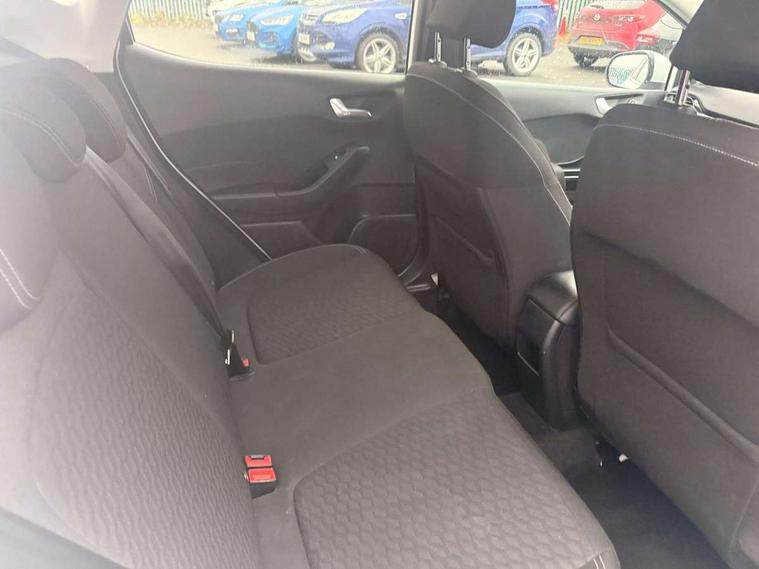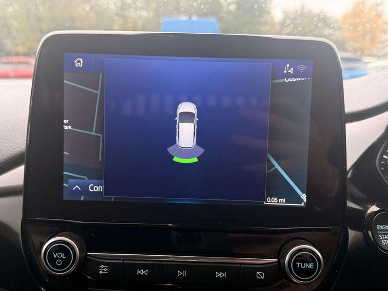 4.2" Colour TFT Ice blue illumination analogue cluster, Driver alert system, Electric power steering, Ford easy fuel, Ford SYNC 3 Nav with DAB radio, 8" touch screen, voice control, emergency assist, Apple CarPlay/Android auto, 2x USB, 6 speaker, Ford pass connect, Rear parking distance sensors, Selectable drive modes (Normal, Sport, Track), Speed sign recognition, Trip computer, Standard suspension, 3rd brake light, Auto high beam, Body colour bumpers, Body coloured electrically operated with side indicators, Electric front windows/one touch facility, Grey air vent inserts, High gloss chrome surround with satin grille insert, Quickclear heated windscreen, Rain sensing wipers and auto dimming rear view mirror, Rear privacy glass, Rear side wing doors, Rear wiper, 3 seat bench in 2nd row, Adjustable head restraints, Centre console with opening armrest, 2x cupholders, 12v and USB, Cloth upholstery with metal grey stitching, Front floor mats in velour, Leather gaiter, Manual 2 way passenger seat adjust, Manual 4-way driver seat adjust, Manual air conditioning, Sensico wrapped steering wheel, Single front passenger seat, NCAP Pack - Fiesta, 3 point seatbelts on all rear seats, Electronic stability control with hill start assist, Manual child lock in rear doors, Tyre pressure monitoring system, Keyless start with 'Ford Power' starter button, MyKey system, Remote central locking, Thatcham alarm with power door dead locks,