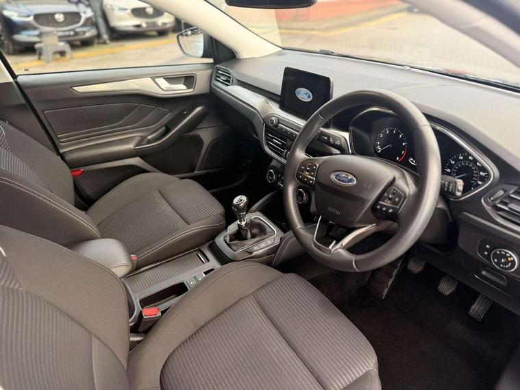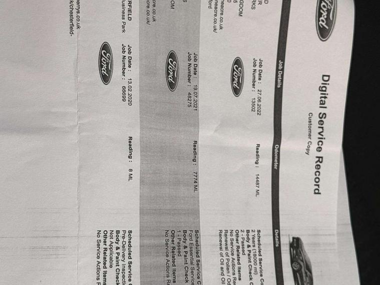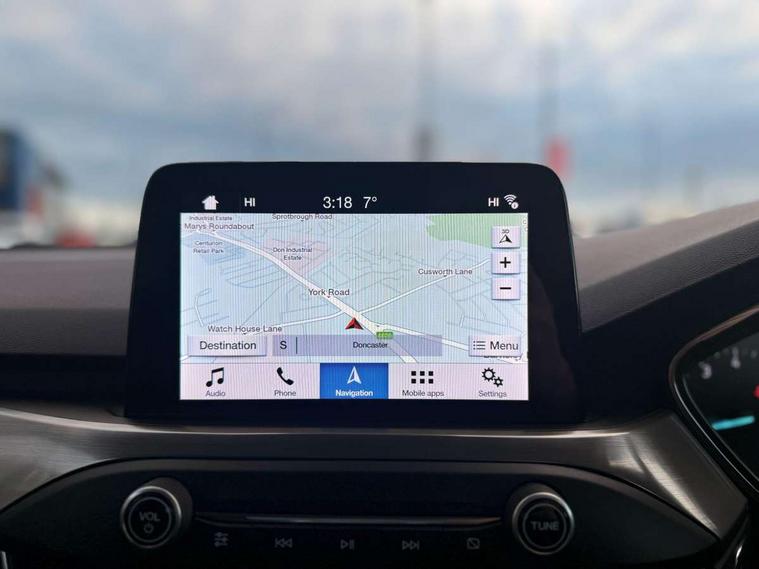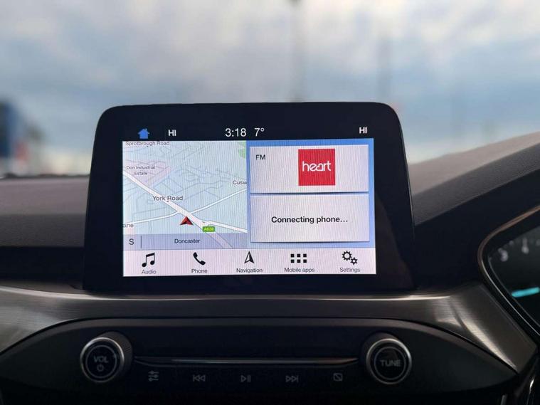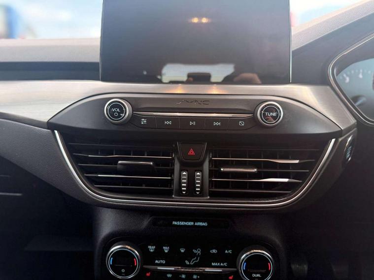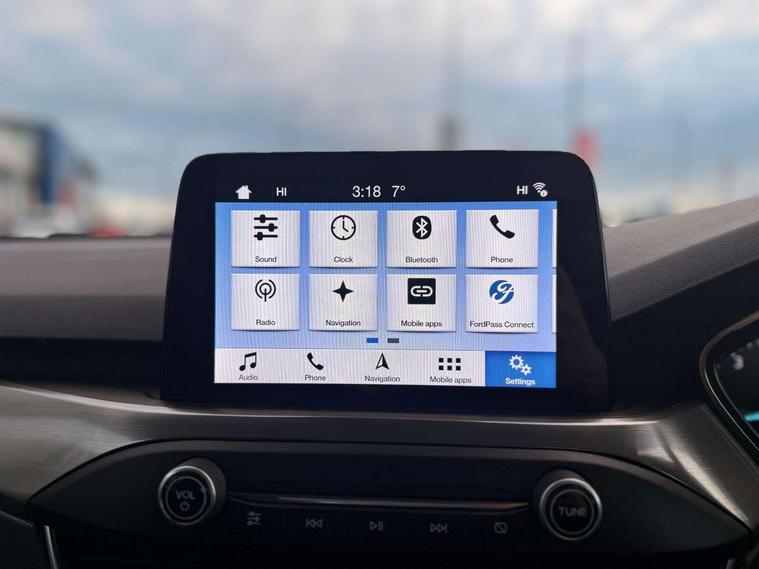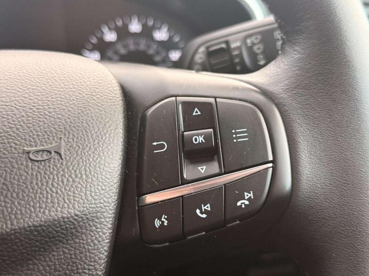 Bluetooth system, Digital clock, Easy fuel capless refuelling system, Eco mode, Ford pass connect, Ford SYNC 3 nav system with DAB radio, 8" colour touch screen, voice control, app link, Apple car play/Android auto and 4.2" TFT coloured cluster, Front and rear parking sensors, Intelligent speed assist, Lane keeping aid with lane departure warning, PAS, Selectable drive mode, Trip computer, 2 USB ports, Aux input, 'Quickclear' heated windscreen/heated washer jets, Auto dimming rear view mirror, Auto headlamps (on/off), Automatic rain sensing wipers, Body coloured bumpers, Body coloured door handles, Body coloured electrically operated and heated door mirrors with side indicators, Electrically operated front and rear windows with one touch opening and closing, Front fog lamps with cornering function, Front variable intermittent wipers with electric wash, Halogen reflector headlamps, Heated rear window, LED daytime running lamp, LED rear lamps, Power folding door mirrors with puddle lights, Tailgate wash/wipe, Upper grille with chrome surround and horizontal bars, 3 spoke leather trimmed steering wheel with integrated audio controls, 60/40 split back and cushion rear seats with 2 height adjustable headrests, Ambient lighting, Centre console with sliding front armrest, Cloth upholstery, Dual zone electronic air temperature control, Front/rear floor mats, Heated front seats, Height adjustable front headrests, Isofix child seat preparation, Leather gear knob, Reach + rake adjustable steering column, Rear centre headrest, ABS+Electronic Brake force Distribution, Auto hold function, Driver airbag, Electronic parking brake, Electronic stability control, Front and rear seatbelt reminder, Front inertia reel height adjustable seatbelts with pre-tensioners, Front passenger airbag, Front side airbags, Hill start assist, Passenger airbag deactivate switch, Post collision braking, Pre collision assist with autonomous emergency braking and pedestrian/cyclist detection, Side curtain airbags, Three rear inertia reel lap/diagonal seatbelts, Tyre pressure monitoring system, Ford keyfree system with Keyless entry and keyless start, MyKey system, Remote central locking & engine immobiliser, Thatcham category 1 alarm, 16" 15 spoke sparkle silver alloy wheels, Mini steel spare wheel,