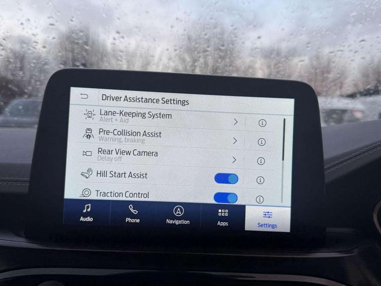 12.3" digital colour instrument cluster, Ford easy fuel, Ford SYNC 3 with 8" TFT LCD touchscreen, App Link, andriod auto/apple carPlay, emergency assistance and navigation with Ford pass connect, Front and rear parking sensors, Hands free power tailgate, Lane keeping aid with lane departure warning, Power assist steering, Rear view camera, Selectable drive modes, Service interval indicator, Standard suspension, Twist beam rear suspension, B&O premium audio system with 10 speakers and subwoofer, 2 USB ports, DAB radio/CD, Auto dimming rear view mirror, Auto headlamps with high and low beam, Body colour bumpers, Front and rear vignale fascia, Front LED fog lamps, LED daytime running lights, LED rear lights, Memory functionality with door mirrors, Power folding, electrically adjustable and heated door mirrors with puddle lights, Power front/rear windows with global close, Quickclear heated windscreen, Rain sensing wipers, Rear privacy glass, Rear side wing doors, Rear spoiler, Rear wiper, Silver roof rails, Third brake light, Twin exhausts, Vignale body styling kit, Vignale front scuff plates, Vignale rear diffuser, 10 way power adjustable drivers seat with memory function, 2nd row sliding seats with 60:40 split, 8 way manual passenger seat including lumbar support and height adjust, Ambient lighting, Centre console with electronic parking brake, Electronic automatic temperature control (EATC), Front and rear head restraints, Heated passenger and driver seats, Heated rear seats, Heated steering wheel, Rear centre head restraint, Single front passenger seat, Vignale front and rear mats, Vignale premium touch sensico steering wheel, Vignale seating with premium leather upholstery, 3x3 point rear seatbelts, Airbags - front driver/passenger, front and rear curtain, Drivers knee airbag, Electronic stability control (ESC) and ABS, Ford MyKey Gen 2 safety system, Manual child proof rear door locks, Post collision braking, Pre collision assist with autonomous emergency braking, Rear seat Occupancy alert, Tyre pressure monitoring system, Engine immobiliser, Keyless entry and Ford power start button (Keyless start), Locking wheel nuts, Remote powered central double locking doors, Thatcham category 1 alarm, Leather wrapped instrument panel, 19" 5x2 spoke luster nickel alloy wheels,