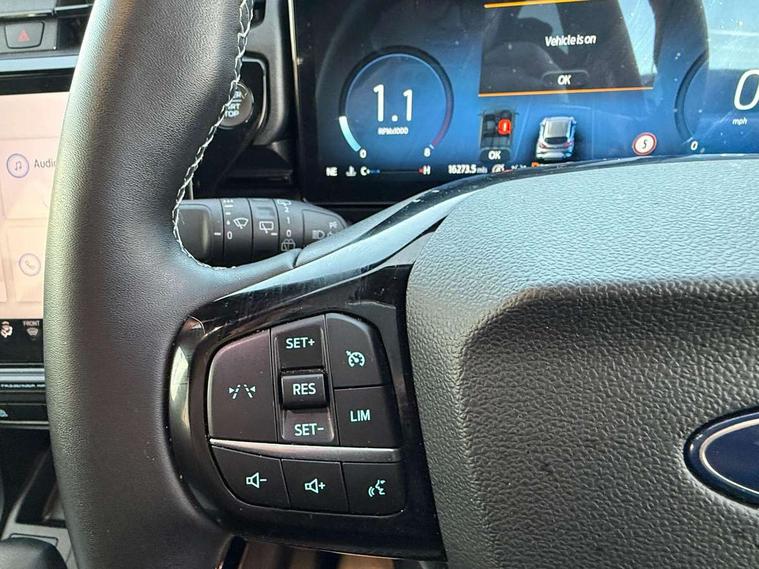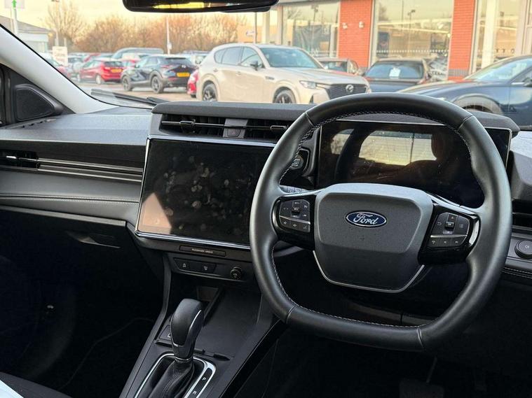 Driver impairment monitor, Emergency call service, Ford easy fuel, Full digital 12.8" instrument cluster, Lane keeping aid with lane departure warning, Power assist steering, Selectable drive modes(Normal, sport, Eco, trail, slippery), Speed sign recognition, Standard suspension, 12" landscape touchscreen display with wireless apple car play and android auto 6 speaker audio system, Ford pass connect and emergency assistance, Ford SYNC4 with connected navigation, Automatic headlights with rain sensing wipers and auto high beam, Front fog lamps, LED daytime running lights, LED rear lamps, LED third brake light, Quickclear heated windscreen, Rear privacy glass, Rear side wing doors, Rear wiper, 3 seat bench in 2nd row, Centre console with armrest and stowage, Electronic automatic temperature control (EATC), Ford megabox extended bootspace, Front and rear head restraints, Front floor mats, Manual 4 way driver seat adjust with lumbar adjustment, Single front passenger seat, Titanium cloth upholstery, 3 rear seatbelts, Child safety lock, Electronic stability control (ESC) and hill start assist, Pre-collision assist with autonomous emergency braking, pedestrian/cyclist detection & post-collision braking, Tyre pressure monitoring system (TPMS), Thatcham alarm, 17" Absolute black machined finish alloy wheel,