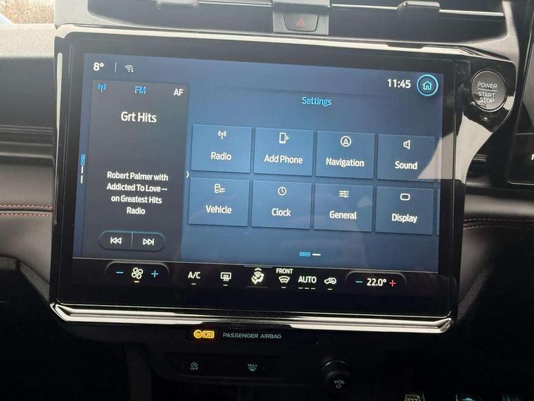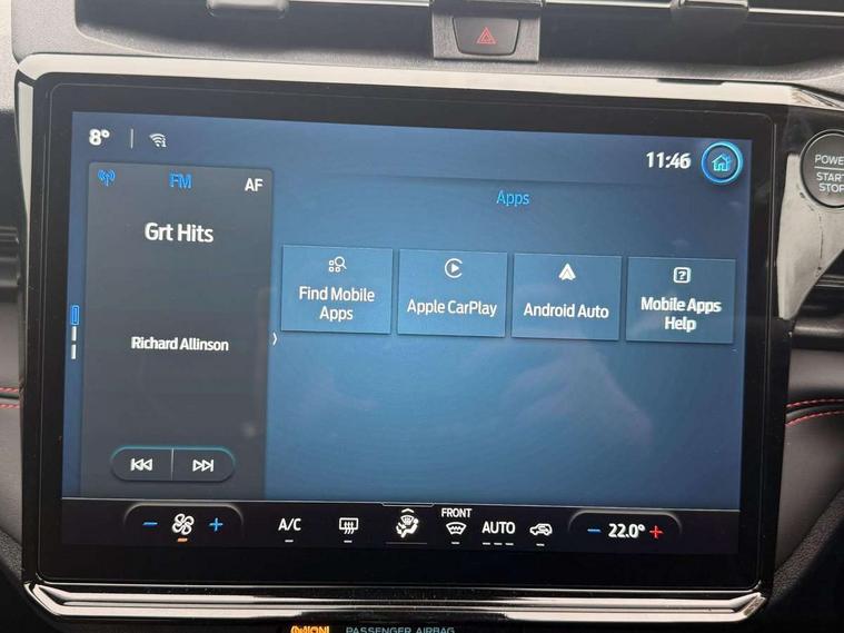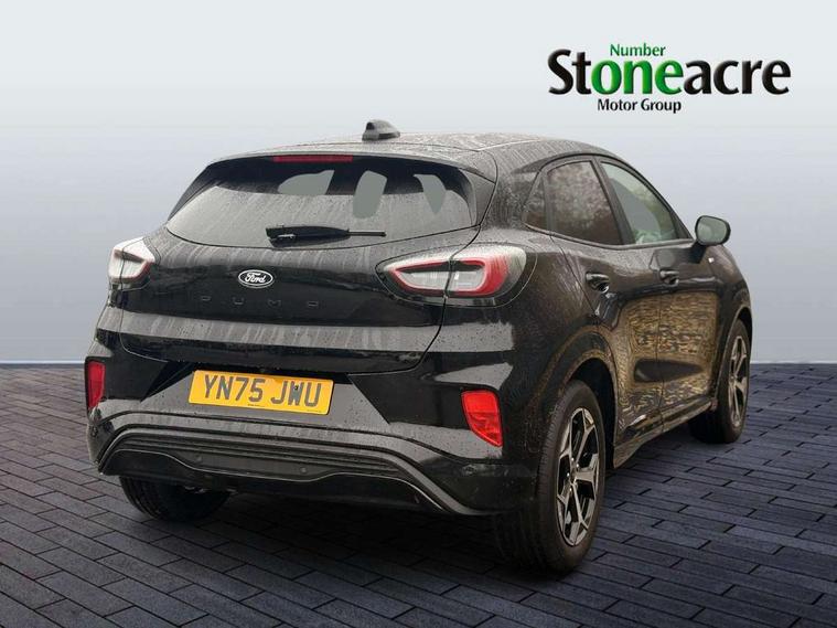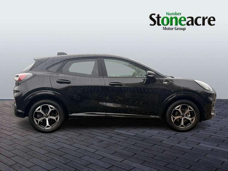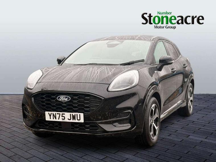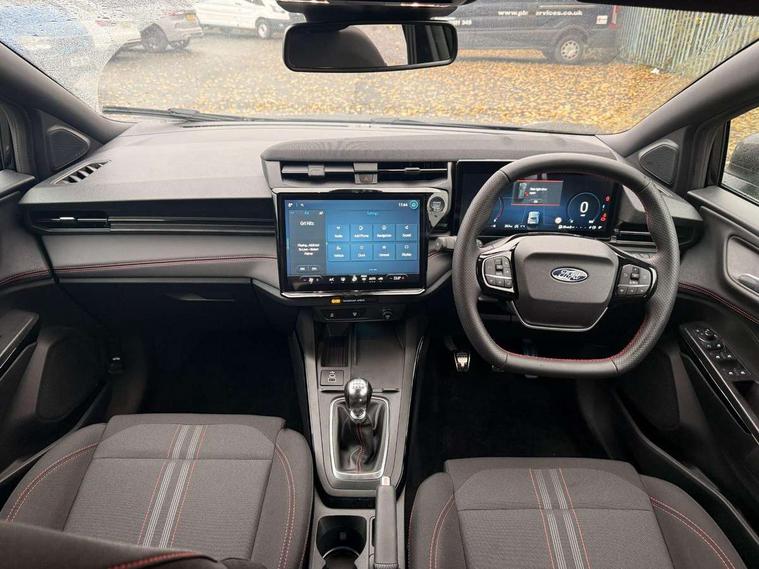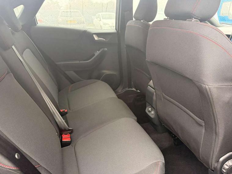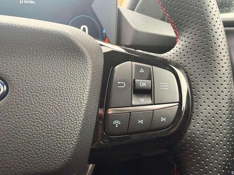 Driver impairment monitor, Emergency call service, Ford easy fuel, Full digital 12.8" instrument cluster, Lane keeping aid with lane departure warning, Power assist steering, Selectable drive modes(Normal, Eco, Sport, Slippery and Trail), Speed sign recognition, Sport suspension, 12" landscape touchscreen display with wireless apple car play and android auto 6 speaker audio system, Ford pass connect and emergency assistance, Ford SYNC4 with connected navigation, Automatic headlights with rain sensing wipers and auto high beam, Front fog lamps, LED daytime running lights, LED rear lamps, LED third brake light, Power foldable heated door mirrors with puddle lamps and puma logo protection, Quickclear heated windscreen, Rear privacy glass, Rear side wing doors, Rear wiper, ST-Line body styling kit with unique grille, 3 seat bench in 2nd row, Centre console with armrest and stowage, Electronic automatic temperature control (EATC), Ford megabox extended bootspace, Front and rear head restraints, Front floor mats, Manual 4 way driver seat adjust with lumbar adjustment, Single front passenger seat, ST- Line cloth trim with red stitching, 3 rear seatbelts, Child safety lock, Electronic stability control (ESC) and hill start assist, Pre-collision assist with autonomous emergency braking, pedestrian/cyclist detection & post-collision braking, Tyre pressure monitoring system (TPMS), Thatcham alarm,