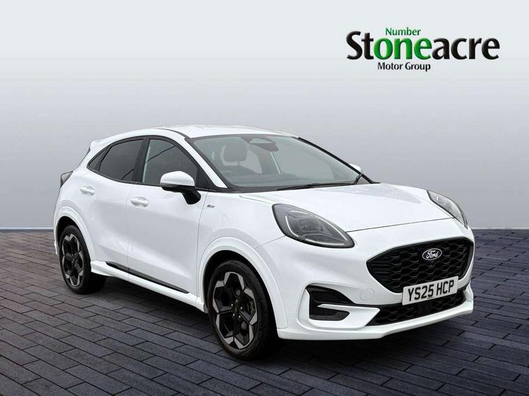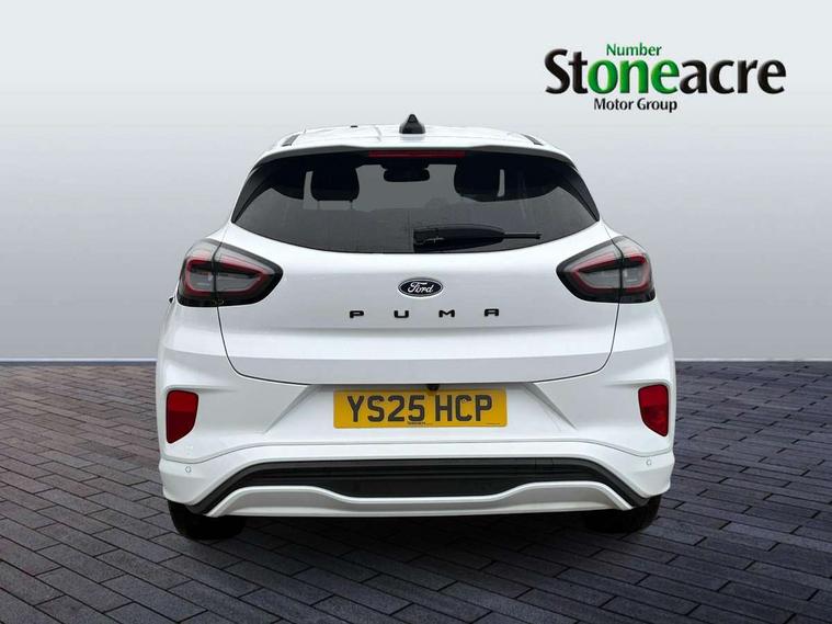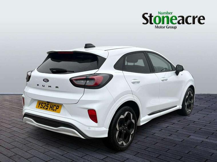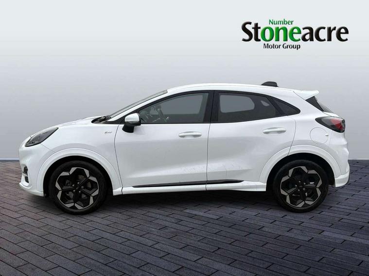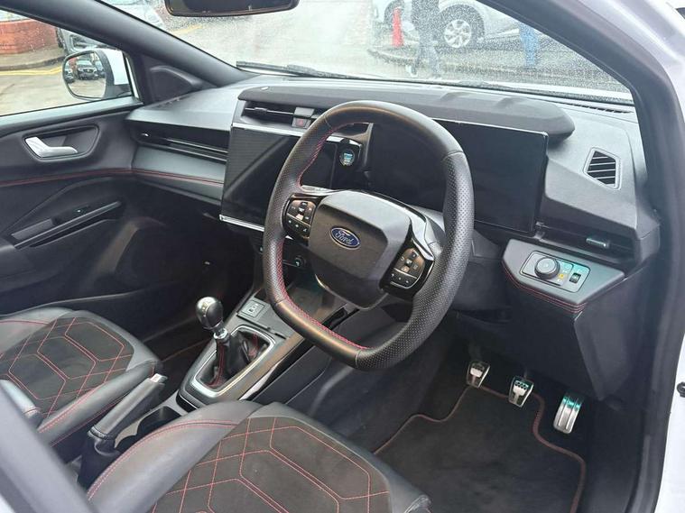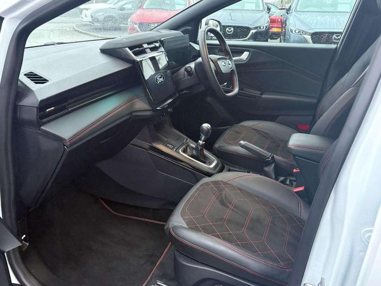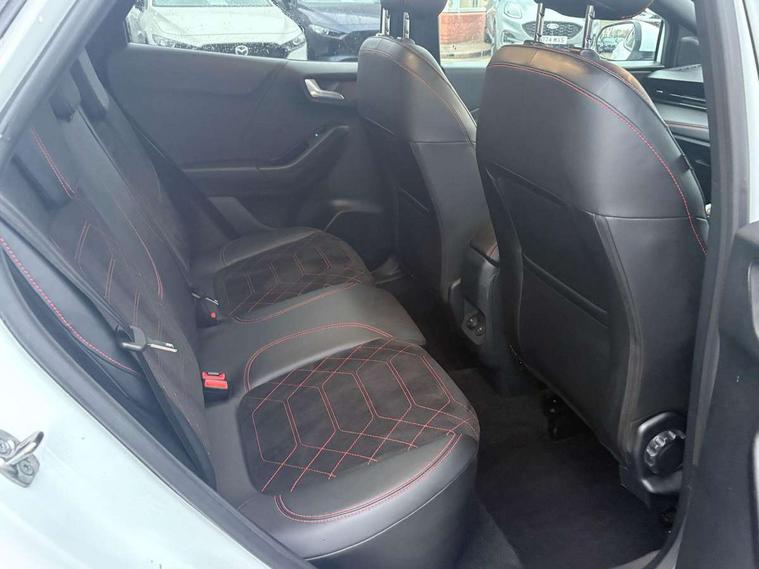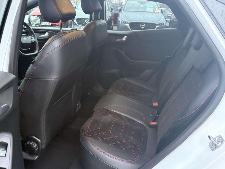 Driver impairment monitor, Emergency call service, Ford easy fuel, Full digital 12.8" instrument cluster, Lane keeping aid with lane departure warning, Power assist steering, Selectable drive modes(Normal, Eco, Sport, Slippery and Trail), Speed sign recognition, Wireless charging, Sport suspension, 12" landscape touchscreen display with wireless apple car play and android auto premium B&O audio system with 10 speakers, Ford pass connect and emergency assistance, Ford SYNC4 with connected navigation, Automatic headlights with rain sensing wipers and auto high beam, Front fog lamps, LED daytime running lights, LED rear lamps, LED third brake light, Power foldable heated door mirrors with puddle lamps and puma logo protection, Quickclear heated windscreen, Rear privacy glass, Rear side wing doors, Rear wiper, ST-Line X body styling kit, 3 seat bench in 2nd row, 4 way lumbar support for passenger seat, Centre console with armrest and stowage, Electronic automatic temperature control (EATC), Ford megabox extended bootspace, Front and rear head restraints, Front floor mats, Manual 4 way driver seat adjust with lumbar adjustment, Single front passenger seat, ST-Line X Premium synthetic leather upholstery, Comfort pack with power lift tailgate - Puma, 3 rear seatbelts, Child safety lock, Electronic stability control (ESC) and hill start assist, Pre-collision assist with autonomous emergency braking, pedestrian/cyclist detection & post-collision braking, Tyre pressure monitoring system (TPMS), Thatcham alarm,
