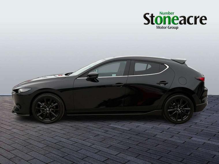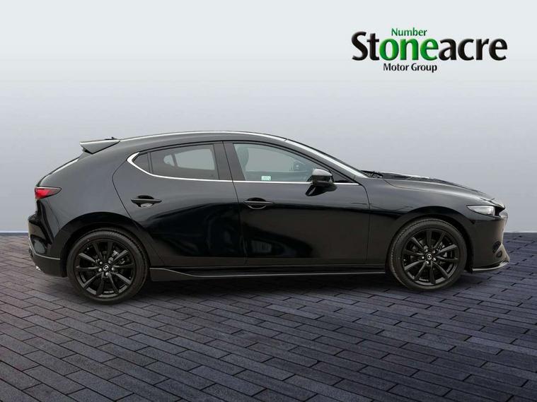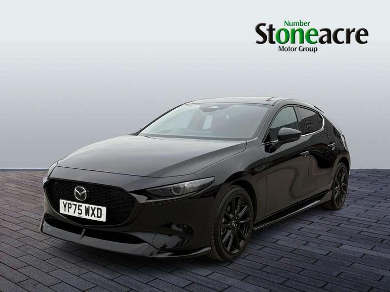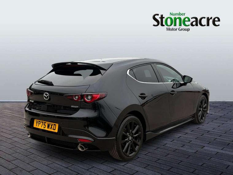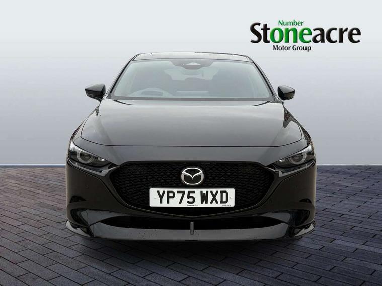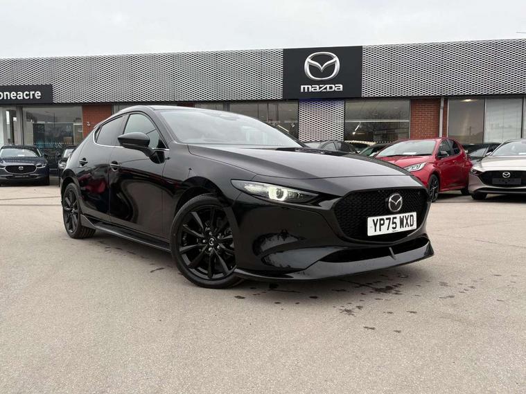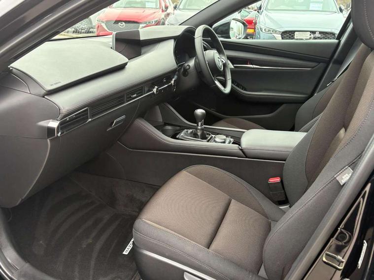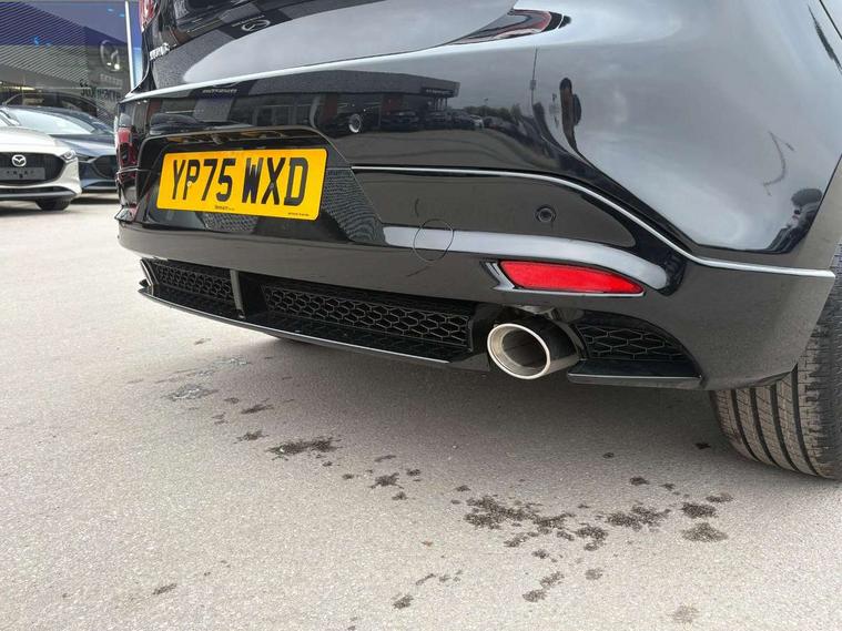10.25" display with Mazda Connect infotainment, 7" colour TFT display, Adjustable speed limiter, Advanced E-call with GPS, Alexa in-car voice assistant, Audio transfer from bluetooth devices, Blind spot monitoring with rear cross traffic alert, Car finder, Colour active driving display inc Windscreen projected, Traffic Sign Recognition, turn-by- turn navigation and Mazda Radar Cruise Control information, Digital instrument cluster, Driver attention alert system, Emergency stop signalling system, Engine start/stop button, Front and rear parking sensor with audible and visual warning, Head up Display, Integrated bluetooth with steering wheel mounted controls, Intelligent speed assist, Lane keep assist system (LAS) with Lane departure warning system (LDWS), Mazda connected services, Mazda Navigation System with european mapping, Mazda Radar Cruise Control, Mobile App interface, Multimedia Commander, PAS, Qi wireless charging, Reversing camera, Service indicator, Tailgate, Traffic sign recognition (TSR), Trip computer, Wireless Apple CarPlay/Android Auto, i-stop, 2 USB-C ports in the front, Mazda Multimedia System with AM / FM / DAB radio with 12 Speaker Bose sound system, bose centerpoint, bassmatch+audiopilot technology, Adaptive LED Headlights, Auto dimming driver's door mirrors, B-pillar garnish in piano black, Body coloured door mirrors, Coming/leaving home lighting function, Dark metallic finish signature wing, Dual chrome tailpipes tip, Dusk sensing headlights, Electric front/rear windows with one touch/auto up/down, Electrically adjustable, heated auto power folding door mirrors, Frameless auto dimming interior rear view mirror, Front body coloured bumper with black lower bezel, Front kodo turn signal, Gloss black finish front grille, Gloss black rear roof spoiler, LED auto headlight levelling, LED indicator lights, LED third brake light, Power tilt and slide sunroof, Privacy glass with dark tinting on rear side windows and rear window, Rain sensing front wipers with adjustable sensitivity and speed, Rear colour coded bumper with gloss black lower moulding, Rear fog lights, Rear side wing doors, Signature LED daytime running lights, Signature LED rear combination lights, Speed adjustable rear wash wiper with intermittent wipe, 12v electrical power outlet, 3 seat bench in 2nd row, 60/40 split fold down rear seats, Chrome interior trim accents with steering wheel centre bezel, surround of engine start / stop button and glove box handle, Cloth upholstery, Dark cloth door panel inserts, Dark roof headlining, ceiling and pillars, Driver seat manual slide, recline, height and seat tilt adjust, Driver, front passenger and two rear door pockets, Driver, Front passenger and two rear grab handles with coathooks, Driver/passenger sunvisors + vanity mirrors (drivers side with ticket holder), Dual zone climate control air conditioning, Folding rear centre armrest with two cup holders, Front and rear courtesy lamps, Front armrest, Front centre storage with two cupholders, Front head restraints, Front passenger seatback pocket, Front passengers seat manual slide, recline and height adjustment, Gear shift indicator, Heated front seats with 3 stage setting, Illuminated glovebox, Interior colouration dashboard and doorcards in black with dark stitching, ISOFIX child seat anchorage points attached on outer rear seats, Leather wrapped gear shift knob, Leather wrapped steering wheel, LED interior light, LED light in luggage compartment, Power outlet in luggage compartment, Roof mounted sunglasses holder, Single front passenger seat, Three height adjustable rear head restraints, Tilt/height adjustable steering wheel, 3 point ELR front seatbelts with pretensioners, 3 rear 3 point seatbelts with ELR, Anti-lock braking system (ABS), Drivers knee airbag, DSC - Dynamic Stability Control, Dual stage driver and single stage passenger airbags, EBD - Electronic brakeforce distribution, Electronic parking brake with auto disengage function and auto hold function, Front and rear curtain airbags, Front passenger airbag cut-off switch, Front side airbags, Front smart city brake support, G-Vectoring control plus, Hill launch assist, Intelligent Traction Control system, Manual child lock in rear doors, Mild Hybrid system with regenerative braking, Seatbelt reminder audible warning for driver, passenger and rear seats, Tyre pressure monitoring system (TPMS), Auto door lock when driving, Remote central locking + deadlocks, Smart keyless entry, Thatcham accredited alarm and immobiliser, 18" Black alloy wheels, Emergency tyre repair kit,