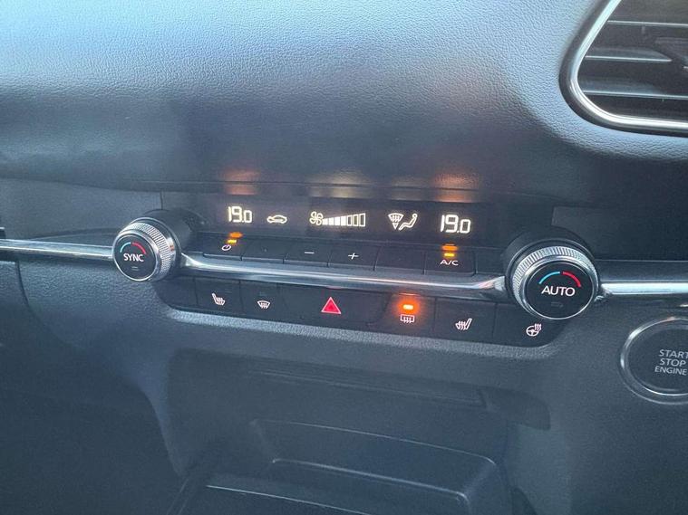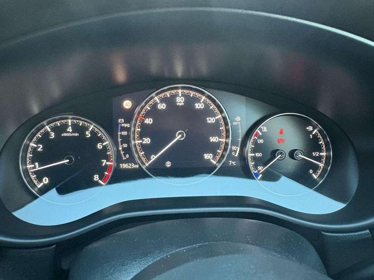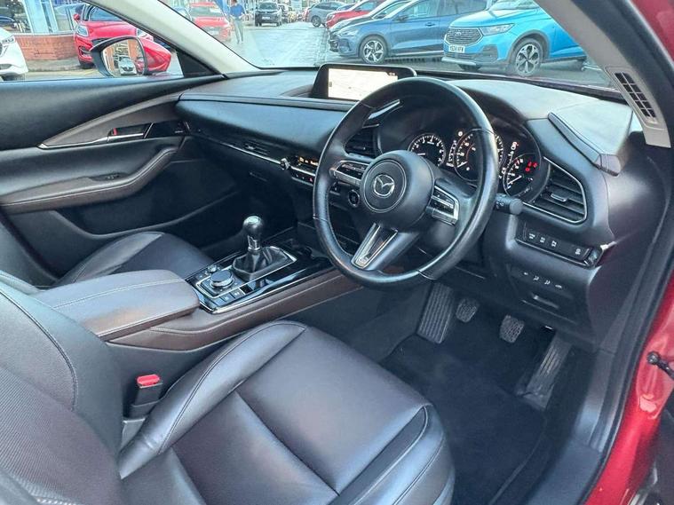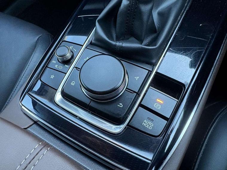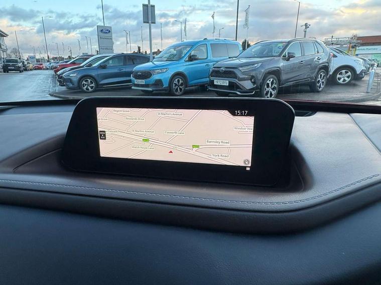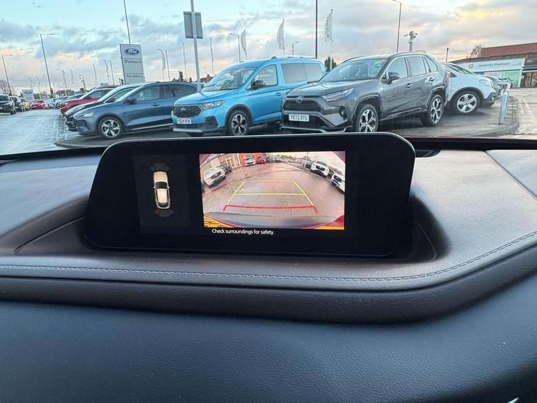 7" TFT Colour driver instrument panel display, 8.8" Colour centre touch screen display with Mazda Connect infotainment, Adaptive cruise control (Mazda radar cruise control), Apple car play/Android Auto, Blind spot monitoring with rear cross traffic alert, Driver attention alert system, E-call with GPS, Emergency stop signalling system, Engine start/stop button, Front and rear parking sensors, Integrated bluetooth, Integrated Mazda navigation system, Intelligent speed assist, Lane keep assist system (LAS) with Lane departure warning system (LDWS), Mazda connected services, PAS, Power lift gate, Reversing camera, Service indicator, Tailgate, Traffic sign recognition, Trip computer, Windscreen projected colour active driving display (HUD), Cylinder Deactivation, i-stop, 2 USB charging ports in front inner central armrest, AM/FM and DAB radio, Bose surround sound system with 12 Speaker, Bose center point, Bass match and audio pilot technology, Multimedia Commander including separate volume dial, Steering wheel mounted audio/bluetooth controls, Auto dimming driver's door mirror, Auto headlight levelling, B-pillar and C-pillar garnishes in piano black finish, Body coloured, electrically adjustable, heated auto power folding door mirrors with integrated indicators, Chrome finish signature wing in front grille, Coming/leaving home lighting function, Door mirrors with adjustable memory and tilt-down function when reversing, Dual chrome exhaust, Dusk sensing headlights, Electric front/rear windows with one touch auto up/down, Frameless auto dimming interior rear view mirror, Front kodo turn signal, Gloss black front grille, Gloss black rear roof spoiler, High beam assist, LED Headlights, LED signature daytime running lights, Privacy glass (rear side windows and rear screen), Rain sensing front wipers with adjustable speed and intermittent wipe, Rear fog lights, Rear side wing doors, Rear wiper, Signature LED rear combination lights, Third brake light, 12V power outlet in centre console, 3 seat bench in 2nd row, 60/40 split fold down rear seats, Chrome horn pad ring, Chrome interior trim accents with steering wheel centre bezel, surround of engine start / stop button and glove box handle, Dashboard, door cards and front centre armrest in rich brown leather, Driver and front passenger visors with covered vanity mirror and driver ticket holder, Driver's seat, power tilt, slide, recline, height and lumbar adjustment, Driver, front passenger and two rear door storage, Driver, Front passenger and two rear grab handles with coathooks, Dual zone climate control air conditioning with rear air vents, Folding rear centre armrest with two cup holders, Front and rear (x3) head restraints, Front and rear LED lighting, Front armrest, Front centre storage with two cupholders with lid, Front passenger seatback pockets, Front passengers seat manual slide, recline and height adjustment, Gear shift indicator, Glovebox illumination, Heated front seats with 3 stage setting, Heated steering wheel, ISOFIX child seat anchorage points attached on outer rear seats, Leather upholstery with interior accents, Leather wrapped gear shift knob, Leather wrapped steering wheel with telescopic and tilt adjustment, LED luggage compartment lighting, Light roof headlining and pillars, Rear armrest inner material in cloth, Roof mounted sunglasses holder, Single front passenger seat, 3 point ELR front seat belts x2 with pretensioners, 3 point ELR rear seat belts, Anti-lock braking system (ABS), Drivers knee airbag, DSC - Dynamic Stability Control, Electronic parking brake with auto disengage function and auto hold function, Front and rear curtain airbags, Front dual stage driver and single stage front passenger airbags, Front passenger airbag cut-off switch, Front side airbags, Front smart city brake support, G-Vectoring control plus, Hill launch assist, Manual child lock in rear doors, Mild Hybrid system with regenerative braking, Seatbelt reminder for driver/front passenger and rear seats, Traction control system (TCS), Tyre pressure monitoring system (TPMS), Remote central locking with deadlocking and automatic door lock when driving, Smart keyless entry, Thatcham accredited alarm and immobiliser, Dark vinyl door panel inserts, 18" Silver alloy wheels, Emergency tyre repair kit,
