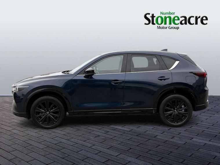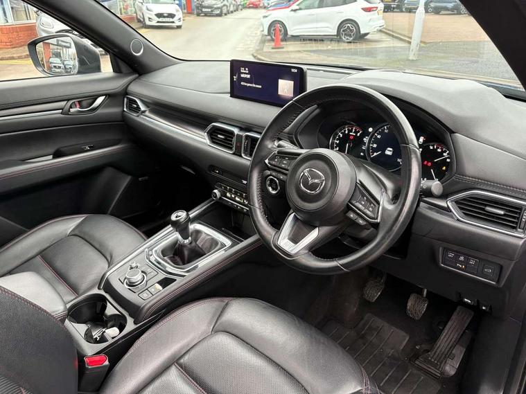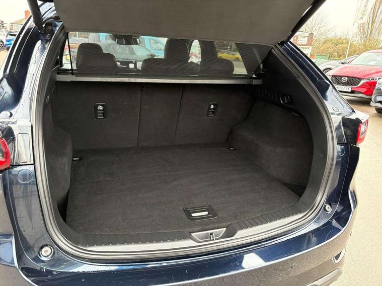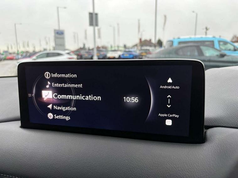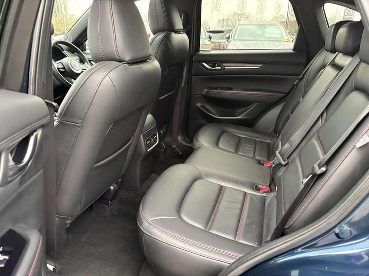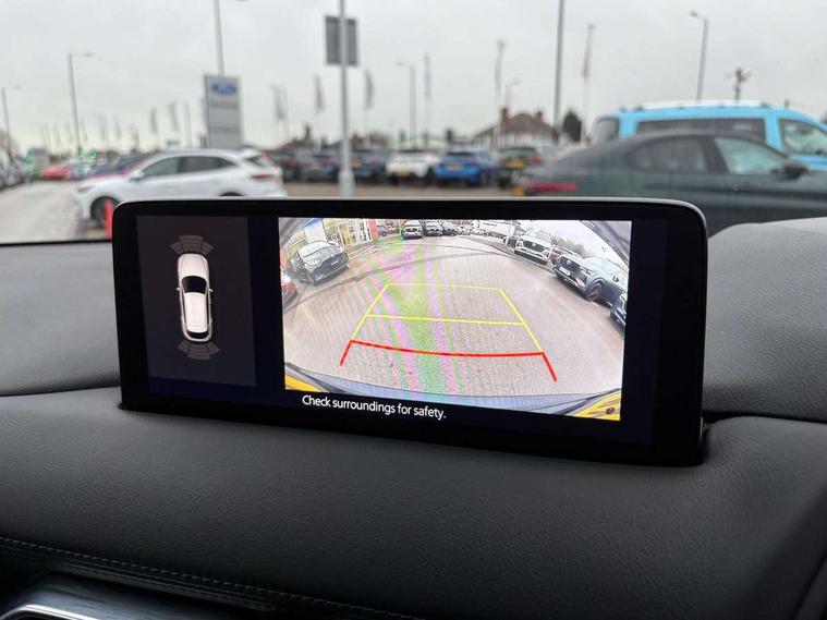 10.25" display with Mazda Connect infotainment, 7" colour TFT display, Advanced blind spot monitoring, Bluetooth connectivity with voice control, Collision prevention assist, Connected services, Cruising Traffic Support, Electric power steering, Emergency stop signalling system, Engine start/stop button, Forward collision warning, Front and rear parking sensors, Integrated navigation system, Intelligent speed assist, Lane departure warning system, Lane keep assist, Power liftgate, Qi wireless phone charging, Radar cruise control, Rear cross traffic alert, Reversing camera, Service indicator, Traffic sign recognition (TSR), Trip computer, Windscreen projected colour active driving display (HUD) with memory, Wireless apple car play/android Auto, Cylinder Deactivation, i-stop, AM/FM radio, Bluetooth audio streaming, Bose premium sound system with 10 speakers, DAB Digital radio, Multimedia Commander including separate volume dial, Steering wheel mounted audio controls, Adaptive front lighting system, Auto dimming rear view mirror, Automatic headlights, Black honeycomb door trim decoration panel, Black honeycomb interior decoration panel, Body colour roof spoiler, Coming/leaving home lighting function, Door mirror integrated indicators, Dual large chrome tailpipes, Dusk sensitive headlamps, Electric front/rear windows with one touch auto up/down, Front grille in gloss black finish, Front grille in gloss black with red accent + gloss black signature wing, Gloss black B and C pillars garnish, Gloss black door mirrors, Gloss black front and rear lower bumper mouldings, Gloss black tire arch and side mouldings, High beam assist, Intermittent rear wash/wipe, LED auto levelling, LED daytime running lights, LED front fog lights, LED Headlights, LED third brake light, Power folding and heated door mirrors, Power tilt/slide sunroof, Privacy glass (rear side windows only), Rain sensing front wipers, Rear side wing doors, Red front grille accent, Red stitching and accents on door trim, knee pad, console lid, steering wheel, shift boots, Scuff plates, Shark fin antenna, Signature LED rear combination lights, Variable intermittent front wash/wipe, Windscreen wiper de-icer, 12v electrical power outlet, 3 seat bench in 2nd row, 3 stage heated front seats, 40:20:40 Karakuri fold-flat seat system, 6 way electric adjustable passenger seat, 8 way electric driver seat with lumbar support + memory, Black roof lining, Cargo room flat floor board with waterproof undertray, Driver seat power slide, recline and height adjustment, Driver, Front passenger and two rear grab handles with coat hooks, Driver/passenger front seatback pockets, Driver/passenger sunvisors + illuminated vanity mirrors (drivers with ticket holder), Dual zone climate control, Folding centre armrest with 2 cup holders, Front and rear door pockets, Front centre storage with two cupholders, Front passenger seat power slide, recline and height adjustment, Gear shift indicator, Heated steering wheel, Humidity sensor, Illuminated glovebox, Interior dome light with integral spotlight, ISOFIX child seat anchorage points attached on outer rear seats, Karakuri tonneau cover, Leather upholstery, Leather wrapped steering wheel and gear knob, Luggage compartment LED lighting, Luggage compartment power outlet, Rear air vents, Rear headrests, Rear seat recline, Roof mounted sunglasses holder, Single front passenger seat, Three height adjustable head restraints, Tilt/height adjustable steering wheel, USB Connectivity (2x front Type-C, 2x rear Type-B), White interior LED illumination lighting, 3 point front seatbelts with pre-tensioners, 3 rear 3 point seatbelts, ABS, Advanced Smart City Brake Support - SCBS, Child locks on rear doors, Driver and front passenger side airbags, DSTC-Dynamic Stability and Traction Control, Dual front airbags, Electronic brake force distribution, Electronic parking brake with auto hold, ESP, Front and rear curtain airbags, Front passenger airbag deactivation, G-Vectoring control, Hill hold assist, Seatbelt reminder front and rear, Single stage passenger airbags, Smart brake support with forward obstruction warning, Tyre pressure monitoring system, Automatic door locking when moving off, Deadlock, Immobiliser, Power door locks, Remote central locking, Smart keyless entry, Thatcham Cat.1 alarm, 19" Black alloy wheels, Tyre repair kit,
