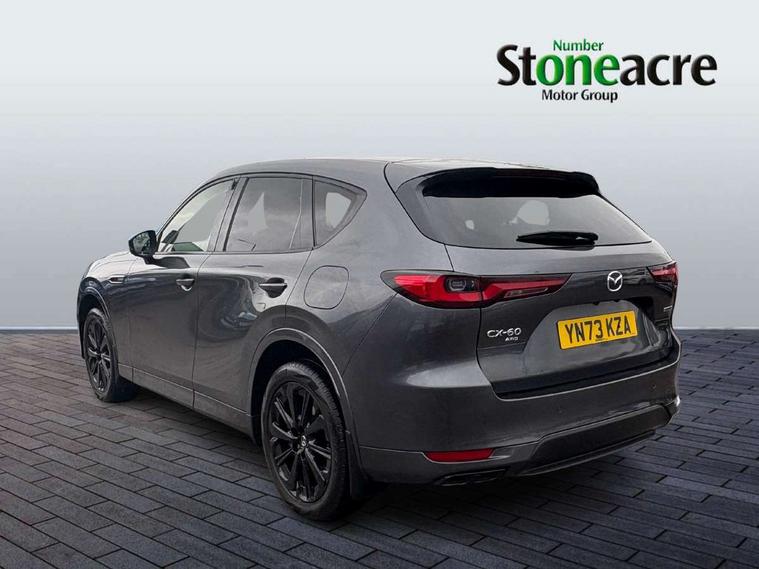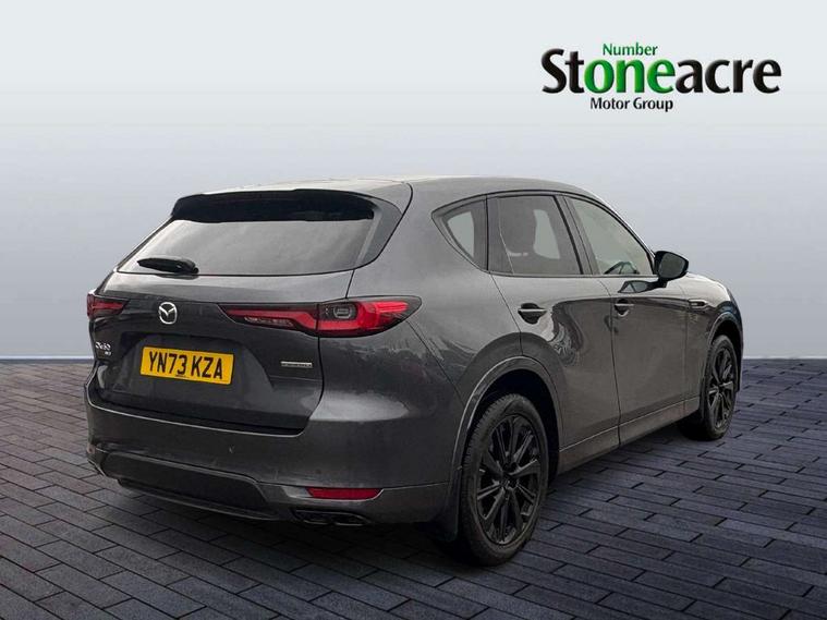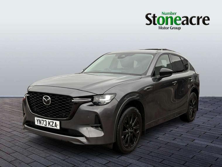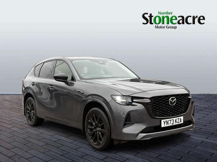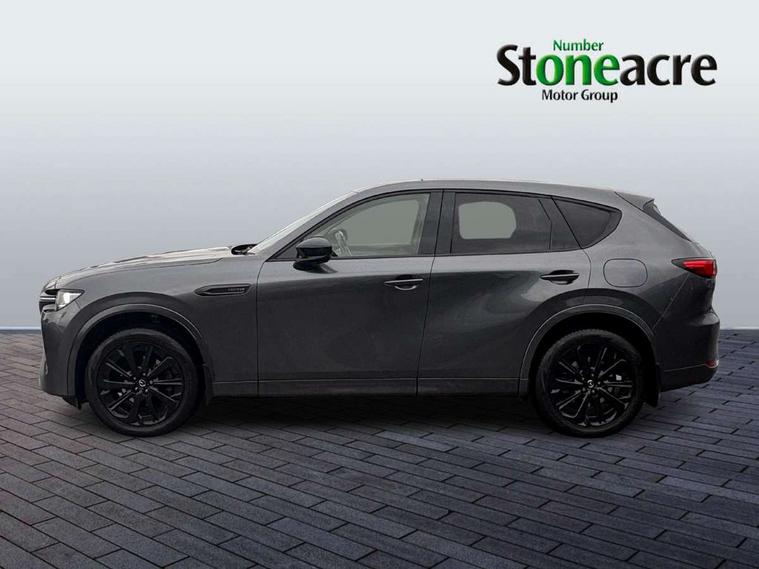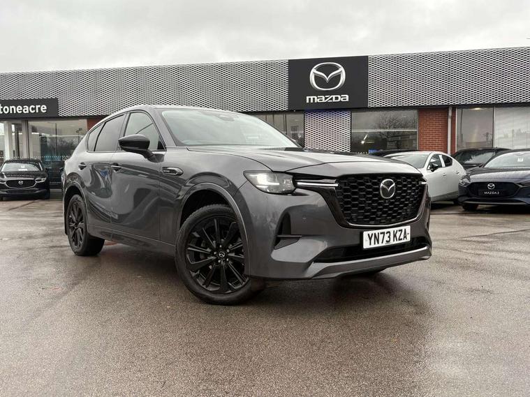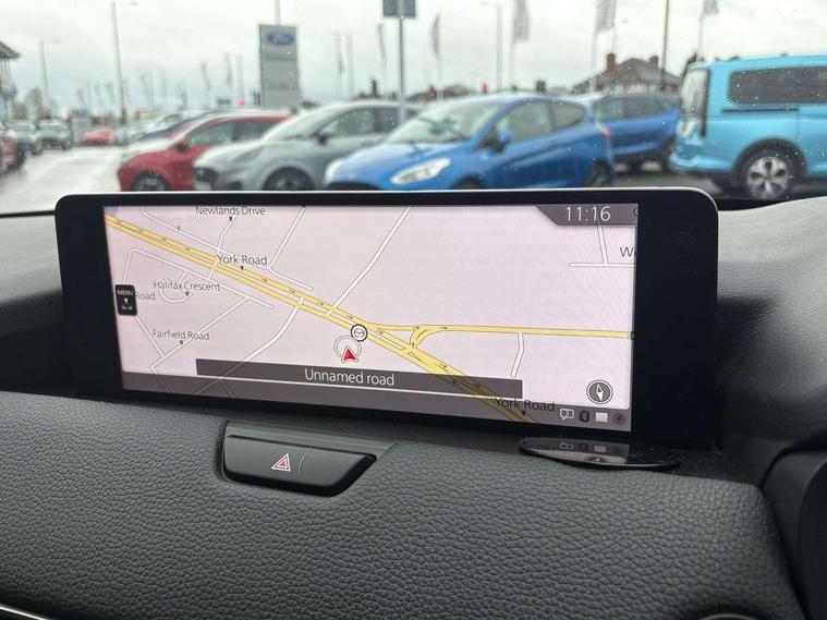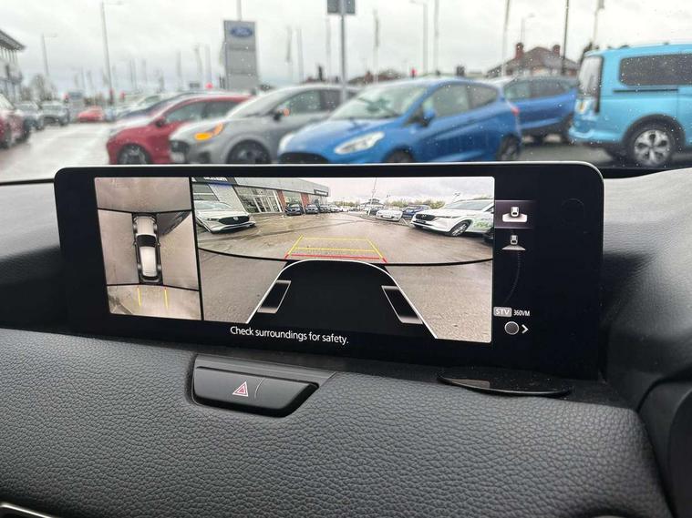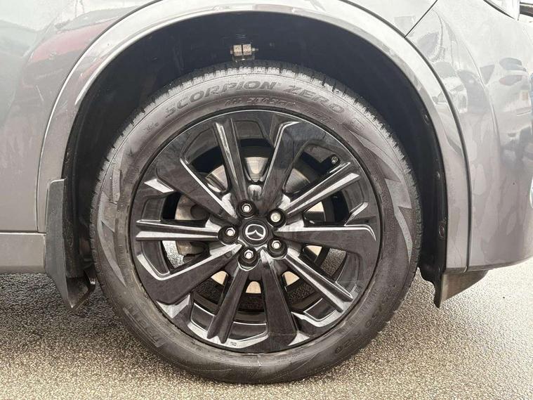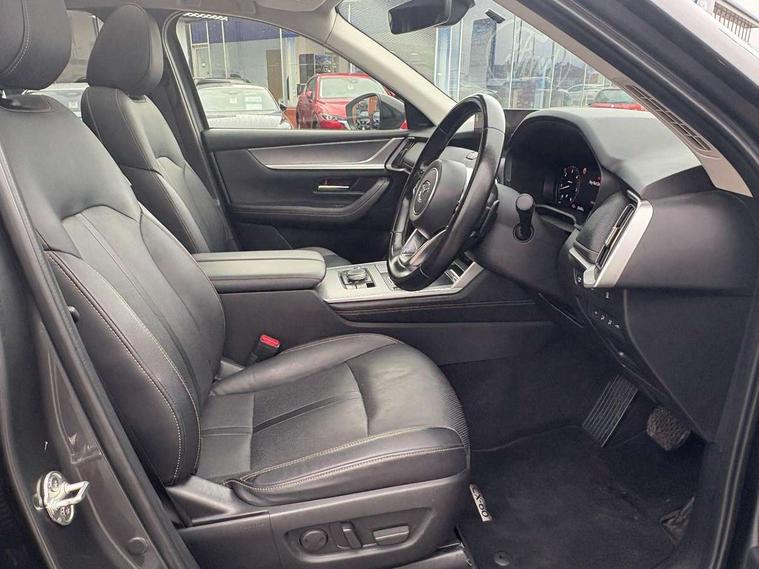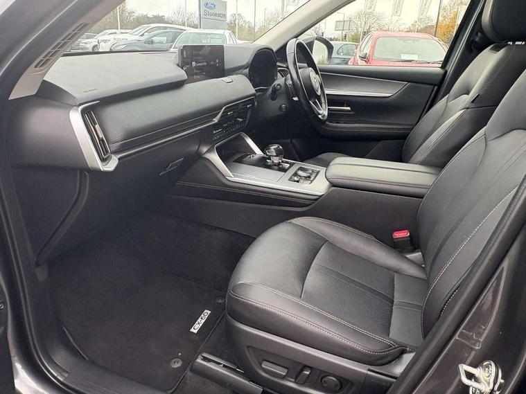Emergency lane keeping with blind spot assist, Low washer fluid warning light, 12.3" Colour entertainment centre display with mazda connect infotainment, 12.3" TFT Colour display, Adjustable speed limiter, Black faux leather vinyl dashboard with titanium piping, Blind spot assist, Blind spot monitoring with rear cross traffic alert, Cruise control, Distance alert system, Driver attention alert system, Driver Monitoring with personal identification, E-call with GPS, Emergency stop signalling system, Exit warning function, Front and rear parking sensors, Ingress / Egress support and automatic driver position guide, Integrated bluetooth, Intelligent speed assist, Kinematic posture control, Lane keep assist system (LAS) with Lane departure warning system (LDWS), Mazda Driver Personalisation System, Mazda Navigation System with european mapping, Multimedia Commander, PAS, Power lift gate with handsfree function, Power start/stop button, Reversing camera with static guide lines, Speed alert, Traffic sign recognition, Trip computer, Windscreen projected colour active driving display, Wireless apple car play/android Auto, Internal Combustion Engine Sound Emulator, Mi-Drive (Normal, Sport, Off-road, Towing and EV mode), Paddle shift, AM/FM and DAB radio, Bose surround sound system with 12 Speaker, Bose center point, Bass match and audio pilot technology, Steering wheel mounted audio/bluetooth controls, USB-C inputs (x2 front and x2 rear), Auto dimming driver's door mirror, Automatic headlight levelling, B-pillar and C-pillar garnishes in gloss black finish, Body colour roof spoiler, Body coloured bumpers, Body coloured wheel arch and side mouldings, Coming/leaving home lighting function, Dark plated headlight lense, Dark plating finish signature wing in front grille, Dark plating front side garnish, Differentiated front bumper design to accentuate the intake, Dusk sensing headlights, Electric front/rear windows with one touch auto up/down, Electrically adjustable, heated auto power folding door mirrors with memory, Frameless auto dimming interior rear view mirror, Front kodo turn signal, Front wiper de-icer, Gloss black door mirrors, Headlight washers, High beam control, Honeycomb radiator grille in gloss black, LED 3rd brake light, LED headlamps, LED rear signature combination lamps, Rain sensing front wipers with adjustable sensitivity and speed, Rear side wing doors, Rear wiper, Roof pillars and roof lining finished in lighter colour to soften the overall look, Signature LED daytime running lights, Silver decoration panel, 12v power outlet - front, 12V socket in boot, 3 height adjustable rear headrests, 3 seat bench in 2nd row, 40/20/40 split folding rear seats with quick levers in the boot, Ambient lighting, Cargo net, Chrome interior trim accents with steering wheel centre bezel, surround of engine start / stop button and glove box handle, Door panel trim vinyl leather with armrest, Driver and front passenger two rear grab handles with rear coat hooks, Driver and front passenger visors with covered vanity mirror and driver ticket holder, Driver seat electric tilt, slide, recline, height and lumbar adjustment, Driver, front passenger and two rear door pockets, Driver/passenger front seatback pockets, Dual zone climate control air conditioning with rear air vents, Electric telescopic and tilt adjustment steering wheel, Folding rear centre armrest with two cup holders, Front centre storage with two cupholders, Front down lamp with front and rear foot lamps, Front headrests, Front passengers seat electric slide, recline, height and lumbar adjustment, Front seat ventilation with 3-stage setting, Glovebox illumination, Heated front seats with 3 stage setting, Heated leather wrapped steering wheel, Heated outer rear seats with 3-stage setting, ISOFIX child seat anchorage points attached on outer rear seats, Karakuri tonneau cover, Leather upholstery, Leather wrapped gear shift knob, LED illumination luggage compartment, Practical and spacious front centre armrest storage, Rear seat recline function for rear passenger comfort, Remote fold down rear seats, Remote pre-heating/cooling, Roof mounted sunglasses holder, Single front passenger seat, 3 point ELR front seat belts x2 with pretensioners, 3 point ELR rear seat belts, Active bonnet, Anti-lock braking system (ABS), Drivers knee airbag, DSC - Dynamic Stability Control, Electronic parking brake with auto disengage function and auto hold function, Front and rear curtain airbags, Front dual stage driver and single stage front passenger airbags, Front passenger airbag cut-off switch, Front side airbags, Front smart city brake support, Hill decent control, Hill launch assist, Manual rear child locks, Seatbelt reminder for driver/front passenger and rear seats, Traction control, Tyre pressure monitoring system (TPMS), Remote central locking with deadlocking and automatic door lock when driving, Smart keyless entry, Thatcham accredited alarm and immobiliser, Black centre console panel, Dashboard panel - Black Vinyl, 20" Black metallic alloy wheels, Emergency tyre repair kit,