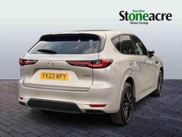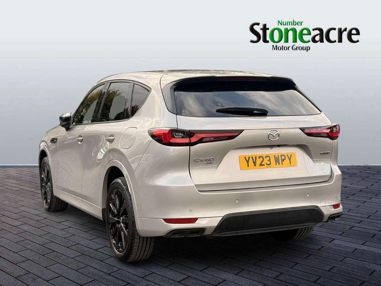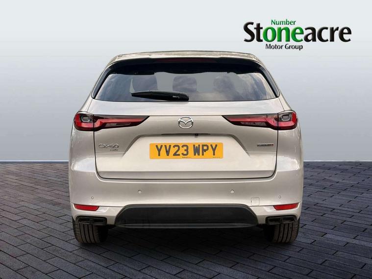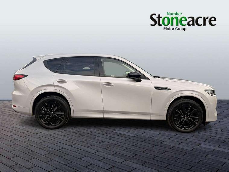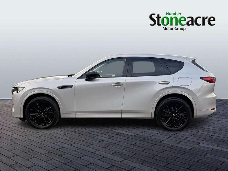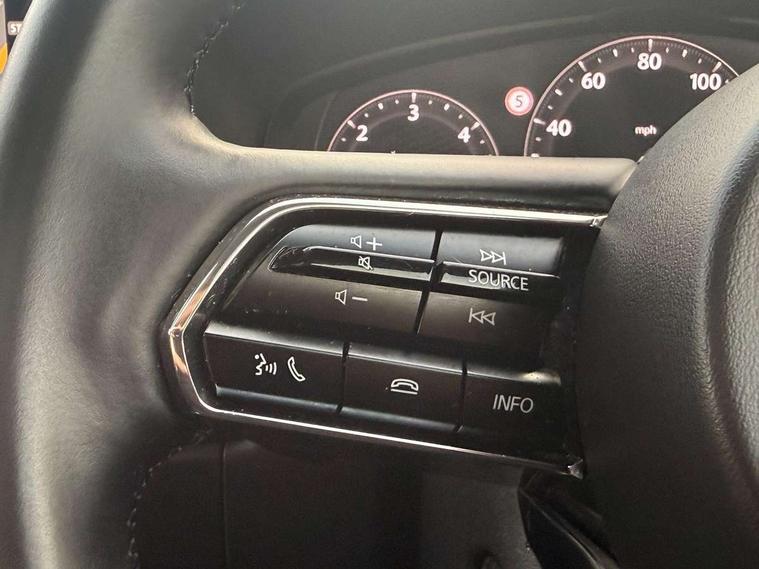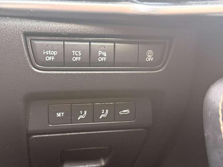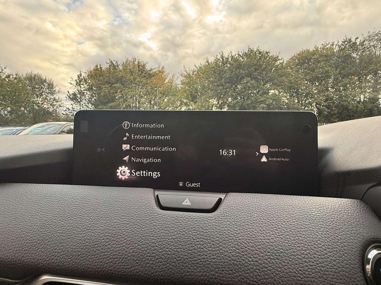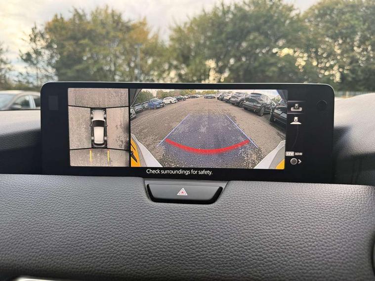 Emergency lane keeping with blind spot assist, Low washer fluid warning light, 12.3" Colour entertainment centre display with mazda connect infotainment, 12.3" TFT Colour display, Adjustable speed limiter, Black faux leather vinyl dashboard with titanium piping, Blind spot assist, Blind spot monitoring with rear cross traffic alert, Cruise control, Distance alert system, Driver attention alert system, Driver Monitoring with personal identification, E-call with GPS, Emergency stop signalling system, Exit warning function, Front and rear parking sensors, Ingress / Egress support and automatic driver position guide, Integrated bluetooth, Intelligent speed assist, Kinematic posture control, Lane keep assist system (LAS) with Lane departure warning system (LDWS), Mazda Driver Personalisation System, Mazda Navigation System with european mapping, Multimedia Commander, PAS, Power lift gate with handsfree function, Power start/stop button, Reversing camera with static guide lines, Speed alert, Traffic sign recognition, Trip computer, Windscreen projected colour active driving display, Wireless apple car play/android Auto, Internal Combustion Engine Sound Emulator, Mi-Drive (Normal, Sport, Off-road, Towing and EV mode), Paddle shift, AM/FM and DAB radio, Bose surround sound system with 12 Speaker, Bose center point, Bass match and audio pilot technology, Steering wheel mounted audio/bluetooth controls, USB-C inputs (x2 front and x2 rear), Auto dimming driver's door mirror, Automatic headlight levelling, B-pillar and C-pillar garnishes in gloss black finish, Body colour roof spoiler, Body coloured bumpers, Body coloured wheel arch and side mouldings, Coming/leaving home lighting function, Dark plated headlight lense, Dark plating finish signature wing in front grille, Dark plating front side garnish, Differentiated front bumper design to accentuate the intake, Dusk sensing headlights, Electric front/rear windows with one touch auto up/down, Electrically adjustable, heated auto power folding door mirrors with memory, Frameless auto dimming interior rear view mirror, Front kodo turn signal, Front wiper de-icer, Gloss black door mirrors, Headlight washers, High beam control, Honeycomb radiator grille in gloss black, LED 3rd brake light, LED headlamps, LED rear signature combination lamps, Rain sensing front wipers with adjustable sensitivity and speed, Rear side wing doors, Rear wiper, Roof pillars and roof lining finished in lighter colour to soften the overall look, Signature LED daytime running lights, Silver decoration panel, 12v power outlet - front, 12V socket in boot, 3 height adjustable rear headrests, 3 seat bench in 2nd row, 40/20/40 split folding rear seats with quick levers in the boot, Ambient lighting, Cargo net, Chrome interior trim accents with steering wheel centre bezel, surround of engine start / stop button and glove box handle, Door panel trim vinyl leather with armrest, Driver and front passenger two rear grab handles with rear coat hooks, Driver and front passenger visors with covered vanity mirror and driver ticket holder, Driver seat electric tilt, slide, recline, height and lumbar adjustment, Driver, front passenger and two rear door pockets, Driver/passenger front seatback pockets, Dual zone climate control air conditioning with rear air vents, Electric telescopic and tilt adjustment steering wheel, Folding rear centre armrest with two cup holders, Front centre storage with two cupholders, Front down lamp with front and rear foot lamps, Front headrests, Front passengers seat electric slide, recline, height and lumbar adjustment, Front seat ventilation with 3-stage setting, Glovebox illumination, Heated front seats with 3 stage setting, Heated leather wrapped steering wheel, Heated outer rear seats with 3-stage setting, ISOFIX child seat anchorage points attached on outer rear seats, Karakuri tonneau cover, Leather upholstery, Leather wrapped gear shift knob, LED illumination luggage compartment, Practical and spacious front centre armrest storage, Rear seat recline function for rear passenger comfort, Remote fold down rear seats, Remote pre-heating/cooling, Roof mounted sunglasses holder, Single front passenger seat, 3 point ELR front seat belts x2 with pretensioners, 3 point ELR rear seat belts, Active bonnet, Anti-lock braking system (ABS), Drivers knee airbag, DSC - Dynamic Stability Control, Electronic parking brake with auto disengage function and auto hold function, Front and rear curtain airbags, Front dual stage driver and single stage front passenger airbags, Front passenger airbag cut-off switch, Front side airbags, Front smart city brake support, Hill decent control, Hill launch assist, Manual rear child locks, Seatbelt reminder for driver/front passenger and rear seats, Traction control, Tyre pressure monitoring system (TPMS), Remote central locking with deadlocking and automatic door lock when driving, Smart keyless entry, Thatcham accredited alarm and immobiliser, Black centre console panel, Dashboard panel - Black Vinyl, 20" Black metallic alloy wheels, Emergency tyre repair kit,