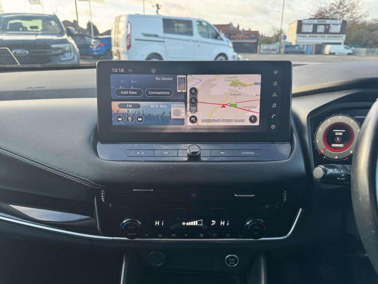 Android auto/Apple CarPlay (Wired), Blind spot warning, Drive modes (sport, normal, eco), Electric speed sensitive power steering, Emergency and breakdown call, Front and rear parking sensors, Full Digital 12.3" TFT Digital Combimeter, Google maps services - search, weather, 3D maps and Google street view, Idle stop/start system, Intelligent around view monitor, Intelligent Cruise control (ICC), Intelligent driver alert system, Intelligent forward collision warning, Intelligent lane intervention, Lane departure prevention, Lane departure warning system, Maximum speed limiter, Moving object detection, Nissan connect 12.3 inch touchscreen infotainment system, Nissan connect navigation, Push button starter, Rear cross traffic alert, Rear view camera, Remote control services - door locks, lights, horn and car locator, Telematics - notifications and connectivity services, TomTom live traffic services, Traffic sign recognition with legal speed adjustment, Trip computer, Virtual personal assistant and firmware over the air capability, Wireless apple carplay, 6 speakers, AM/FM audio system with DAB, Bluetooth audio streaming, Front USB connections (Type-A and Type-C), Rear USB charging only ports (Type-A and Type-C), Auto dimming rear view mirror, Auto rear wiper when reversing, Automatic hazard signal with emergency stop signal, Body colour mirror caps, Body coloured door handles, Bodyside mouldings, Chrome side window finisher, Door handle with button, Electric auto folding door mirrors, Electrically adjustable and heated door mirrors with LED turn indicator, Follow me home headlights, High beam assist, Intelligent auto headlights, LED daytime running lights, LED Headlights, LED rear lights, One touch front and rear electric windows with remote opening and closing, Partially body coloured bumpers, Privacy glass, Rear bumper with graphite insert, Rear reversing light (bulb lighting), Rear roof spoiler, Rear side wing doors, Rear styling plate, Shark fin antenna, Splash free rain sensing wipers, Super UV and infrared cut glass, Three blink turn signal, 12v power socket in dashboard and luggage, 2x Rear coat hooks, 3 bench rear seats in 2nd row, 3 rear headrests, 4 folding assist grip, 6 Luggage hooks - 4 on floor, 2 on side, 6-way manually adjustable driver's seat, 60/40 split folding rear seat bench, Ambient lighting around centre console, Centre console storage tray, Chrome interior door handles, Cloth monoform upholstery, Driver and front passenger sunvisors with illuminated vanity mirrors, Driver seat back pocket, Dual zone automatic climate control with pollen filter, Electrically adjustable lumbar support for driver, Front and rear door storage, Front centre console and armrest, Front cupholders x 2, Front door with bottle holders, Glovebox with light, Hard trunk cover, Height adjustable driver's seat, Height adjustable front headrests, Height adjustable passenger seat, Leather shift knob, Leather steering wheel, Luggage board system, Luggage space lighting, Manually adjustable passenger (slide recline + lifter), Multifunction steering wheel, Passenger seat back pocket, Rear armrest with 2 cupholders, Rear door bottle holders, Single front passenger seat, Soft PVC kneepad, Steering wheel switches, Sunglasses holder, Tilt/telescopic adjustable steering wheel, Two rear isofix child seat anchorage points with top tether, Welcome light and console tray ambient lighting, 3x3 point rear seatbelt pretensioners + load limiters, ABS with EBD and brake assist, Active brake limited slip, Auto hold function, Child locks on rear doors, Curtain and front side, far side airbags, Driver and passenger airbags, Driver, passenger and 2nd row rear seat belt reminder, Electronic parking brake, Front seatbelt pretensioners + load limiters, Height adjustable front seatbelts, Hill start assist, Intelligent blind spot intervention, Intelligent front emergency braking with pedestrian, cyclist recognition and junction assist, Intelligent rear automatic braking, Tyre pressure monitoring system, Vehicle dynamic control, Capless fuel filler, Engine immobiliser, Intelligent Key, Remote central door locking with deadlocking, Thatcham Cat.1 alarm, Interior instrumental panel B finisher, 18" Diamond cut alloy wheels, Tyre puncture repair kit,