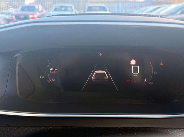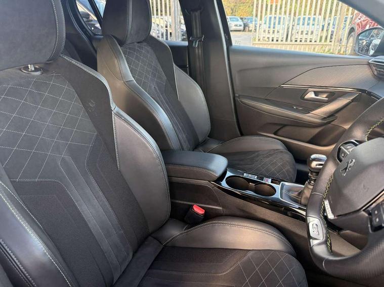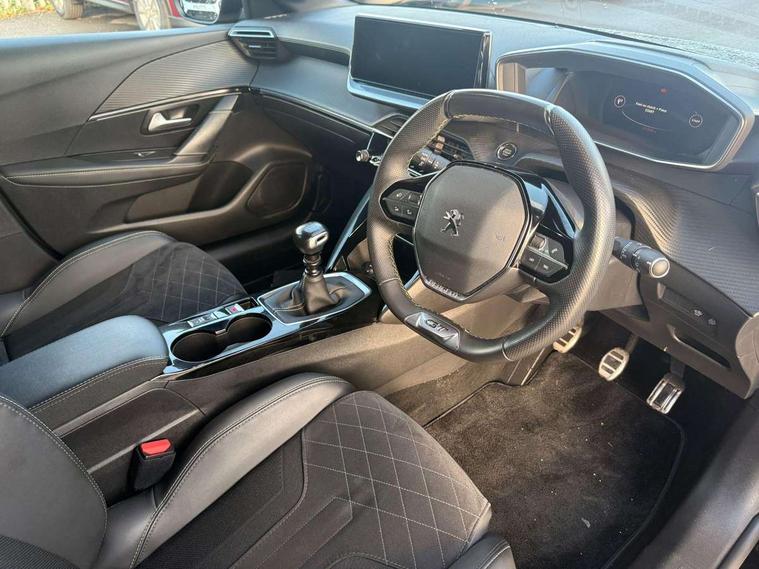 10" Capacitive colour touchscreen with connected 3D navigation, Blind spot monitoring, Bluetooth telephone facility, Driver attention warning, Exterior temperature indicator with ice warning, Lane keep assist, Mirror screen with mirror link, apple carplay and android auto, Multi function trip computer, PEUGEOT i-Cockpit with compact steering wheel, PEUGEOT i-Cockpit with configurable 3D headup instrument panel, PEUGEOT SOS and assistance, Push button start, Smart phone docking station, Speed limit recognition and recommendation, Start/stop system, Visio park assist 180 with colour reversing camera + front and rear parking sensor, 2 front USB socket with USB-C, 2x USB sockets in rear, 6 speakers radio with mp3 compatible, DAB Digital radio, Voice recognition for radio, navigation and telephony features, 2 X Rear number plate lights, Automatic hazard light activation upon heavy brake application, Automatic lights, Automatic windscreen wipers, Body coloured exterior door handles, Dark tinted rear side and tailgate windows, Diamond black rear spoiler, Diamond Black roof, Electric front windows + one touch + anti-pinch, Electric rear windows with one touch/anti-pinch, Electrically adjustable, heated and power folding door mirrors, Follow me home headlights, Frameless electrochrome interior rear view mirror, Full LED headlights with smartbeam assist, Gloss black finish on B pillar, Gloss black rear cluster connecting strip, Gloss black wheel arch extensions, Gloss black window surround, GT model designation badging on C pillar, GT model designation badging on tailgate, Headlights left on audible warning, LED daytime running lights with 3 claw headlight with distinctive tooth design, LED side indicator lights integrated into door mirrors, LED third brake light, Model designation badges front and rear, Nera black door mirror shells, Peugeot scuff plates, Radiator grille - Dark chrome chequered and gloss black edge trim, Rear bumper with gloss black finish, Rear full LED 3D peugeot signature claw effect lights with daylight function, Rear lower bumper diffuser effect trim in gloss black, Rear reversing lights, Rear side wing doors, Rear windscreen wiper triggered automatically in reverse gear, Roof mounted aerial with fin design, Roof spoiler, Single exhaust tailpipe, Tailgate with heated rear windscreen and wiper blade, Variable front intermittent wipers, 1/3 to 2/3 split folding rear seats, 12V socket, 3 seat bench in 2nd row, 8 Colour personalisable ambient lighting, Aluminium pedals and foot rest, Automatic air conditioning, Driver and front passenger seat manual adjustment in longitudinal and back rest angle, Driver and front passenger seat mechanical height adjustment, Driver and front passenger sport seats, Electric power steering with reach and rake adjustable steering column, Front and rear carpet mats in black with lime green stitch detail, Front centre armrest with storage compartment, Front LED interior light with 2 reading spotlights and rear interior light with timer, Gear shift indicator, High centre console with 2 cup holders, ISOFIX child seat mounting points on passenger seat, Lime green contrast stitching to armrest, front centre console, door panels and dashboard facia, Map pockets on the backs of the front seats, Mistral full grain perforated leather steering wheel with aikinite stitch detail and satin chrome 'GT' emblem, Piano keys gloss black plated toggle switches to access main functions of the vehicle, Piano keys gloss black plated toggle switches to access touchscreen functions, Rear centre headrest, Roof lining - Mistral black, Satin chrome gear lever, Seatbelt unfastened on the move audible and visual alert for front and rear seats, Single front passenger seat, Drive assist pack - 208, 3 rear 3 point seatbelts, ABS (Anti-lock Braking System) with EBD (Electronic Brakeforce Distribution) and EBA (Emergency Braking Assistance), Active safety brake with night function/cyclists/pedestrians, Adaptive driver and front passenger airbags with passenger airbag deactivation function, Child locking functionality on rear doors, Driver/front passenger side airbags, Electric parking brake, ESP with Hill Assist, Front and rear curtain airbags, Front and rear disc brakes, Front optimised safety headrests and 3 x rear retractable headrests with height adjustable, Front three point retractable seatbelts with force limiters, Tyre pressure sensor, Acoustic vehicle alert system (AVAS), Automatic door locking when moving off, Deadlock, Electronic code immobiliser, Peugeot Open and Go System, Remote central locking, Thatcham cat. 1 alarm with anti lift sensor, Carbon effect Dashboard, front and rear door panel finish, 17" Bronx two-tone alloy wheels, Space saver spare wheel,