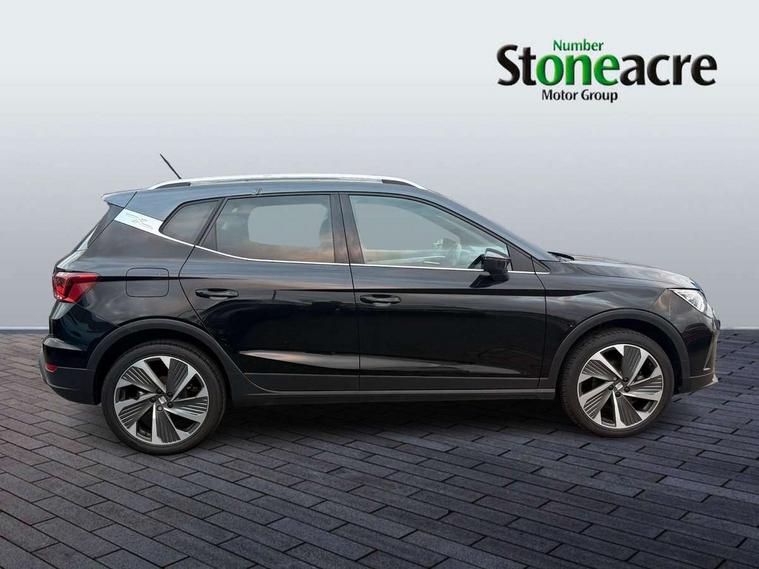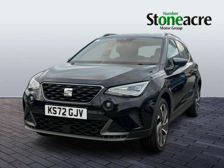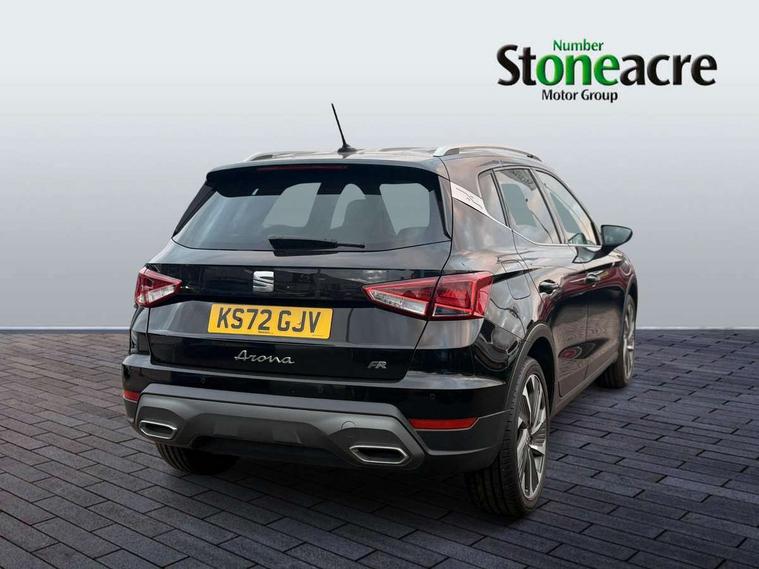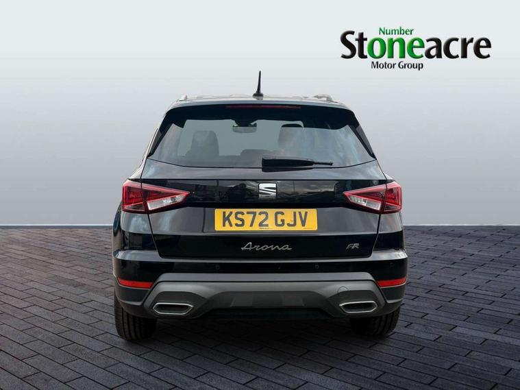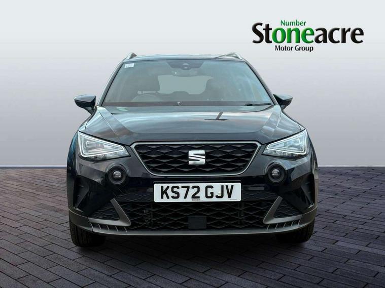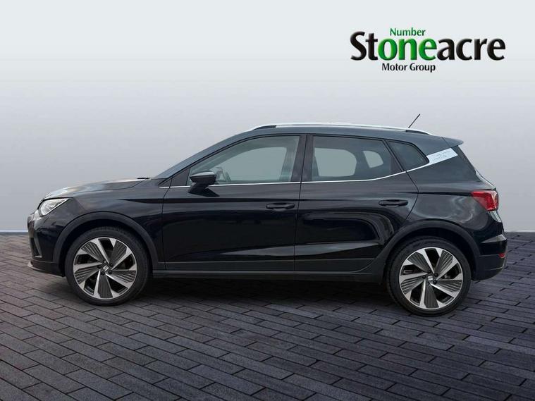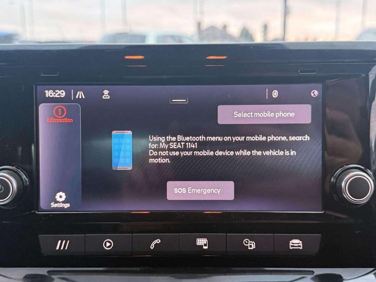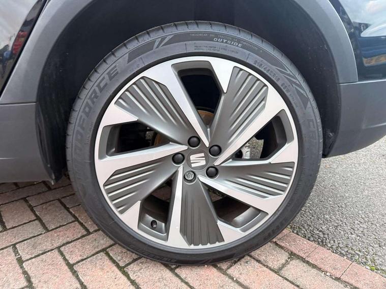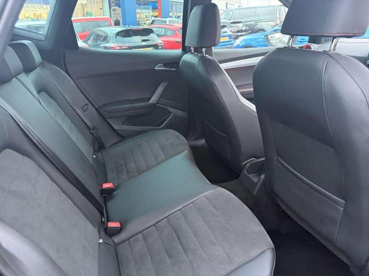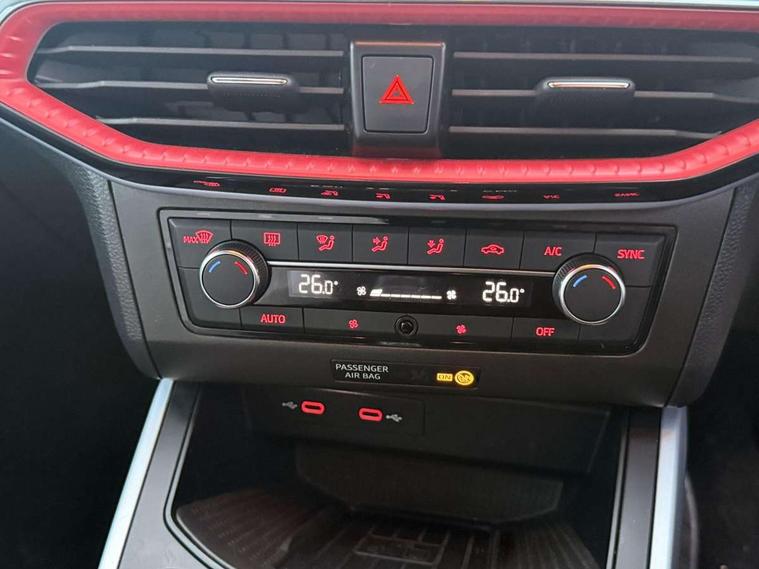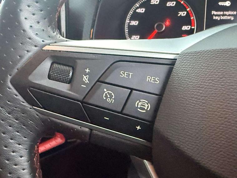 'Lights On' Reminder warning buzzer, Analogue cockpit with physical dials, Digital clock, E-call, Electric speed sensitive power steering, Full Link Smartphone Integration with Mirror Link, Apple Car Play, Google Android Auto with USB Type C cable for Apple and Android compatibility, Lane keeping system, Low fuel warning light, Outside temperature display, Rear parking sensor, RPM counter, Seat connect with safety, service and remote, SEAT Drive profile - Four different models normal-sport-eco-individual, steering response, throttle response, Trip computer, Wireless phone charger, Bluetooth interface for hands free and audio streaming, DAB digital radio and AM/FM radio, Media system with 8.25" colour touchscreen with USB port (type c), Steering wheel mounted audio controls, Anti theft roof antenna, Automatic activation of hazard warning lights, Body coloured bumpers, Body coloured door handle inserts, Chrome roof rails and window surrounds, Dark tinted rear windows, Dimming rear view mirror, Electric front/rear windows, Electrically adjustable and heated door mirrors, Front fog lights with cornering function and rear fog light, FULL LED automatic headlights with dynamic headlight range control, coming and leaving home, LED daytime running lights, LED rear tail lights and licence plate lights, Protective side mouldings, Rear side wing doors, Rear spoiler, Rear window wash/wipe, Roof colour door mirrors, Third brake light, Twin exhaust pipe styling hidden exhaust pipe, Visible VIN plate, Windshield wiper with intermittent control and potentiometer, 2 cupholders, 3 seat bench in 2nd row, 60/40 split folding rear seat, Aircare filter, Black interior roof, Double boot floor, Driver sunvisor with covered mirror + card holder, Dual zone climate control, Front comfort seats, Front courtesy light with 2x front and 2x rear reading lights, Gear shift indicator, Height adjustable front seats, Height/reach adjustable steering column, Illuminated boot, Instrument lighting with brightness control, Interior ambient lighting, Interior light in footwell, central console and door panel, ISOFIX points in outer rear seats with top tether anchorage points, Microsuede cloth upholstery, Passenger sunvisor with vanity mirror, Perforated flat bottomed leather steering wheel/gear knob/handbrake with red stitching and FR logo, Single front passenger seat, Two front and three rear height adjustable headrests, Interior chrome pack - Arona, 3 point seatbelts on all rear seats, ABS, Active front headrests, Child locks on rear doors, Driver and front passenger airbags with front passenger airbag de activation, front side and curtain airbags, Electronic stability control, Emergency Brake Assist (EBA) and front assist, Front and rear seatbelt reminder, Hill hold control, Multi-Collision braking, Tiredness recognition system, Traction control, Tyre pressure monitoring system, Alarm with back-up horn, Electronic engine immobiliser, KESSY Keyless entry and go, Locking wheel bolts, Remote central locking + deadlocks, Tow away protection, Titan black dashboard,