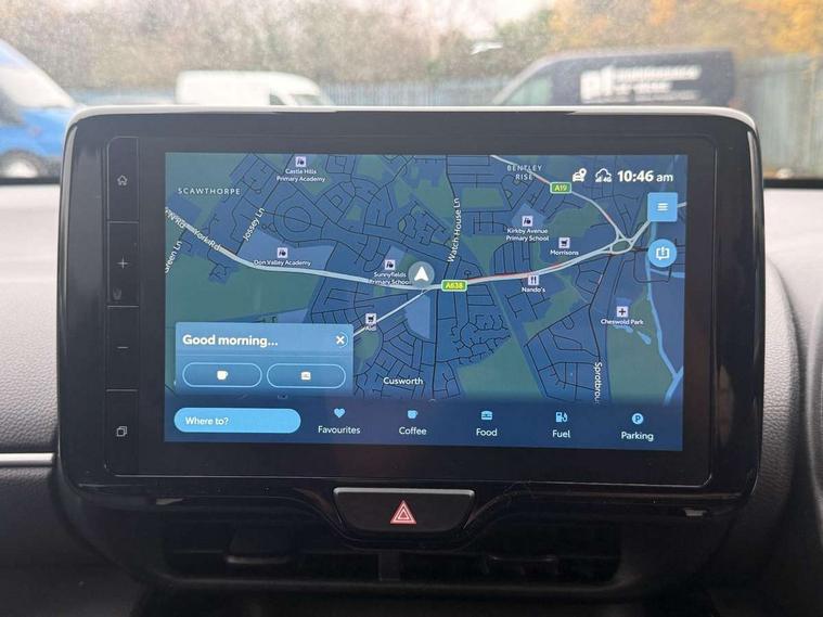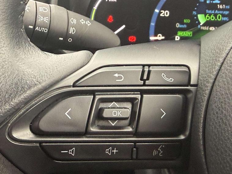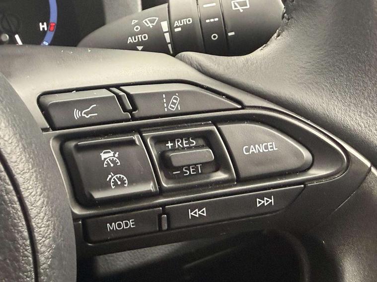 7" Multi information display screen, 8" Toyota touch 2 multimedia system with Smartphone integration with Apple CarPlay and Android auto, Adjustable speed limiter, Bluetooth connectivity, Driver attention alert system, eCall emergency system, Electric power steering, Full range intelligent adaptive cruise control, Hybrid system indicator, Key reminder warning, Lane trace assist, Multimedia, audio, telephone and voice recognition switches on steering wheel, My T Connected services, Pre-collision system enhanced with emergency steering assist, Reversing camera, Road sign assist - RSA, Steering assisted vehicle stability control, 6 speakers, DAB Digital radio, USB connection, 3rd brake light, Acoustic windscreen glass, Aluminium roof rails, Anti-jam protection on power windows, Auto high beam [AHB] with on/off switch, Automatic headlights, Black lower front grille, Black Shark-fin antenna, Black upper front grille, Black wheel arch mouldings, Body colour door handles, Body colour front bumper, Body colour rear bumper, Electric adjustable heated door mirrors, Follow me home headlights, Front and rear electric windows with auto up/down function, Front intermittent wipers, Headlight cut off reminder, Indicators integrated on door mirrors, Intermittent rear wiper, LED daytime running lights guide, LED front fog lights, LED front light guide, LED Indicators, LED projector headlights, LED rear light guide, Manual headlight levelling, Manually retractable door mirrors, Noise reduction layer on windscreen, Privacy glass, Rain sensor, Rear LED lights with sequential indicators, Rear side wing doors, Rear spoiler, Rear window defogger, 12v power outlet - front, 2x Rear coat hooks, 3 seat bench in 2nd row, 3 spoke leather steering wheel, 40:20:40 split folding rear bench seat, Adjustable speed limiter switch on steering wheel, Auto air conditioning, Black roof lining, Boot light, Central armrest, Centre console in light blue ambent lighting, Driver and front passenger personal lights, Fabric door trim, Fabric upholstery, Footwell in light blue ambient lighting, Front console box, Front cup holders, Front head restraints, Glovebox, Height adjustable driver's seat, Height adjustable front passenger seat, Hooks for luggage holding belts, ISOFIX child restraint system, Lane departure alert switch on steering control, Leather gearshift, Light blue ambient lighting on front doors, Manual telescopic and tilting steering wheel, Mirror on driver and passenger sun visor, Pollen air filter, Rear cup holders, Rear head restraints, Single front passenger seat, Soft tonneau cover, 3x3 point rear seat belts, ABS+EBD+Brake assist, Driver and passenger central airbags, Driver and passenger front airbags, Driver and passenger side airbags, Electronic parking brake, Emergency brake light system (EBS), Front seat belt reminder, Hill start assist control (HAC), Passenger airbag on/off switch, Pre-collision system with pedestrian and cyclist detection, Rear door child safety locks, Rear passenger side airbags, Rear seat belt reminder, Traction control, Tyre pressure warning system, Immobiliser, Intrusion alarm, Keyless smart entry with push button start, Power door locks, Power passenger window lock, Remote door lock, Tyre repair kit,