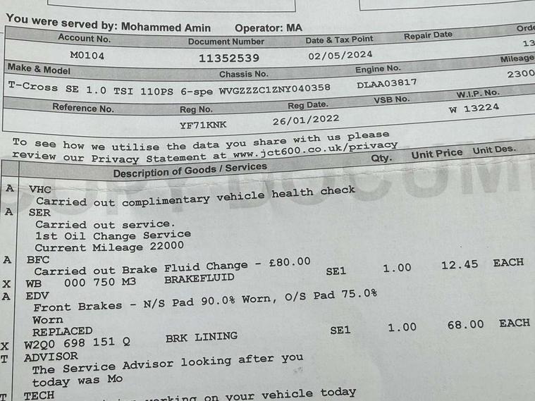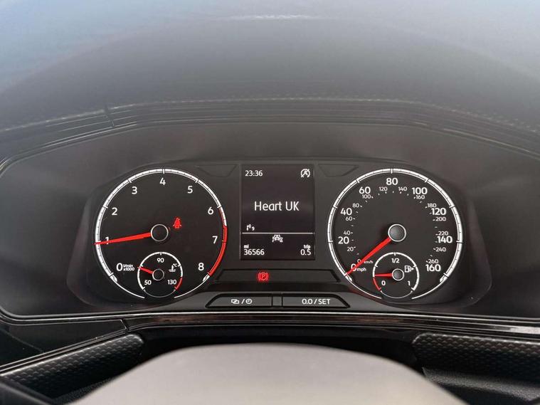 'Lights On' Reminder warning buzzer, Adaptive cruise control including front assist, forward collision warning, autonomous emergency braking, speed limiter, Blind spot monitoring, Bluetooth telephone and audio connection for compatible devices, Car information display, Driver alert system, eCall emergency call system, Lane assist, Low washer fluid warning light, Multifunction computer with visual gear change recommendation for fuel consumption, Operating permit alteration, Power assisted speed sensitive steering, Speedo, rev counter, electronic odometer, trip, service interval display, exterior temperature and fuel gauge, Stop/start system, Warning sound and light for doors and tailgate open, Warning sound and light for front seatbelts unfastened, We Connect Go Dongle, Wireless Car net app connect with Apple CarPlay, combined functionality of Apple CarPlay/Android Auto and MirrorLink, Battery regeneration during braking, Misfuel prevention device, 2x USB connection with USB charging sockets and in rear centre console, DAB Digital radio receiver, Diversity antenna for FM reception, Multi device interface (MDI) with USB connection, Music playback - MP3, WMA and AAC files, Premium USB cable for Apple or Android smartphone compatibility, Simultaneous pairing of 2 compatible mobile devices, Title and cover art display, Automatic hazard lights activation under emergency braking, Black roof rails, Body colour door handles, Body colour door mirrors with integrated indicators, Body coloured bumpers, Dusk sensor + automatic driving lights, Electrically foldable, adjustable and heated door mirrors with reverse activated kerb view adjustment on passenger's side, Front and rear electric windows, Front fog lights with static cornering function, Galvanised body, Heated rear window, LED third brake light, Lower door sills and door pillars in black, Radiator grille with high gloss surface and chrome strip, Rear fog light on one side, reversing light on both sides, Rear lights incorporating LED technology, Rear side wing doors, Rear window aerial, Rear windscreen washer and wiper with interval delay, Reflectors in all doors, Tailgate with integrated roof spoiler, Windscreen wipers/ intermittent wipe + 4 position delay, 12V Accessory socket in centre console, 3 rear head restraints and 3 rear three point seat belts with ECE label, 3 seat bench in 2nd row, 60/40 split folding rear seat backrest, Drawer under drivers seat, Driver and front passenger sunvisor with vanity mirror, Driver's sunvisor with ticket holder, Dust and pollen filter, Front and rear reading lights X 2, Front centre armrest with storage compartment, Front seat back storage pockets, Front seats with adjustable lumbar support, Glovebox, Heating and fresh air system with 4 stage blower, Height/reach adjust steering wheel, Instrument lighting white adjustable panel illumination, Interior light with delay, Isofix child seat preparation for 2 rear child seats, Luggage compartment cover, Luggage compartment lighting, Manual air conditioning, Manual front seats with height adjustment, Moveable and foldable Rear bench seat, Single front passenger seat, Storage compartment in drivers and front passengers door, Three spoke multi-function leather trimmed steering wheel and gearknob, Triangle ties/pearl cloth upholstery, Variable boot floor, Anti-lock Braking System (ABS) with Hydraulic Brake Assist (HBA), Automatic post collision braking system, Driver and front passenger safety-optimised head restraints, Drivers and Front Passengers airbags with front passengers airbag deactivation switch, ESC with EDL, ASR, EDTC and trailer stabilisation function, Extended and proactive pedestrian protection, Front and rear curtain airbags, Front seat side impact airbags, Height adjustable 3 point automatic front seatbelts with pretensioners, Hill start assist, Pre crash preventive occupant protection, Rear door child safety locks, Rigid safety cell with front and rear crumple zones, Single torn horn, Tyre pressure loss indicator, Volkswagen roadside assistance, Alarm with interior protection and deactivation via infotainment system, Child security locks in rear doors, Electronic engine immobiliser, Remote tailgate unlocking using key fob, Pineapple decorative inserts in dash and doors, 17" Clayton alloy wheels + anti theft wheel bolts, Breakdown kit,