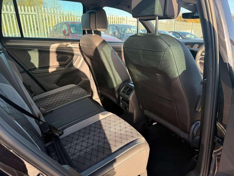 Adaptive cruise control ACC stop and go including speed limiter, App-Connect incl. App-Connect Wireless for Apple CarPlay and Android Auto, Bluetooth phone integration system, Comfort drive travel assist, Digital cockpit pro, Driver alert system, Driver profile selection, Dynamic road sign display, eCall emergency call system, Electromechanical speed sensitive power steering, Emergency assist, Front and rear parking distance sensors, Instrument cluster mph speedometer Great Britain, Lane keeping system Lane Assist, Lights on warning, Multifunction front facing camera, Outside temperature display, Premium multifunction display with multi colour display, Rev counter, Service interval indicator, Speed limit display, Start/stop system with regenerative braking, Trip computer, Warning sound and light for doors and tailgate open, Battery regeneration during braking, Digital radio reception DAB+, Diversity antenna for FM reception, Radio, Auto dimming interior rear view mirror, Automatic headlight control system, Body colored bumpers in R-Line style, Body colored exterior mirror housings, Body colour door handles, Chrome moldings on the side windows, Coming/leaving home lighting function, Dynamic headlight range control, Front and rear electric windows, Heated rear window, High level 3rd brake light, Laminated safety glass windshield, heat and sound insulating, LED rear combination lamps, LED rear number plate lights, License plate carrier in front and rear, Poor weather light and cornering light, Privacy glass for rear side windows and rear window, R Line body kit, R Line side sills, Rain sensor, Rear exhaust tailpipe, Rear fog lamp, Rear side wing doors, Rear spoiler in R style, Rear windscreen washer and wiper with interval delay, Side and rear windows in heat insulating glass, Trailer Stability Programme, Unique R Line badging, Windscreen wipers/ intermittent wipe + 4 position delay, 12V outlet in center console rear and in luggage compartment, 12V outlet in front and tray, 2 LED front reading lights, 2 LED rear reading lights, 3 bench rear seats in 2nd row, 3 rear headrests, Air Care Climatronic 3 zone automatic climate control with enhanced air filter and controls in the rear, Backrest release for left front seat, Black headlining, Brushed stainless steel pedals and footrest, Carpet mats in front and rear with decorative stitching in Gray, Climate control unit rear with touch function, Door and side trim panel in foam film, insert in leatherette, Front footwell illumination, Front scuff plates in aluminum with R-Line logo, Front seats head restraints (x-adjustment), Height/reach adjust steering wheel, Isofix Preparation 2 Rear child seats, Leather gear knob, Rear bench seat asymetrically split folding, longitudinally movable and folding with load-through hatch and center armrest, Remote unlocking for rear seat backrest, Single front passenger seat, Sun visors with illuminated vanity mirrors, Tool kit, Driver assistance pack plus - Tiguan DSG, 3 point seat belt for centre rear seats, 3 point seat belts with seat belt pretensioners for the outer rear seats, Curtain airbags for front and rear passengers, Driver/Front Passenger airbags, Drivers knee airbag, Electronic parking brake with auto hold, Electronic Stability Control with driver steering recommendation, ABS, ASR, EDL, EDTC and trailer stabilization, Front assist with autonomous emergency braking (for Adaptive Cruise Control ACC up to 130 mph), Front disc brakes, Front passenger airbag deactivation, Front side airbags, Height adjustable front 3 point seatbelts + pretensioners, Manual child proof rear door locks, Pedestrian monitoring system, Proactive passenger protection system in combination with front assist, Rear disc brakes, Two tone horn, Warning sound and light for front seat belts if unfastened, Warning triangle, Anti theft alarm system with interior monitoring, backup horn and towing protection, Anti theft wheel bolts, Electronic engine immobiliser, Chrome elements on the mirror switch power window switches and door pulls, Decorative inserts Carbon Gray for dashboard and front door trim panels, Interior door handle in matte chrome,