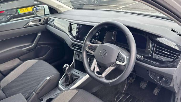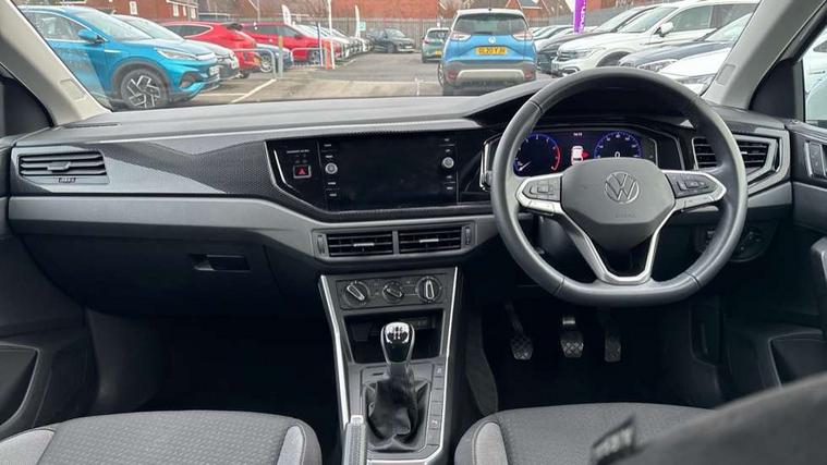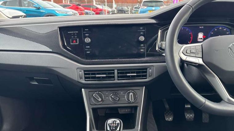 Adaptive cruise control without follow-to-stop and speed limiter, Bluetooth mobile phone interface, Driver alert system, Emergency call service, Front assist system, Power assisted speed sensitive steering, Preparation for We connect and We connect plus, Speedo and rev counter, electronic odometer, trip, service interval display and fuel gauge, Standard rear axle, Travel Assist - Lane keeping system and traffic jam assist, Travel assist including emergency assist, Trip computer, Warning signal and warning light for front and rear seatbelts not fastened, Washer fluid level indicator, Wireless app connect, Front wheel drive, Rear shock absorpion, Start-stop system with battery regeneration (recuperation - energy recovery during braking), DAB Digital radio, Diversity antenna for FM reception, Front and rear 6 speakers, Automatic dimming interior rear view mirror, Body colour bumpers, Body colour door handles, Body colour door mirrors, Electric front windows, Heat insulating darkened glass in side and rear windows, Heat insulating glass windscreen, Power folding adjustable/heated exterior mirrors and front passenger exterior mirror lowering function, Rain sensor, Rear electric windows, Rear fog light, Rear side wing doors, Rear windscreen washer and wiper with interval delay, Third brake light, 12V power socket in centre console, 2 front and 2 rear reading lights, 2 USB-C ports in the front, 2 USB-C charging sockets on the center console in the rear, 3 rear head restraints, 60/40 split folding rear seat and rear seat bench not split, Ceramique headliner, Chrome plated radiator grille inserts, air vent surrounds and light switch surrounds, Door and side trim panel, Driver and front passenger seat height adjustment, Driver/passenger sunvisors with illuminated vanity mirrors, Front centre armrest, Front seat backrest storage pockets, Front standard seats, Handbrake lever handle in leather, Hartley/Thomas cloth upholstery, Isofix child seat preparation easy-fit (for two outer rear seats, and front passenger seat) compatible with I-size, Leather trimmed gear knob, Luggage compartment cover, Luggage compartment floor, Luggage compartment lighting, Multifunction steering wheel, Single front passenger seat, Standard pedal cluster, Light and vision pack - Polo, 3 point height adj front seatbelts + pretensioners, 3x3 point rear seatbelts, ABS, Driver and front passenger airbag with front passenger airbag deactivation, Drivers and front passengers safety optimised head restraints, ESC (Electronic stability control) + EDL (Electronic Differntial lock) and ASR (Traction control), Extended and predictive pedestrian/ cyclist protection, Front curtain and side airbags with center airbag, Front disc brakes, Hill hold control, Manual child lock in rear doors, Rear drum brakes, Single tone horn, Tyre pressure loss indicator, Alarm with interior protection, Anti-theft alarm system with interior monitoring, backup horn, and towing protection, Anti-theft wheel bolts, Electronic engine immobiliser, Lava stone black gloss/matt decorative inserts in dash and front door panels, Low rolling resistance tyres,