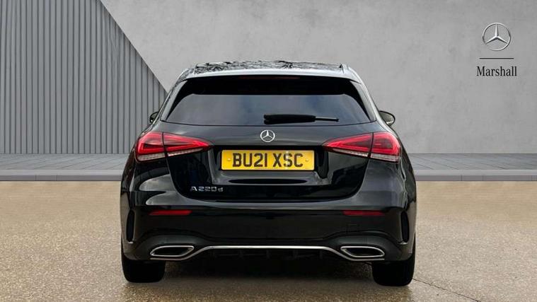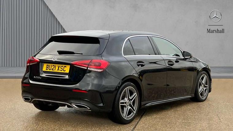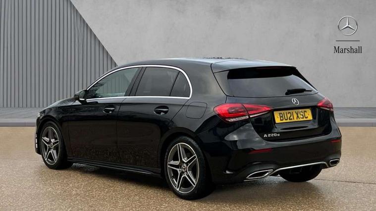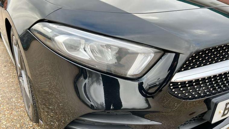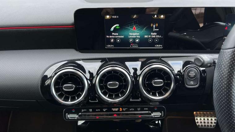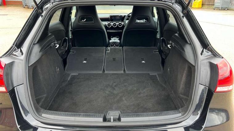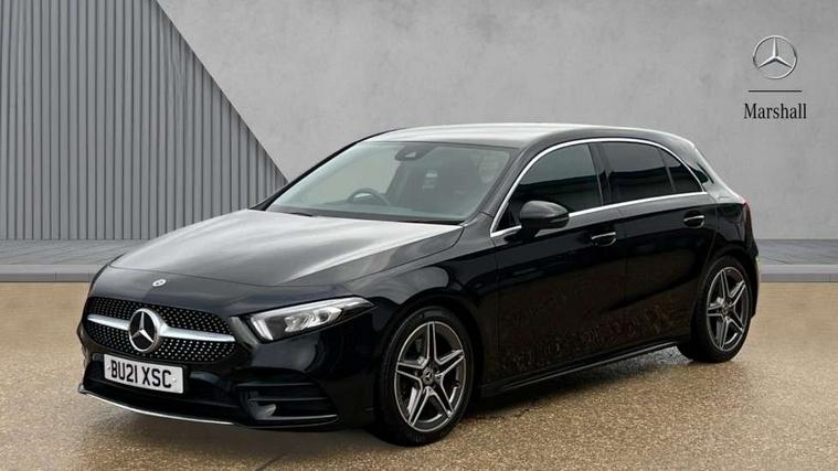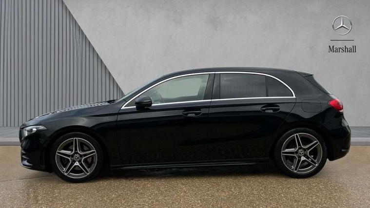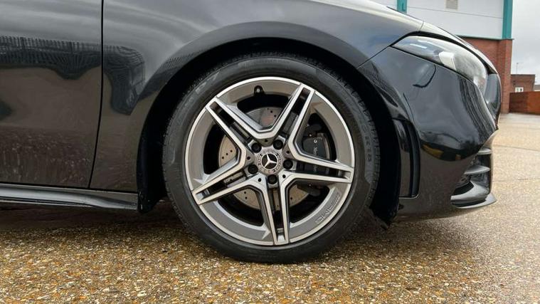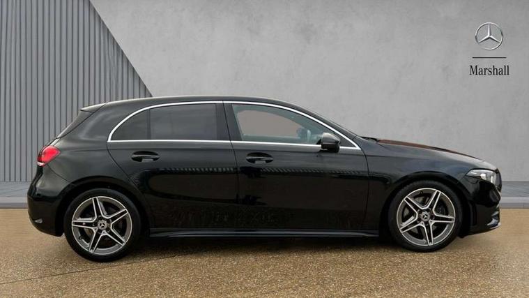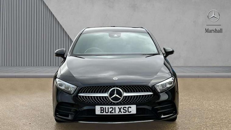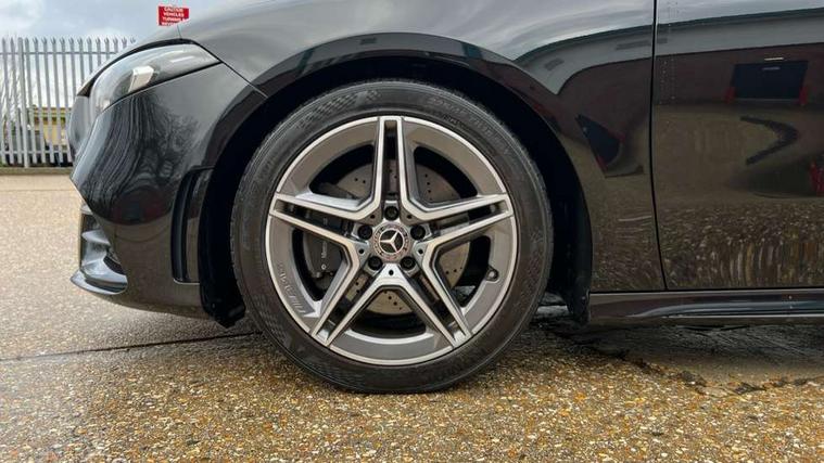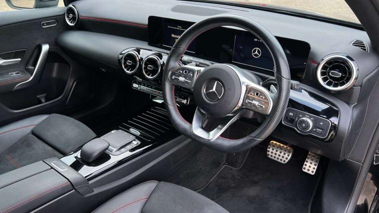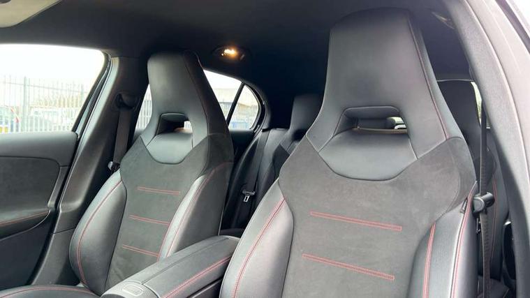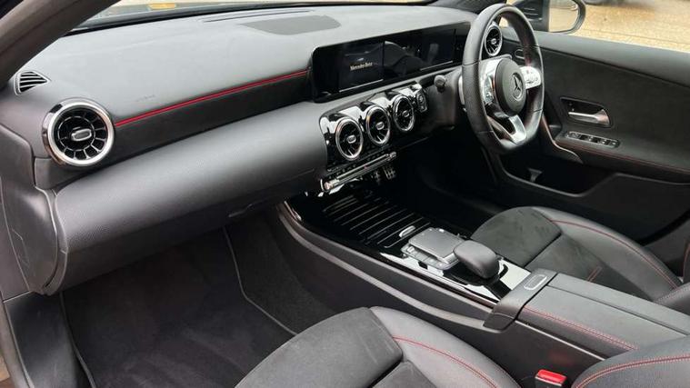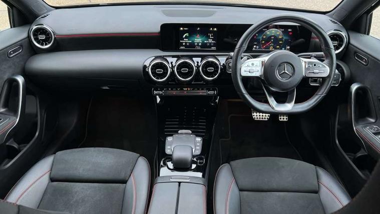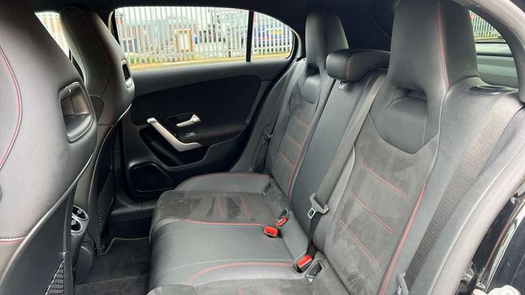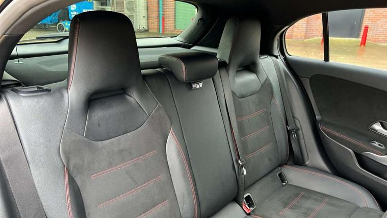 180 degree rear view camera with parking guidelines, 7" colour screen in instrument panel, 7" touchscreen media display, Attention assist, Brake pad wear indicator warning light, Car wash mode, Cruise control + speed limiter, Direct steering, Dual bluetooth interfaces, DYNAMIC SELECT with a choice of driving modes (ECO, Comfort, Sport and Individual), ECO start/stop function, Fluid level warning indicator for fuel, oil, coolant and washer fluid, Hard-disk navigation, Hey Mercedes Voice activation, Lamp failure indicator, Mercedes me connect including emergency call system, accident recovery, breakdown and maintenance management, Mercedes me remote services, Outside temperature gauge, Owners manual in English, Pre-installation for private car sharing, Preinstallation for Mercedes Benz link, Service indicator (ASSYST), Speed sensitive power steering, Trip computer, Lowered comfort suspension, Rear axle multi-link, 2 USB ports (type C) in rear stowage compartment and one in front of center console, 6 speakers, DAB Digital radio, MBUX multimedia system with DAB digital radio and touchpad including satellite navigation, Mercedes-Benz sound system - 100W, 4 Electric Front and Rear windows, Adaptive brake lights, AMG bodystyling - Front apron with splitter in chrome, rear apron with chrome trim and chrome visible trim elements in tailpipe, Black weather strip, Body colour bumpers, Body colour door handles, Body colour side skirt, Body coloured door mirrors, Chrome beltline trim, Diamond radiator grille with chrome pins and silver louvre + chrome insert, Electric adjustable and heated door mirrors with integrated LED side indicators, Exhaust system - Twin visible tailpipes in polished stainless steel, Headlamp assist automatic headlamp activation, Heated glass rear windscreen + timer control, LED high performance headlamps with integrated LED daytime running lights, LED tail lamp, LED third brake light, Privacy glass, Radio aerial, Rain sensing windscreen wipers with two sensitivity settings, Rear fog lights, Rear wiper, Window line trim strip in chrome, 3 Spoke flat bottom leather multi function steering wheel with perforated leather in grip area, 40:20:40 split folding rear seats, Artico man-made leather/Microfibre Dinamica upholstery with red contrast stitching, Auto Mercedes-Benz child seat recognition sensor, Black air vents with surround in silver chrome, Black roof lining, Brushed stainless steel sports pedals with rubber studs, Controller on centre console with chrome surround, Floor mats with stitched edging and AMG lettering, Front centre armrest with storage compartment, Front door sills with Mercedes Benz lettering, Front seat backs luggage nets, Front seat cushion length adjustment, Galvanished gear shift paddles on steering wheel, Heated front seats, Height/reach adjustable steering column, Interior mirror with reading lamps in black and frameless, Manual height adjustable front seats, Rear head restraints, Seat occupancy sensor for front passenger seat, Sports seats with integrated headrests, Stowage compartment in centre console with retractable cover, Sunvisors with illuminated vanity mirrors, Touchpad on center console, Twin front cupholders, Two zone thermotronic luxury automatic climate control, Light and sight pack - A Class, Seat comfort pack - A Class, 3 rear 3 point seatbelts, ABS with Brake Assist, Active bonnet, Active brake assist includes forward collision warning system with autonomous braking, Adaptive brake assist with hold function and hill start assist, Black seatbelts, Childproof locks manually operated for rear doors and electrically operated for rear power windows, Crash responsive emergency lighting, Driver and passenger head and side airbags, Drivers knee airbag, Dual stage driver/passenger airbags, Electronic parking brake, ESP curve dynamic assist, ESP with ASR, Front and rear seatbelt reminder, Front brake callipers with Mercedes Benz lettering, ISOFIX and top tether child seat fixing points in two outer rear seats, Tyre pressure monitoring system, Warning triangle and first aid kit, Window airbags, Alarm system/interior protection/immobiliser, Keyless Go, Remote central locking and crash sensor with emergency opening function, Urban guard vehicle protection system with immobiliser and interior protection, Dinamica microfibre trim in black, 18" AMG 5 twin spoke light alloy wheels in titanium grey with highsheen finish, Summer tyres, Tirefit sealant kit,