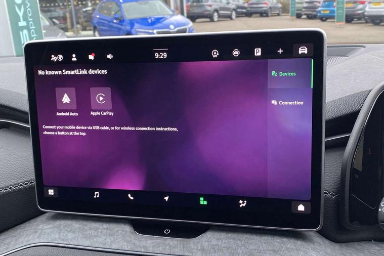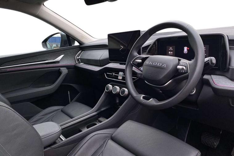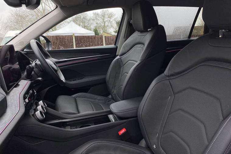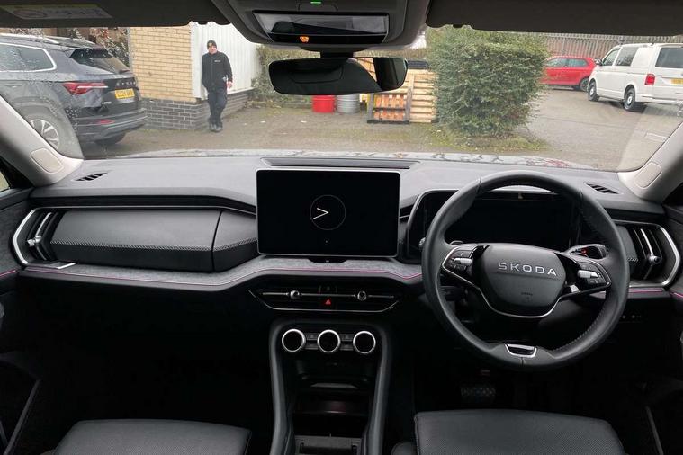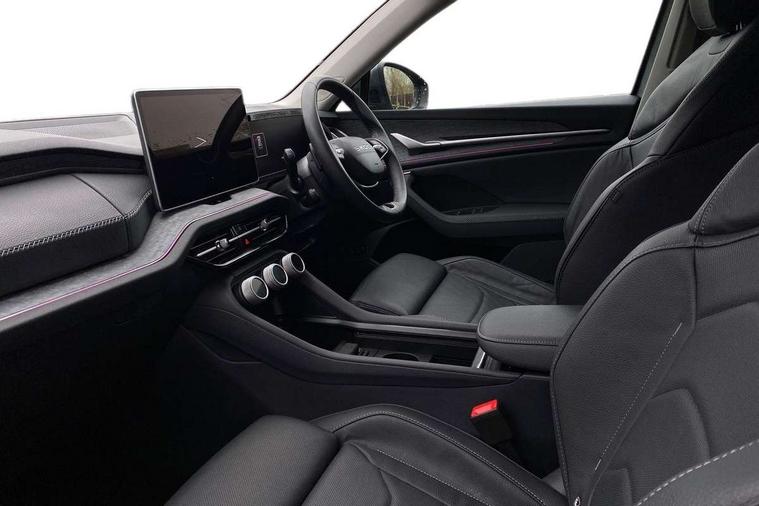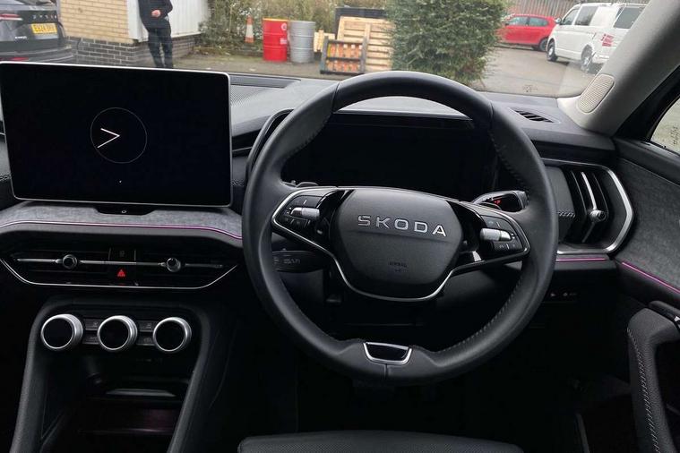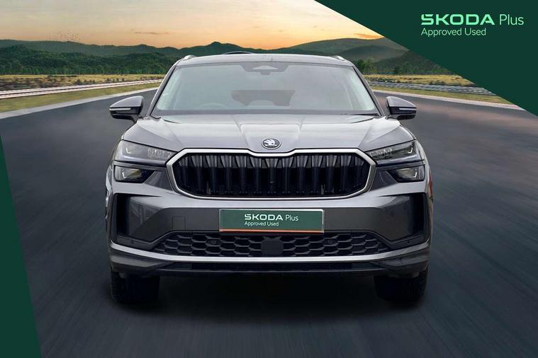 13" satellite navigation touchscreen display, Blind spot detection with door exit warning, Bluetooth system, ChatGPT functionality, Driver alert - Fatigue and drowsiness monitor, Dry display cleaner, Emergency call, Front and rear parking sensors, Front cross traffic assist, Lane assist, PAS, Rear traffic assist, Tailgate unlocking from outside, Traffic sign recognition, USB C Port x 2 in front centre console, Virtual Cockpit - 10.25" digital display, Voice control system, Wireless charging for two smartphones (15W) with cooling function, Wireless SmartLink for Apple CarPlay and Android Auto, Stop/start function, 2x USB-C in the rear, DAB Digital radio, Aero front windscreen wipers with intermittent function, Auto dimming rear view mirror, AWL (all weather lighting) and all weather light with cornering function, Black wheel arch surrounds, Body colour bumpers, Body colour door mirrors and handles, Cornering light and poor weather light, Electric folding /adjustable/separted heated/folding door mirrors, auto dimming with boarding sports and memory function, Electric front and rear windows, Exterior black decorative trims, Heat insulating glass in windshield, Heated rear window, Ice scraper in fuel tank cap, Invisible tailpipe, LED daytime running lights, LED third brake light in rear spoiler, Light assistant with automatic headlight control and coming home feature, Logo projection in door mirrors, Privacy glass, Rear roof spoiler, Rear side wing doors, Rear window wiper, Red decorative strip between rear LED lights, Safety reflectors on front and rear doors, Unique dark chrome design logo on alloy wheels, Window control switches with black trim, Windscreen wipers with rain sensor, Without engine designation, 1.5l bottle holder points in all door, 1x centre rear reading light, 2 seat bench in 3rd row, 3 configurable smart dials with 32mm coloured display, 3 seat bench in 2nd row, 4 foldable roof handles with rear coat hooks, Ambient interior lighting - Dashboard, front-door stowage compartments, front and rear door panels and footwell lighting, Automatic gear selector on steering column, Chrome interior door handles, Driver/front passenger reading lights, Fabric headlining, Fixed bench 40:60:40 split folding backrests, Front and rear floor mats, Front centre armrest with jumbo box storage compartment, cup holder and 12V socket, Height adjustable front headrests, Isofix child seat fittings in outer middle row rear seats and front passenger with top tether, Manually adjustable steering column, Pollen filter, Rear centre armrest with cupholders, Rear seat boot backrest release, Single front passenger seat, Skoda lettering on steering wheel, Storage pocket including mobile phone pockets on the backs of the front seats, Sunvisors with illuminated vanity mirrors, Three rear height adjustable headrests, Ticket holder on A Pillar, Tri zone climate control, Umbrella in door panel x1 made from sustainable materials, Upper and lower glovebox with card holder and coin compartment, USB C port by rear view mirror for charging only (15W), Exterior styling pack - Kodiaq, Auto door release and activation of warning lights in the event of an accident, Driver and front passenger airbag with knee airbag and front passenger airbag deactivation, Electric child locks, Electronic parking brake, ESC (incl. ABS+EMD+MSR+ASR+EDL+HBA+DSR+RBS+ESBS+MCB+TSA+XDS), Front assist with braking reaction to vehicles, pedestrians and cyclists, Front disc brakes, Fuel cut off safety device, Height adjustable front 3 point seatbelts + pretensioners, Hill hold assist, Junction assist with automatic emergency braking, Rear disc brakes, Safety vest holder in door, Seat belt reminder for all seats, Three point rear seat belts, Two tone horn, Tyre pressure monitor, Anti-theft wheel bolts, Immobiliser, Remote central locking with 2 keys,