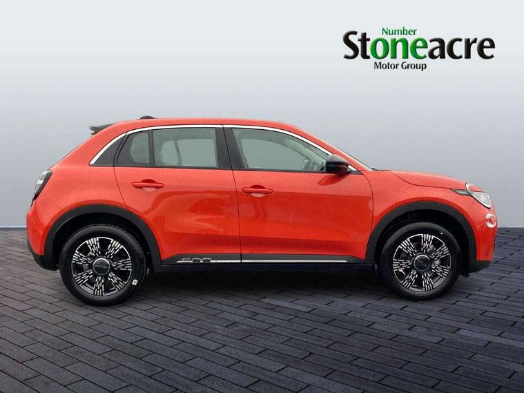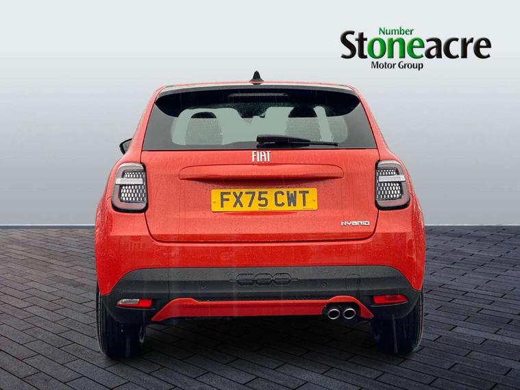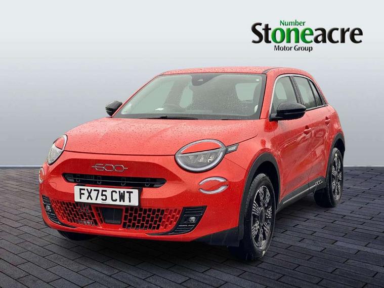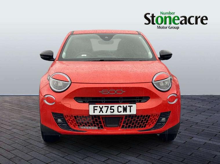 7" TFT digital cluster, Bluetooth connectivity, BSRF connectivity box, Connected services, Cruise control, Drowsy driver detection, Emergency E-call assist, Engine emission level default, GSR II step 1, Intelligent speed assist, Lane keeping assistant (LKA), Odometer, Power assist steering, Rain and dusk sensors, Rear parking sensors, Traffic sign recognition, Wireless apple car play/android Auto, Without drive mode selector, L2-AGM 12V battery, 1st Row USB type-A and USB type-C, 4 speaker audio system, Radio, Uconnect infotainment 10.25" touchscreen with DAB, All power windows express Up/Down, Auto dimming frameless rear view mirror, Automatic headlights, Body coloured door handles, Chrome day light openings, Electric adjustable door mirrors, Exterior chrome accents, Front and rear Chromed 600 logo, Gloss black finish B pillar, Gloss black shark fin antenna, Glossy black door mirrors, Heated windscreen wiper blade area, LED 3rd brake light, LED daytime running lights, LED Fog lamps with cornering function, LED front signature lighting, LED front turn indicators and position lights, LED rear lights, LED rear signature lighting, LED reflector headlamps, Matt black side skirts with 600 chromed logo, Rear bumper embossed 600 logo, Rear roof spoiler, Rear side wing doors, Rear wiper, 2 Spoke synthetic leather steering wheel with audio control, 3 rear headrests, 3 seat bench in 2nd row, 4 way manually adjustable passenger seat, 6 way manually adjustable drivers seat, Auxilliary 12V power socket, Body colour dashboard fascia, Chrome interior door handles, Dark metachrome dashboard ring, English handbook, Front centre armrest, Front headrests, Front passenger grab handle, Front seatback pockets, ISOFIX attachment on front passenger and rear passenger seats, Manual climate control, Metachrome central compartment bezel, Monogram fabric upholstery, Paddle shifts, Partial body cover for shipment, Predisposal for accessory upgrade to default tunnel pad cover (dedicated prnd bezel), Rear seat 40/60 split, Single front passenger seat, Smart 15L storage central tunnel with tunnel pad cover, Sunvisor label ciao Fiat, Sunvisors with vanity mirrors, 3x3 point rear seatbelts, 6 airbags, ABS, Autonomous Emergency Brake (AEB) & Vulnerable Road User (VRU) Protection, Child locks on rear doors, Electronic parking brake with auto hold, ESC (Electronic Stability Control), Front passenger airbag deactivation, Seatbelt reminder and pretensioners for all seats, Anti-theft volumetric alarm, Anti-theft wheel bolts, Keyless Go, 17" Diamond cut alloy wheels, Fix and go puncture repair kit,