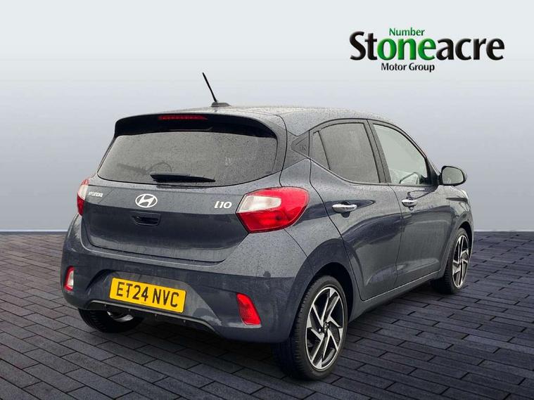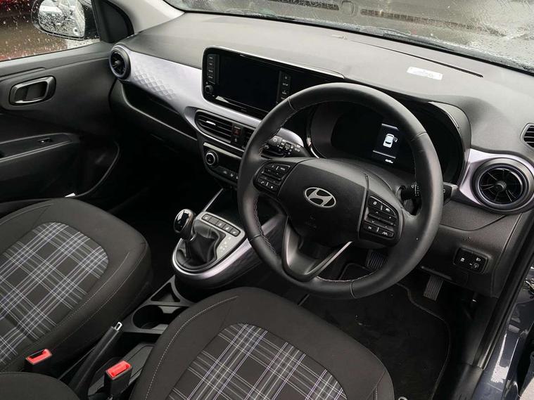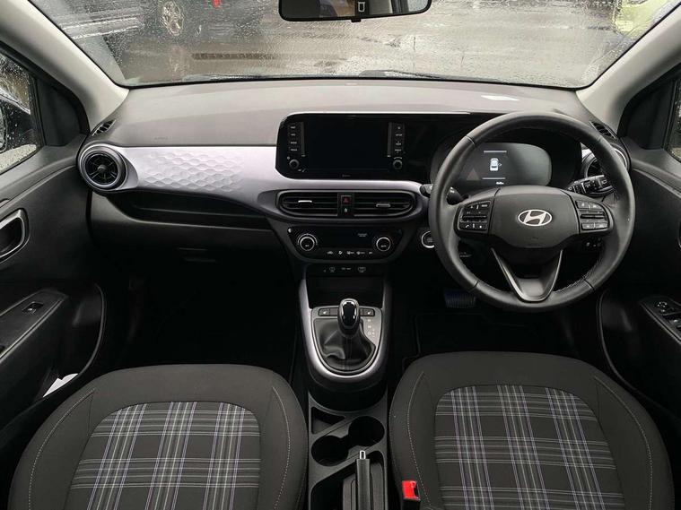 Apple car play/Android Auto, Bluelink mobile remote connectivity, Bluetooth connectivity with voice recognition, Cruise control, Driver attention alert system, eCall emergency call system, Forward Collision-Avoidance Assist (FCA) - Pedestrian/Cyclist, Front USB-C charging and USB-A data, Full-width 4.2" LCD instrument cluster, Intelligent speed limit assist, Lane departure warning system with lane keep assist - LKAS, Lane follow assist, PAS, Rear parking sensors, Rear view camera with guidelines, Roadside assistance, Start/Stop function, Tailgate, Trip computer, Wireless charging pad, 2 front/2 rear speakers, Rear USB-C device charger, Steering wheel audio, phone and cruise controls, 1 speed non intermittent rear windscreen wiper, Black finish on B pillars, Body colour door handles, Body coloured bumpers, Body coloured door mirrors, Electric folding door mirrors, Electric front windows, Electric rear windows, Electrically adjustable and heated door mirrors, Flat metal emblem, Front fog lights, Front grille in glossy black, Front intermittent wipers, Halogen bi-function headlights, Headlights inner with Black Blade design, Heated rear window, High beam assist, Indicator light on door mirrors, LED DRLs diamond mesh design, Privacy glass - Rear windows and tailgate, Rear roof spoiler with integrated LED brake light, Rear side wing doors, 12v power outlet - front, 3 seat bench in 2nd row, 60/40 split folding flat to floor rear seats, Air conditioning, Auto light control, Bottle holders in front/rear doors + front centre console, Cabin and luggage compartment interior lighting, Cloth upholstery, Driver + passenger vanity mirrors, Driver's seat height adjustment, Driver/passenger sunvisors with ticket holders, Floor mats, Front door pockets, Front Head Restraints - Vertical and Horizontal Adjustment, Front LED blue mood lighting, Glove compartment, Heated front seats, Heated steering wheel, Height adjustable steering column, Isofix child seat preparation, Leather multifunction steering wheel, Rear door pockets, Single front passenger seat, Vertical adjustment rear head restraints, 3x3 point rear seatbelts, Airbags - front, front side and curtain airbags, Anti-lock brake system (ABS), Autonomous emergency braking (AEB) with forward collision warning system, Brake assist function, Childproof rear door locks, Electronic stability control, Front and rear seatbelt reminder, Front seatbelt pretensioners, Hill start assist control (HAC), Passenger airbag deactivate switch, Traction control, Tyre pressure monitoring system, Immobiliser, Perimeter alarm, Rear occupant alert, Remote central locking, Second remote key, Smart key with motion sensor, Speed sensitive auto door locking, 16" alloy wheels, Tyre repair kit,