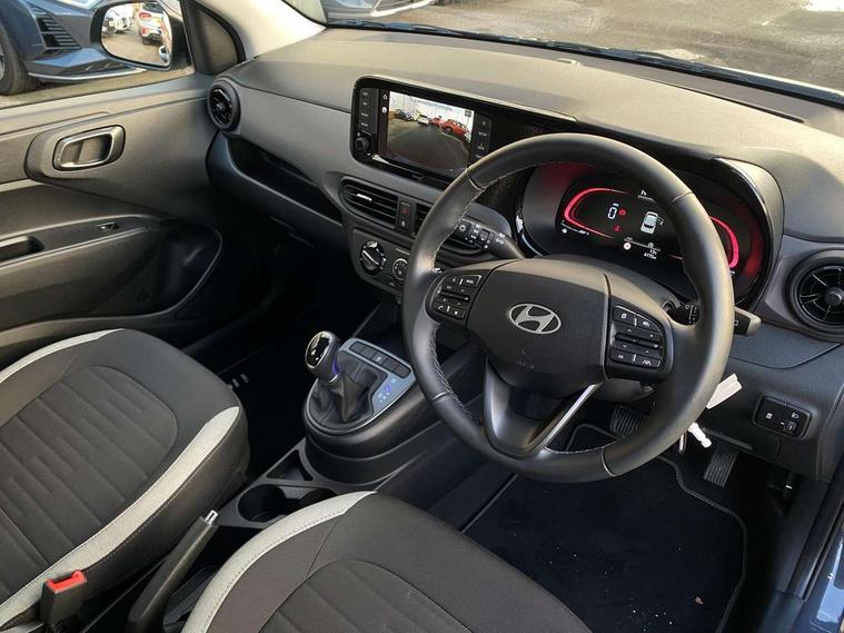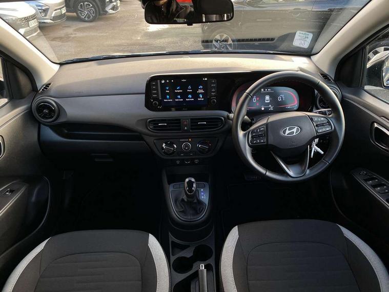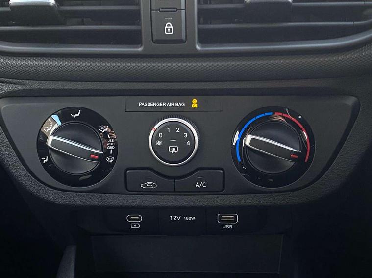 Apple car play/Android Auto, Bluelink mobile remote connectivity, Bluetooth connectivity with voice recognition, Cruise control, Driver attention alert system, eCall emergency call system, Forward Collision-Avoidance Assist (FCA) - Pedestrian/Cyclist, Front USB-C charging and USB-A data, Full-width 4.2" LCD instrument cluster, Intelligent speed limit assist, Lane departure warning system with lane keep assist - LKAS, Lane follow assist, PAS, Rear parking sensors, Rear view camera with guidelines, Roadside assistance, Start/Stop function, Tailgate, Trip computer, 2 front/2 rear speakers, Rear USB-C device charger, Steering wheel audio, phone and cruise controls, 1 speed non intermittent rear windscreen wiper, Black finish on B pillars, Body colour door handles, Body coloured bumpers, Body coloured door mirrors, Electric front windows, Electric rear windows, Electrically adjustable and heated door mirrors, Flat metal emblem, Front grille in matte black, Front intermittent wipers, Halogen daytime running lights, Halogen headlights, Headlights inner with Black Blade design, Heated rear window, High beam assist, Indicator light on door mirrors, Rear roof spoiler with integrated LED brake light, Rear side wing doors, 12v power outlet - front, 3 seat bench in 2nd row, 60/40 split folding flat to floor rear seats, Air conditioning, Auto light control, Bottle holders in front/rear doors + front centre console, Cabin and luggage compartment interior lighting, Cloth upholstery, Driver + passenger vanity mirrors, Driver's seat height adjustment, Driver/passenger sunvisors with ticket holders, Floor mats, Front door pockets, Front Head Restraints - Vertical and Horizontal Adjustment, Glove compartment, Height adjustable steering column, Isofix child seat preparation, Leather multifunction steering wheel, Rear door pockets, Single front passenger seat, Vertical adjustment rear head restraints, 3x3 point rear seatbelts, Airbags - front, front side and curtain airbags, Anti-lock brake system (ABS), Autonomous emergency braking (AEB) with forward collision warning system, Brake assist function, Childproof rear door locks, Electronic stability control, Front and rear seatbelt reminder, Front seatbelt pretensioners, Hill start assist control (HAC), Passenger airbag deactivate switch, Traction control, Tyre pressure monitoring system, Immobiliser, Perimeter alarm, Rear occupant alert, Remote central locking, Second remote key, Speed sensitive auto door locking, 15" Alloy wheels, Tyre repair kit,