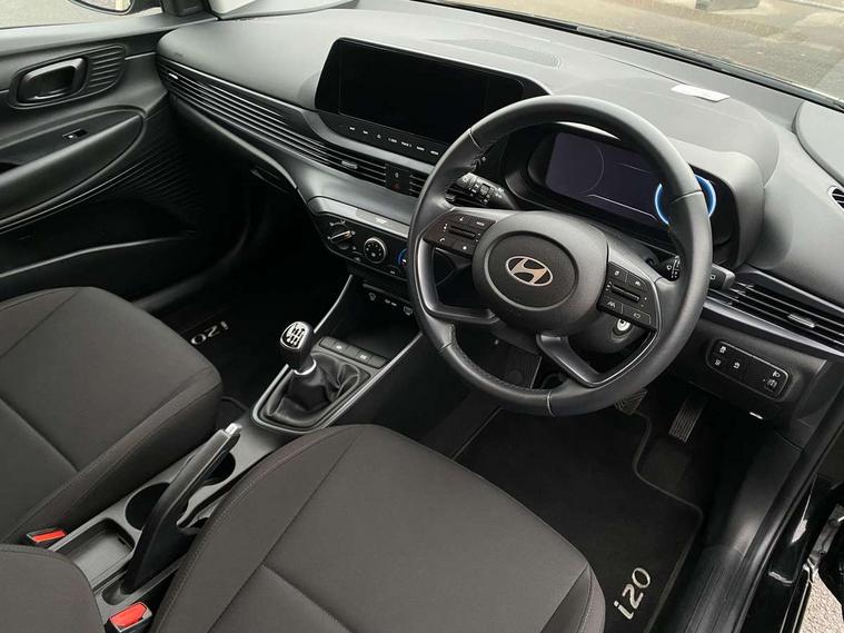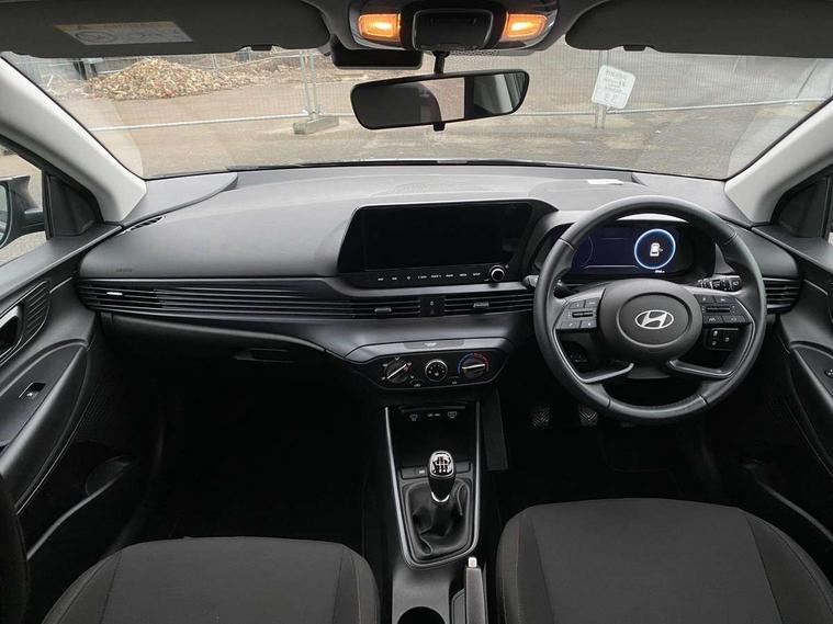 10.25" digital supervision cluster, 2nd Gen eCall, 8" Touchscreen with DAB, Apple car play/Android Auto, Cruise control + speed limiter, Forward collision assist with car, pedestrian and cycle detection, Intelligent speed limit warning, Lane follow assist, Lane keep assist, PAS, Rear parking sensor, Rear view camera with dynamic guidelines, USB C port front, 3rd brake light, Dusk sensor, Electric adjustable heated door mirrors, Front grille mesh pattern design, High beam assist, LED daytime running lights, LED Headlights, LED taillights, Rain sensor, Rear side wing doors, Rear wiper, Repositioned flat metal hyundai emblem, 3 seat bench in 2nd row, Adjustable head restraints, Air conditioning, Cloth upholstery, Floor mats, Leather steering wheel, Single front passenger seat, 3x3 point rear seatbelts, ABS with front and rear diagonally split, Autonomous emergency braking, Child locks on rear doors, Front ventilated disc brakes, Rear solid disc brakes, Tyre pressure monitoring system, 16" alloy wheels, Tyre repair kit,