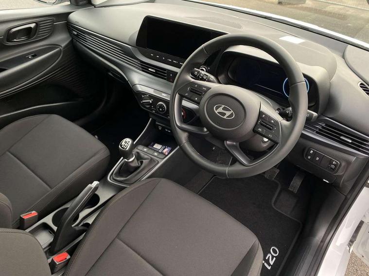 10.25" touchscreen + navigation, 2nd Gen eCall, 8" Touchscreen DAB Radio with android auto and apple carplay, Cruise control + speed limiter, Forward collision assist with car, pedestrian and cycle detection, Intelligent speed assist, Intelligent speed limit warning, Lane follow assist, Lane keep assist, PAS, Rear parking sensor, Rear view camera with dynamic guidelines, USB C port front, Automatic headlights with dusk sensor, Electric adjustable heated door mirrors, Front grille mesh pattern design, High beam assist, LED 3rd brake light, LED daytime running lights, LED Headlights, LED taillights, Rain sensor, Rear side wing doors, Rear wiper, Repositioned flat metal hyundai emblem, Trailer wiring, 3 seat bench in 2nd row, Adjustable head restraints, Air conditioning, Cloth upholstery, Floor mats, Leather steering wheel, Single front passenger seat, 3x3 point rear seatbelts, ABS with front and rear diagonally split, Autonomous emergency braking, Child locks on rear doors, Front ventilated disc brakes, Rear solid disc brakes, Tyre pressure monitoring system, 16" alloy wheels, Tyre repair kit,