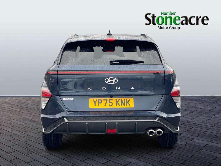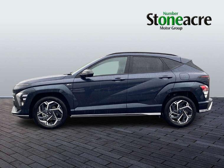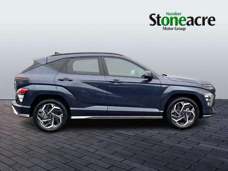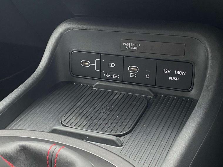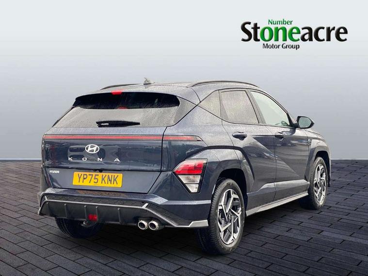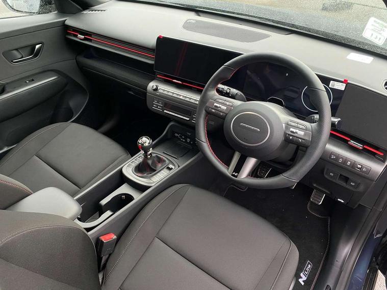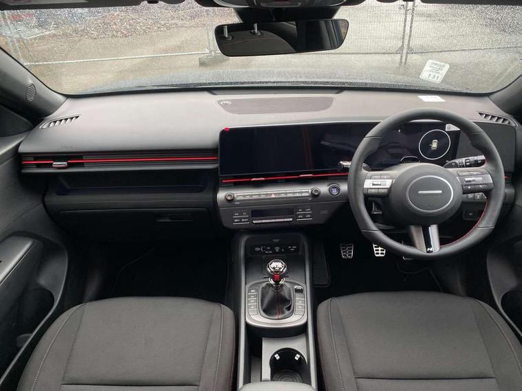 12.3" touchscreen centre console display satellite navigation with bluelink, live services and mapcare, Bluetooth connectivity with voice recognition, Cruise control, Driver status monitor (DSM), Driver supervision instrument cluster with 12.3" LCD display, eCall emergency call system, Feature on demand - Enabled, Forward collision avoidance assist (FCA 1.5) - Car, pededstrian, cycle and junction turning, Front parking sensor, Height adjustable power tailgate, Intelligent speed limit assist, Lane follow assist, Lane keep assist, Leading vehicle departure alert (LVDA), Parking system with rear camera and guidance system, PAS, Rear parking sensor, Roadside assistance, Wireless phone charging pad, Wireless Smartphone Integration includes Apple CarPlay and Android auto, 2 front USB C and 2 rear USB C charging points, DAB Digital radio, Speakers - Front, rear and tweeters, Steering wheel audio, phone and cruise controls, Auto dimming rear view mirror, Automatic headlights with dusk sensor, Automatic windscreen wipers with rain sensor, Body colour exterior door handles, Body coloured wheel arch inserts, Door mirror LED indicator lights, Electric front windows with anti-trap mechanism and one touch control, Electric rear windows, Electrically adjustable and heated door mirrors, Full LED MFR headlights, Gloss black door mirrors, LED daytime running lights, LED upper and lower rear lights, Power folding door mirrors, Privacy glass - Rear windows and tailgate, Rear roof spoiler with integrated LED brake light, Rear side wing doors, Rear wiper, Roof rails, Solar glass with front door glass and windscreen, Tinted glass in front and rear doors, Windscreen auto defog function, 12V power outlet in front console, 2 zone climate control, 3 seat bench in 2nd row, 40/20/40 split folding rear seat, Adjustable head restraints, Aluminium pedals, Ambient lighting, Driver and passenger front seat pockets, Driver's seat lumbar support, Driver/passenger manual seat height adjustment, Driver/passenger sunvisors and illuminated vanity mirrors, Floor mats, Heated front seats, Heated rear seats, Heated steering wheel, Height/reach adjustable steering column, Leather wrapped steering wheel and gear knob, LED centre interior light, LED front interior light, Luggage compartment LED lighting, Luggage shelf, Metal paint effect interior door handles, N Line cloth upholstery, Rear centre armrest with cupholders, Single front passenger seat, Vertical adjustment rear head restraints, N Line exterior design pack - Kona, Trailer wiring package - Kona, Airbag - front, front side, curtain and centre front airbag, Anti-lock brake system (ABS), Childproof rear door locks, Downhill brake control, Electric parking brake, Electronic stability control, Fixed 3 point for second row centre passenger seatbelt, Hill start assist control (HAC), Rear seat alert, Tyre pressure monitoring system, Alarm/immobiliser, Rear occupant alert, Remote central locking, Smart key with keyless entry and start/stop button, Five year annual vehicle health checks, Temporary mobility kit (TMK),