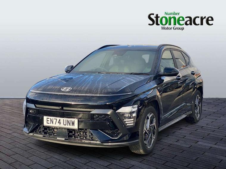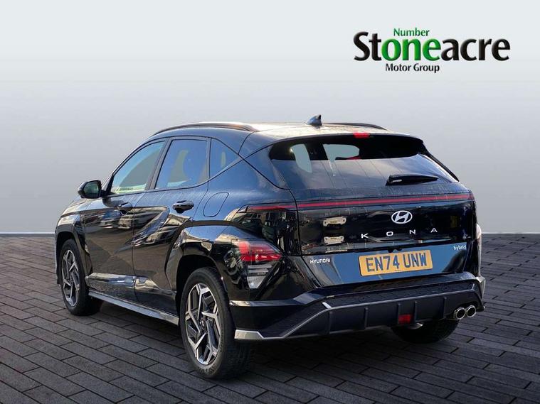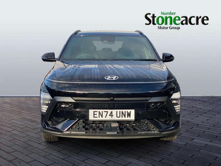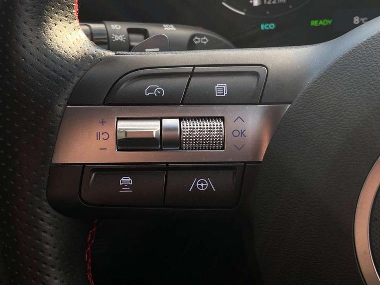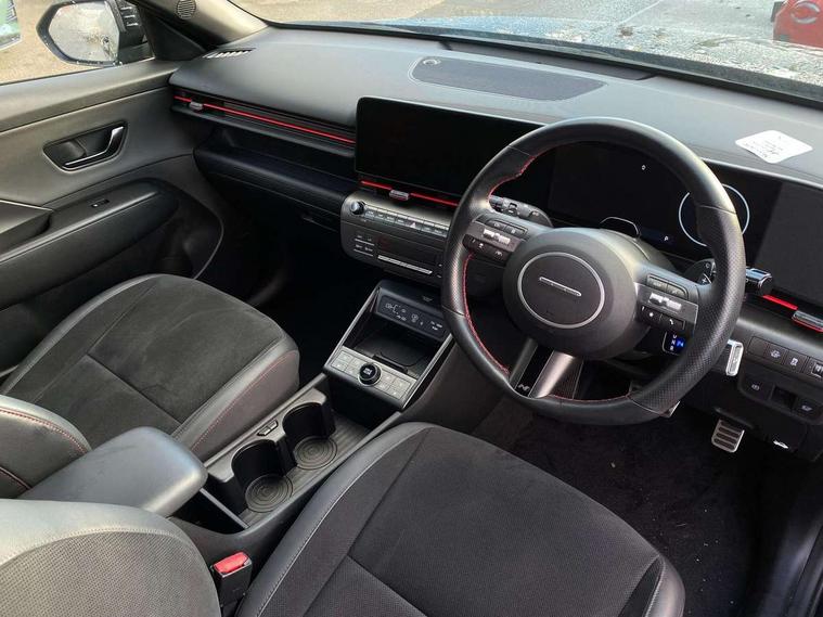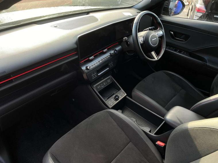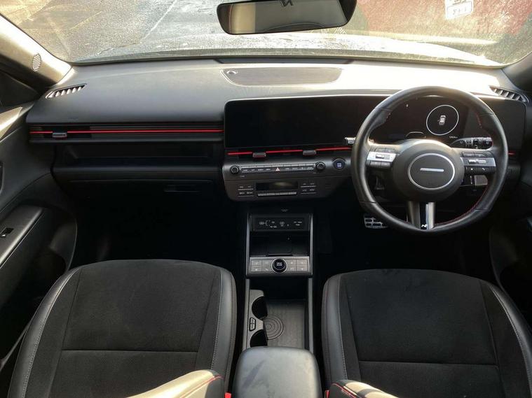 12.25" digital instrument cluster, 12.3" touchscreen centre console display satellite navigation with bluelink, live services and mapcare, Blind spot collision avoidance assist, Blind spot view monitor, Bluetooth connectivity with voice recognition, Driver status monitor (DSM), Driver supervision instrument cluster with 12.3" LCD display, eCall emergency call system, Feature on demand - Enabled, Forward collision avoidance assist (FCA 1.5) - Car, pededstrian, cycle and junction turning, Front parking sensor, HDA - Highway Drive Assist Level 1.5, Height adjustable power tailgate, Intelligent speed limit assist, Lane follow assist, Lane keep assist, Leading vehicle departure alert (LVDA), Parking Collision Avoidance Assist-Reverse (PCA-R), Parking distance warning - side, Parking system with rear camera and guidance system, PAS, Rear cross traffic collision avoidance (RCCA), Rear parking sensor, Rear view camera with dynamic guidelines, Roadside assistance, Safe exit warning (SEW), Smart cruise control with stop and go functionality, Surround view monitor, Wireless phone charging pad, Wireless Smartphone Integration includes Apple CarPlay and Android auto, 2 front USB C and 2 rear USB C charging points, Bose Premium Audio system with 7 premium speakers + subwoofer, DAB Digital radio, Steering wheel audio, phone and cruise controls, Auto dimming rear view mirror, Automatic headlights with dusk sensor, Automatic windscreen wipers with rain sensor, Body colour exterior door handles, Body coloured wheel arch inserts, Door mirror LED indicator lights, Electric front windows with anti-trap mechanism and one touch control, Electric rear windows, Electrically adjustable and heated door mirrors, Gloss black door mirrors, Horizon centre LED DRL, LED projector headlights, LED taillights, LED upper and lower rear lights, Power folding door mirrors, Privacy glass - Rear windows and tailgate, Rain sensor, Rear roof spoiler with integrated LED brake light, Rear side wing doors, Rear wiper, Roof rails, Solar glass with front door glass and windscreen, Tinted glass in front and rear doors, Windscreen auto defog function, 12V power outlet in front console, 2 zone climate control, 3 seat bench in 2nd row, 40/20/40 split folding rear seat, Adjustable head restraints, Aluminium pedals, Ambient lighting, Driver and passenger front seat pockets, Driver's seat electric adjustments, Driver's seat lumbar support, Driver/passenger sunvisors and illuminated vanity mirrors, Floor mats, Front passenger's seat electric adjustments, Heated front seats, Heated rear seats, Heated steering wheel, Height/reach adjustable steering column, Leather steering wheel, LED centre interior light, LED front interior light, Luggage compartment LED lighting, Luggage net, Luggage shelf, Metal paint effect interior door handles, N Line Alcantara/leather upholstery, Rear centre armrest with cupholders, Shift by wire SBW, Single front passenger seat, Ventilated front seats, Vertical adjustment rear head restraints, N Line exterior design pack - Kona, N Line interior design package - Kona N Line S, Trailer wiring package - Kona, Airbag - front, front side, curtain and centre front airbag, Anti-lock brake system (ABS), Childproof rear door locks, Downhill brake control, Electric parking brake, Electronic stability control, Fixed 3 point for second row centre passenger seatbelt, Hill start assist control (HAC), Rear seat alert, Tyre pressure monitoring system, Alarm/immobiliser, Rear occupant alert, Remote central locking, Smart key with keyless entry and start/stop button, Five year annual vehicle health checks, Temporary mobility kit (TMK),